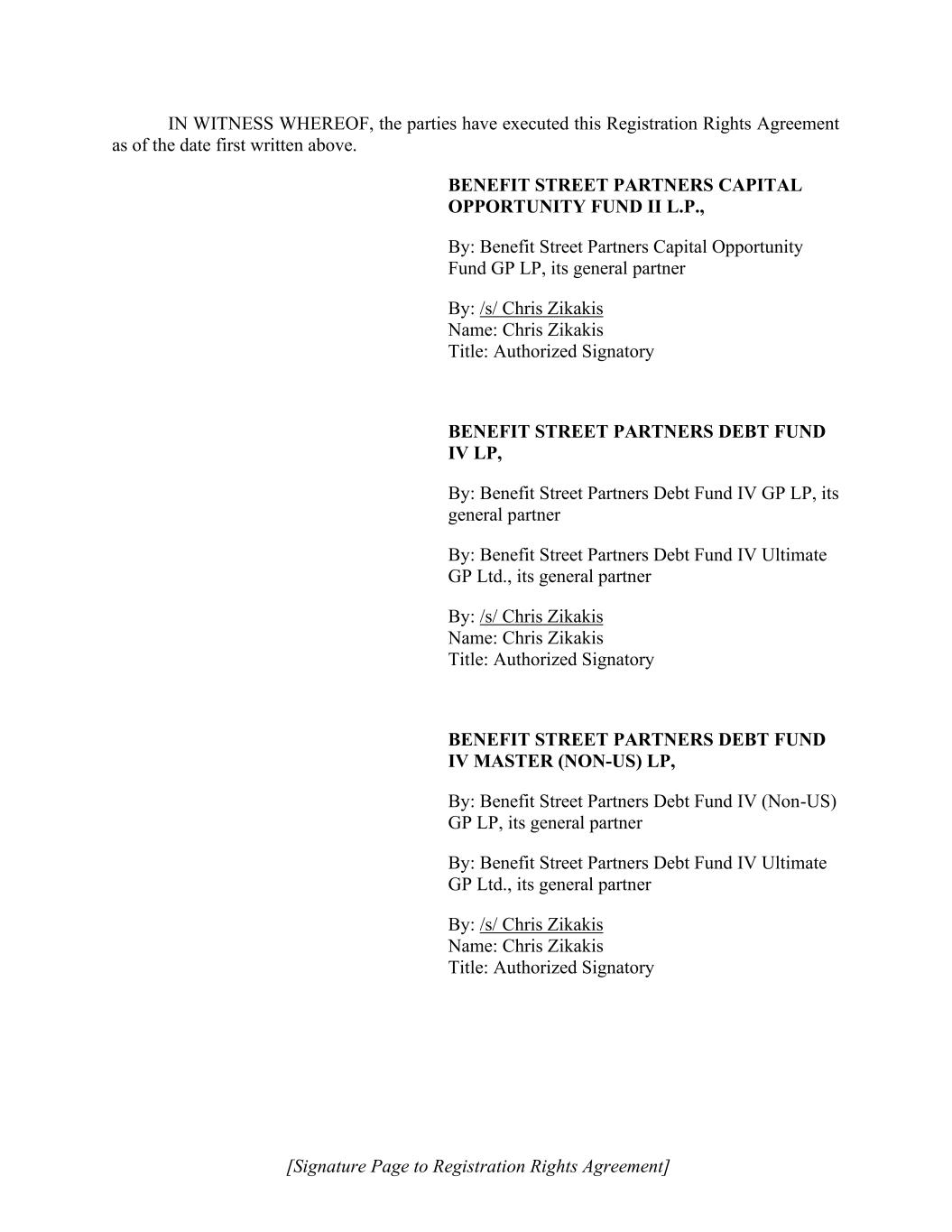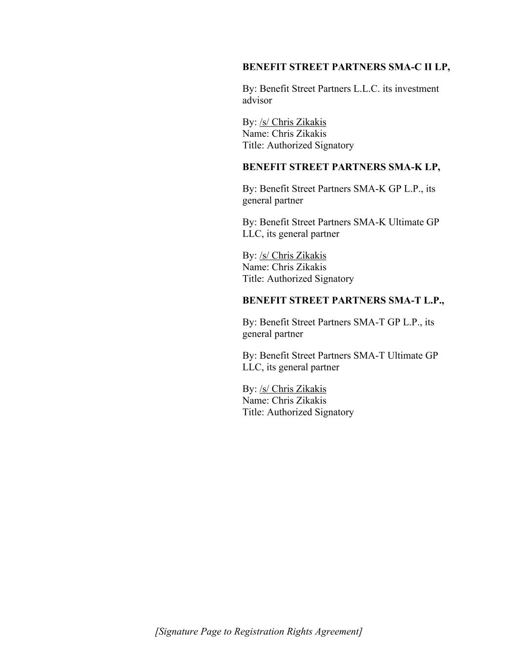 [Signature Page to Registration Rights Agreement] BENEFIT STREET PARTNERS SMA-C II LP, By: Benefit Street Partners L.L.C. its investment advisor By: /s/ Chris Zikakis Name: Chris Zikakis Title: Authorized Signatory BENEFIT STREET PARTNERS SMA-K LP, By: Benefit Street Partners SMA-K GP L.P., its general partner By: Benefit Street Partners SMA-K Ultimate GP LLC, its general partner By: /s/ Chris Zikakis Name: Chris Zikakis Title: Authorized Signatory BENEFIT STREET PARTNERS SMA-T L.P., By: Benefit Street Partners SMA-T GP L.P., its general partner By: Benefit Street Partners SMA-T Ultimate GP LLC, its general partner By: /s/ Chris Zikakis Name: Chris Zikakis Title: Authorized Signatory