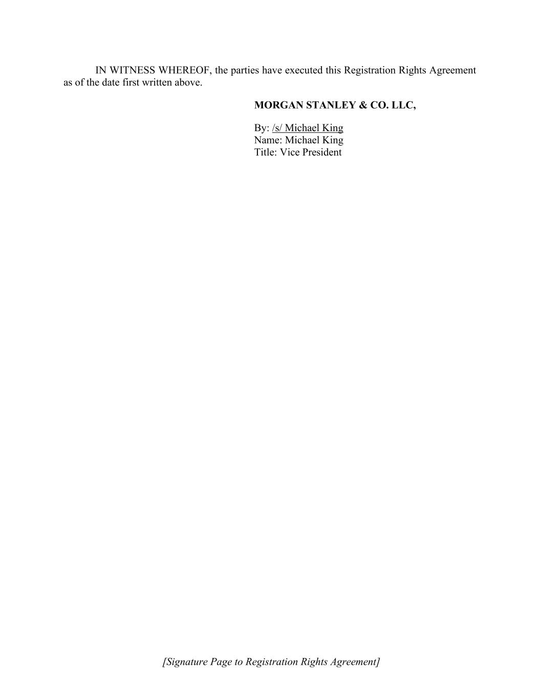 [Signature Page to Registration Rights Agreement] IN WITNESS WHEREOF, the parties have executed this Registration Rights Agreement as of the date first written above. MORGAN STANLEY & CO. LLC, By: /s/ Michael King Name: Michael King Title: Vice President