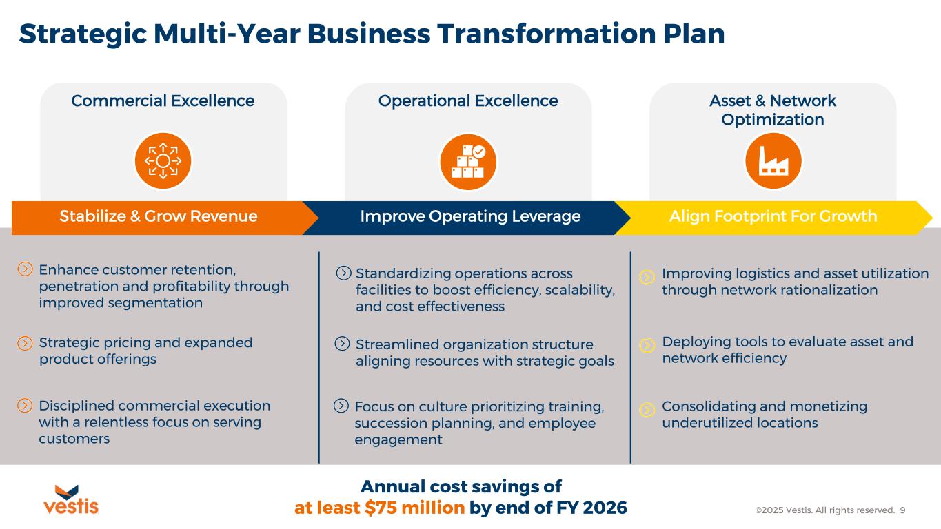 These priorities establish a clear framework for near-term performance improvement and long-term value creation through disciplined execution, continuous improvement, and a relentless focus on serving customers. We expect the Plan to be substantially complete by the end of 2027 and we estimate that costs related to the execution of the Plan will be in the range of approximately $25 million to $30 million.