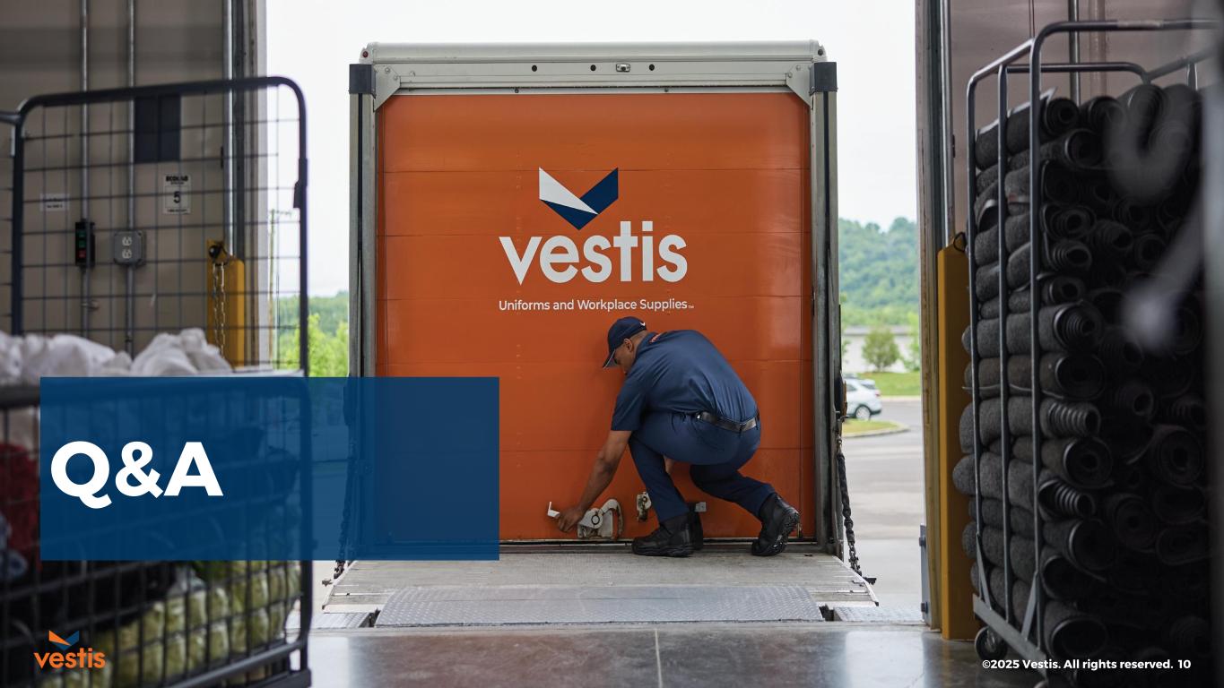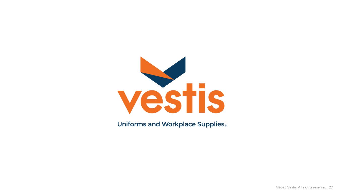 Vestis is a leader in the B2B uniform and workplace supplies category. Vestis provides uniform services and workplace supplies to a broad range of North American customers from Fortune 500 companies to locally owned small businesses across a broad set of end sectors. The Company’s comprehensive service offering primarily includes a full-service uniform rental program, floor mats, towels, linens, managed restroom services, first aid supplies, and cleanroom and other specialty garment processing.