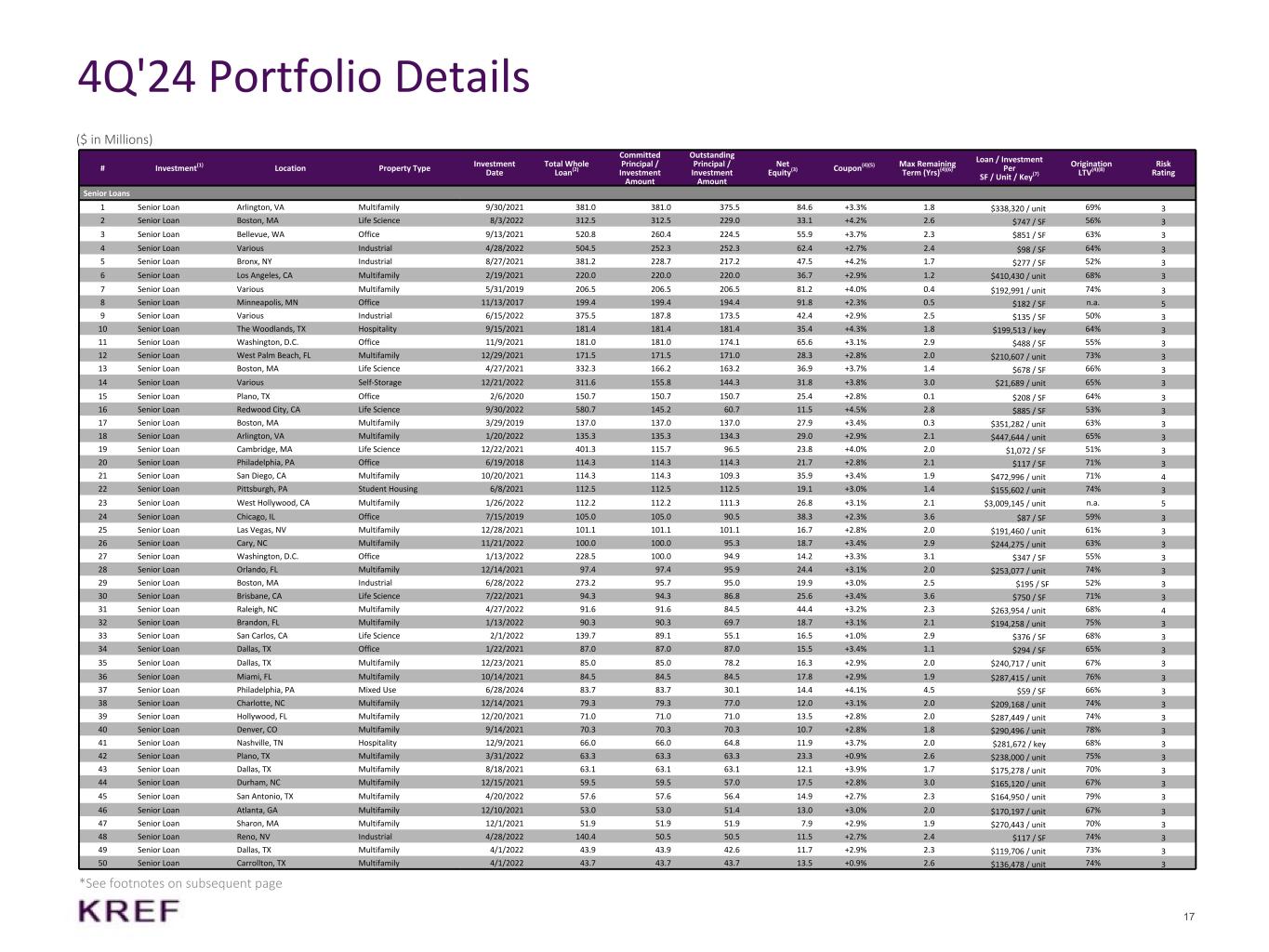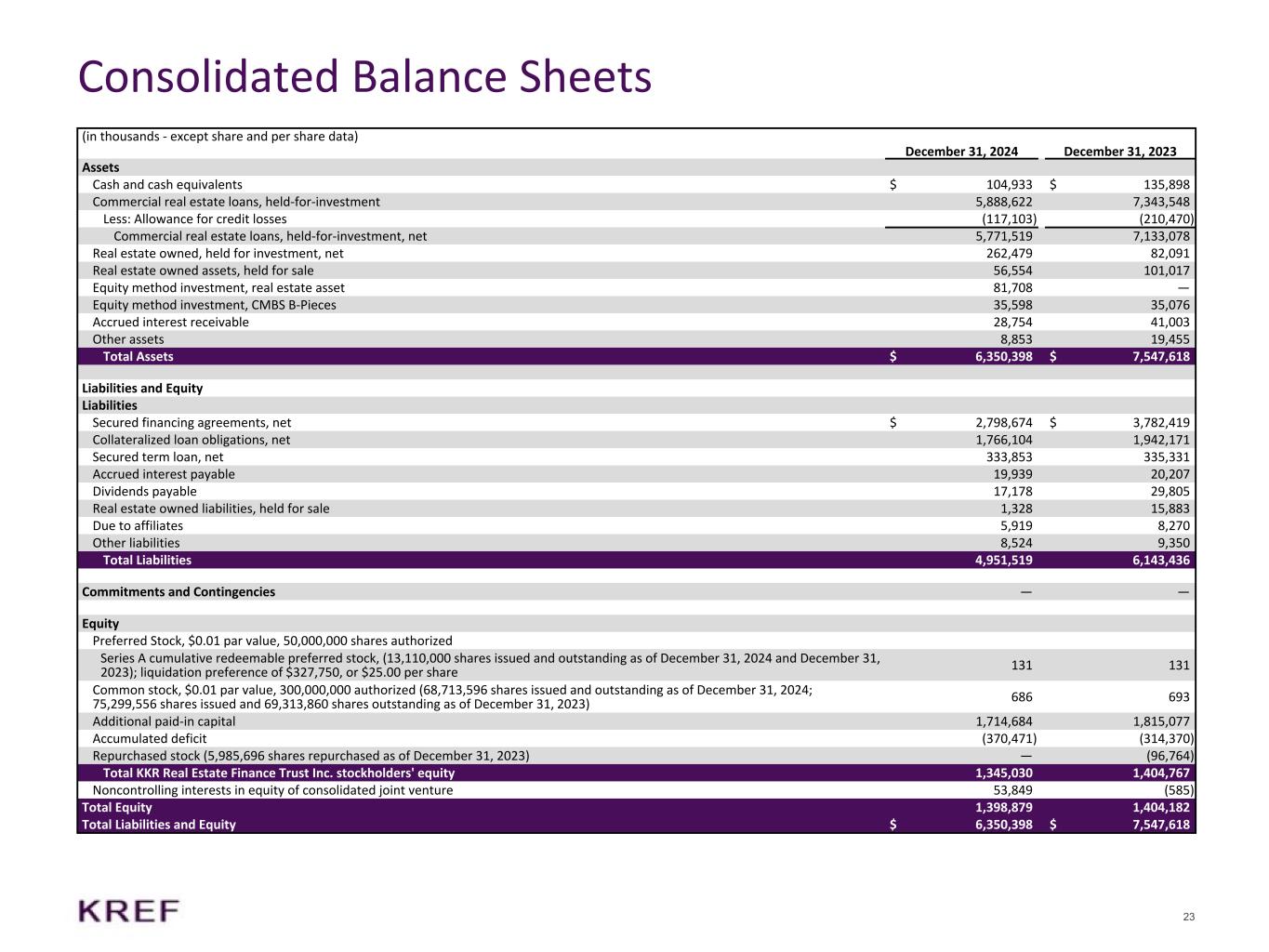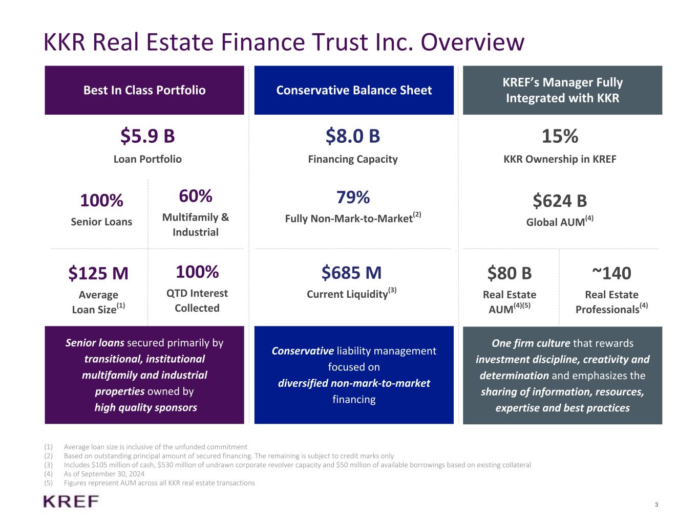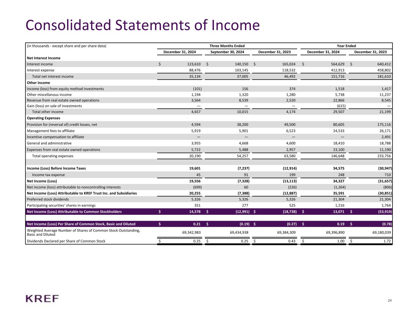 ニューヨーク州ニューヨーク、2025年2月3日 - KKRリアル・エステート・ファイナンス・トラスト・インク(以下「当社」または「KREF」)(NYSE: KREF)は本日、2024年12月31日に終了した四半期および通期の決算を発表しました。