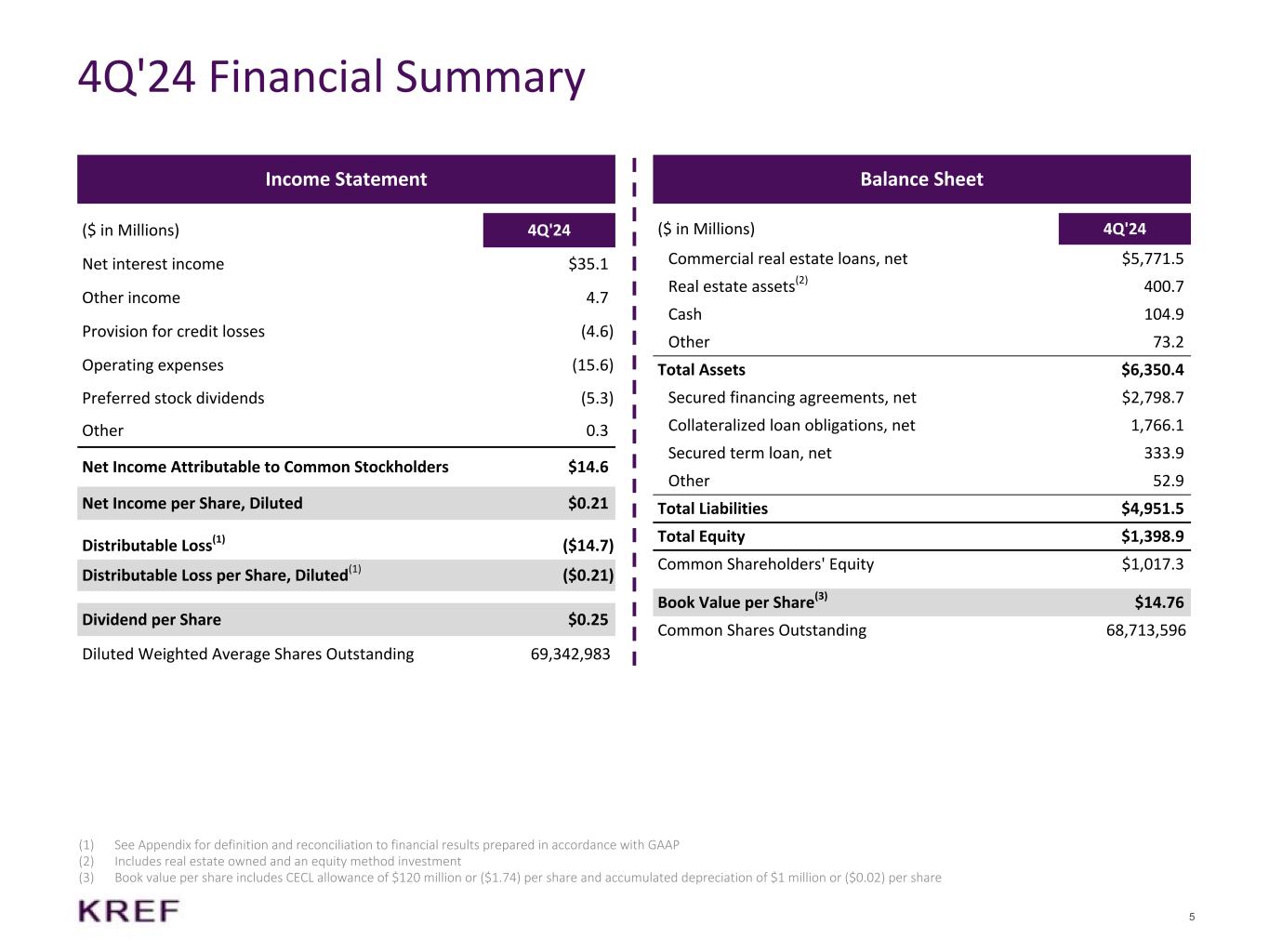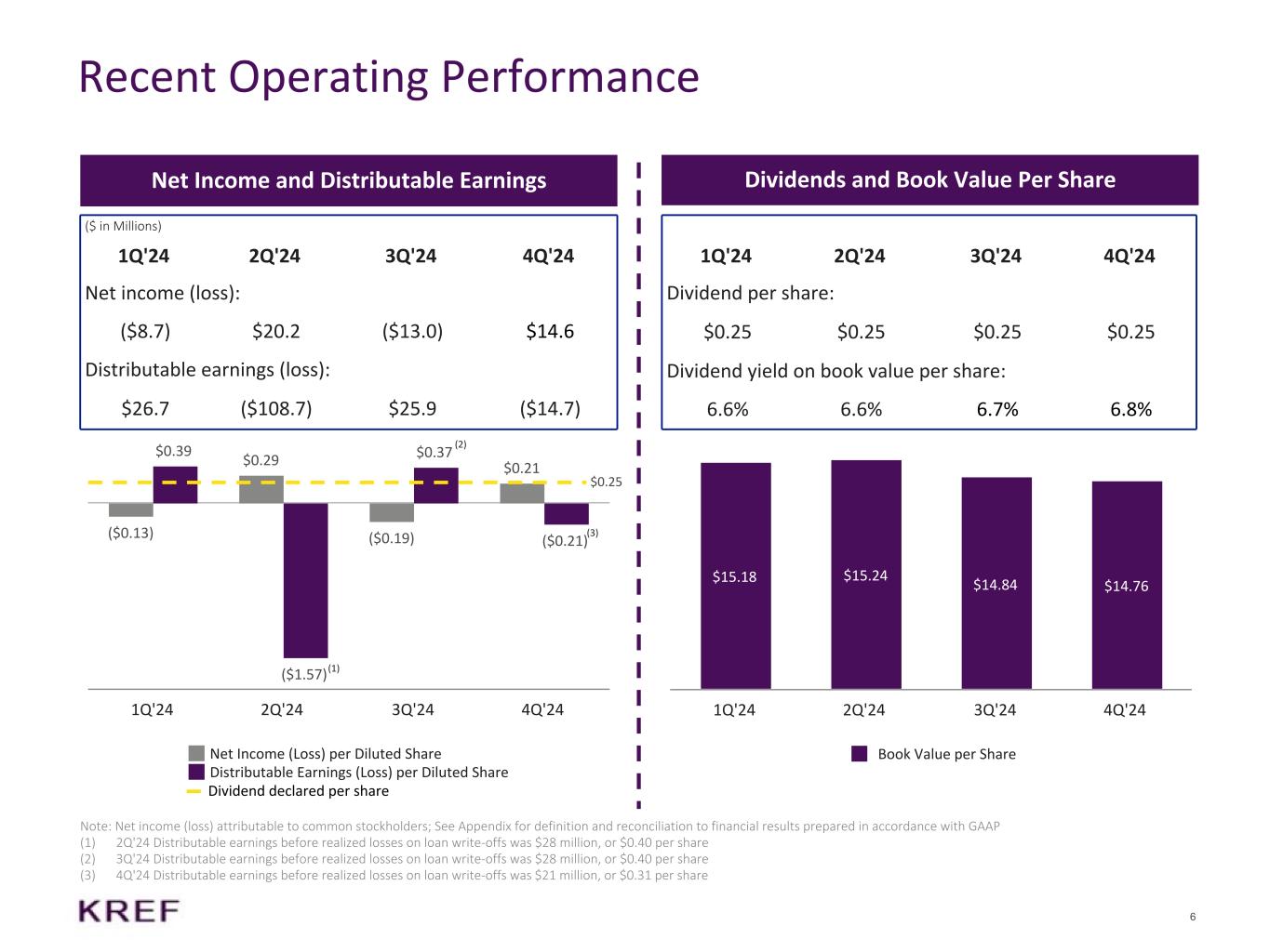 2024年12月31日に終了した3ヵ月間および通年の分配可能損失は、それぞれ(1,470万ドル)および(7,070万ドル)、希薄化後普通株式1株当たり(0.21ドル)および(1.02ドル)であった。