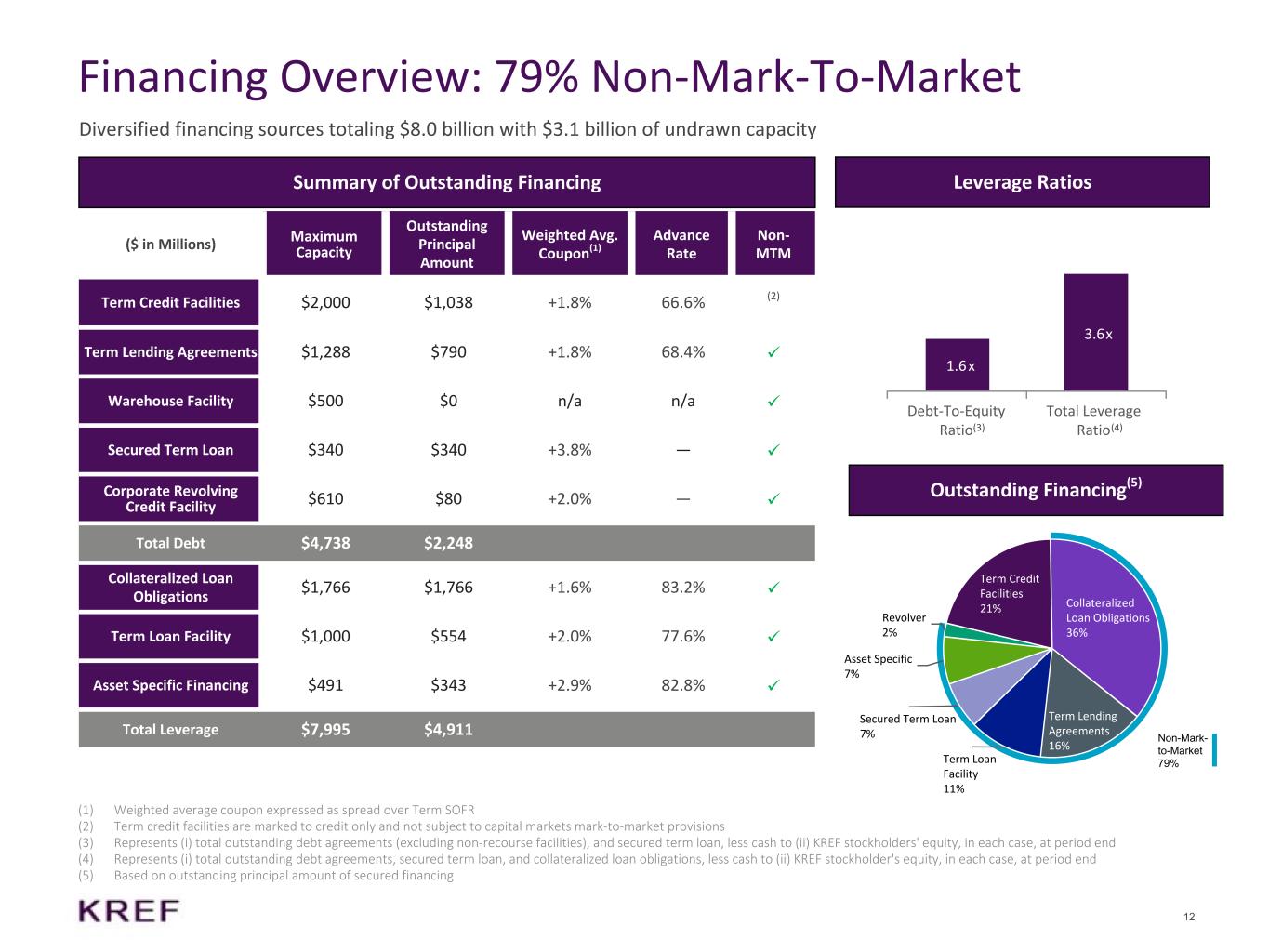 (B) 純資本は、(i) 貸付金の償却原価ベース(借入金控除後)、および (ii) 不動産資産(借入金および非支配持分控除後)を反映している。