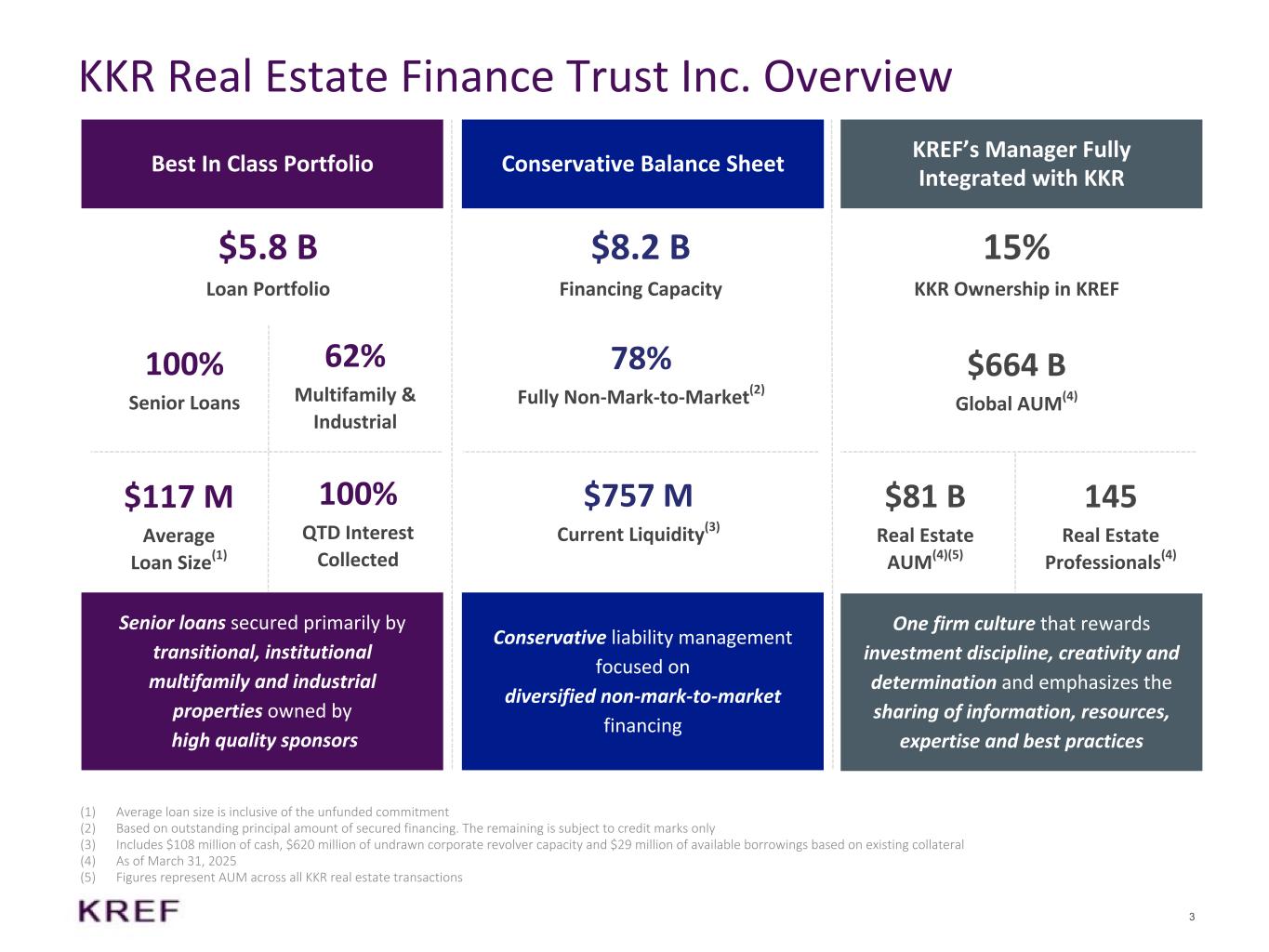ニューヨーク州ニューヨーク、2025年7月22日 - KKRリアル・エステート・ファイナンス・トラスト・インク(以下「当 社」または「KREF」)は本日、2025年6月30日に終了した四半期決算を発表した。