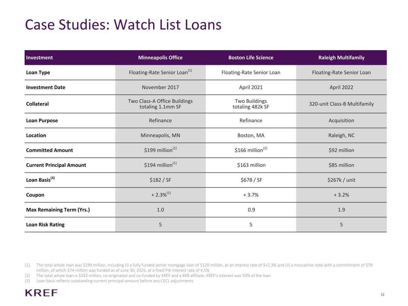 (B) 融資総額は4億760万ドルで、当社とKKRの関連会社が共同オリジネートした。当社の持分はローンの31%。