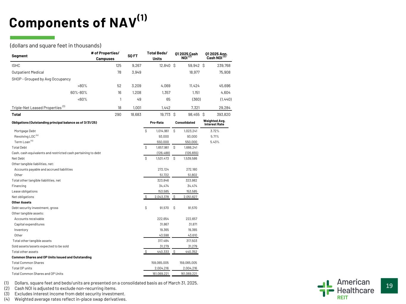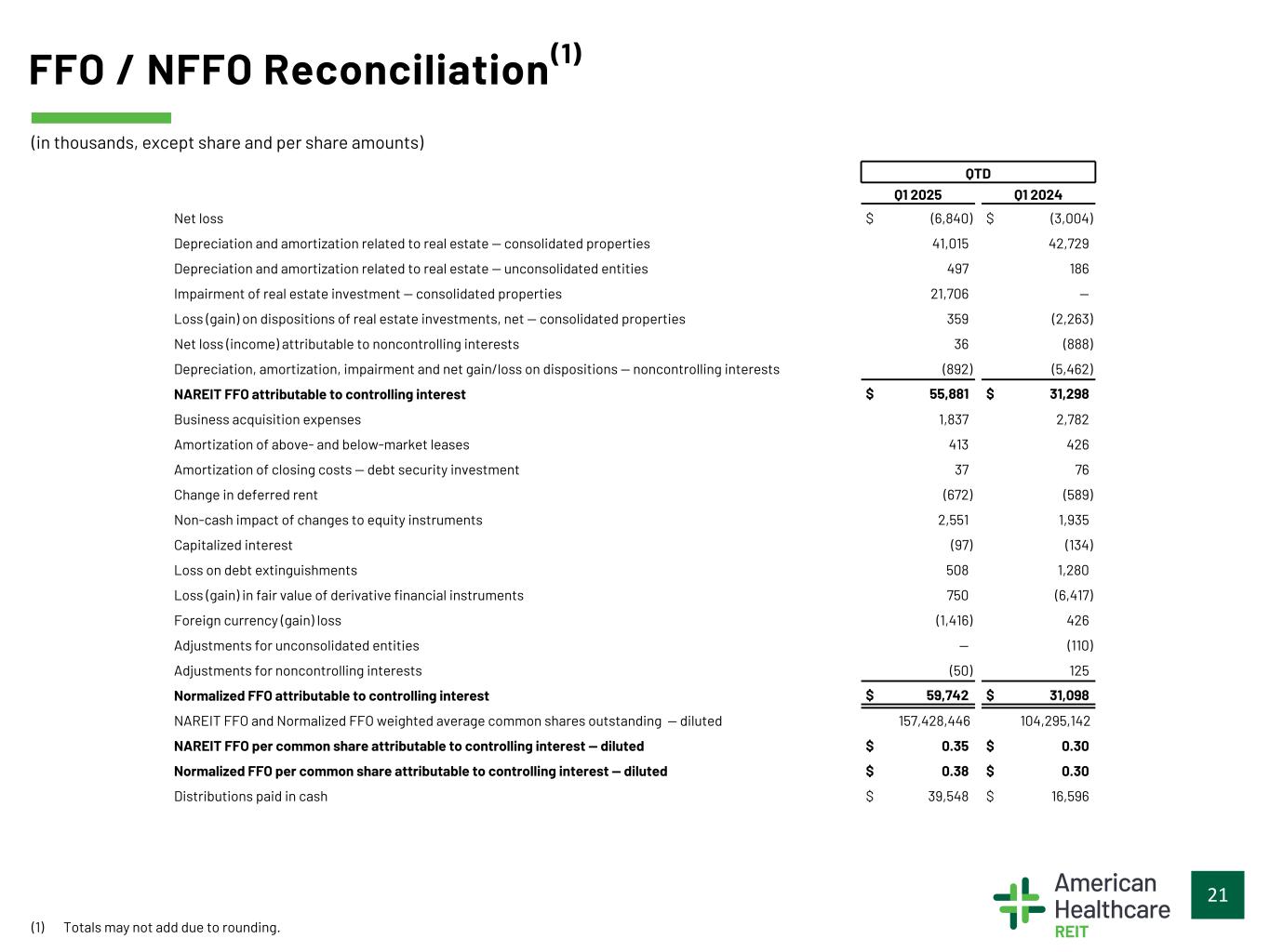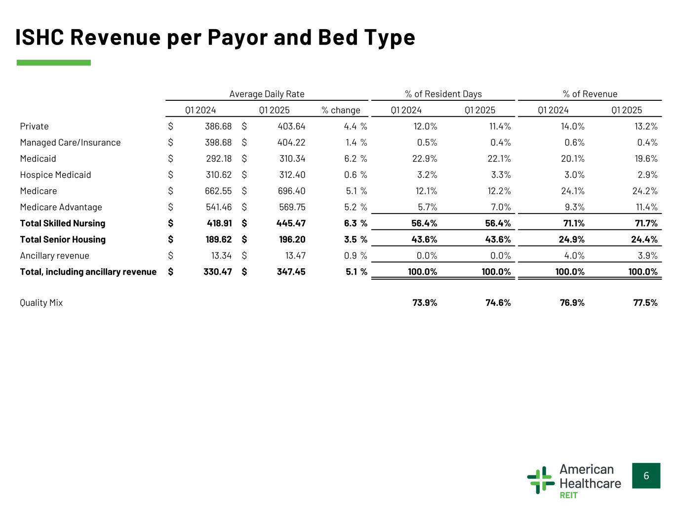 当社は、2025年3月31日現在および3月31日に終了した3ヶ月間のポートフォリオ、財政状態および経営成績に関する補足情報、ならびにその他の情報を開示しており、当社ウェブサイトの投資家向け情報セクション(https://ir.americanhealthcarereit.com)にてご覧いただけます。