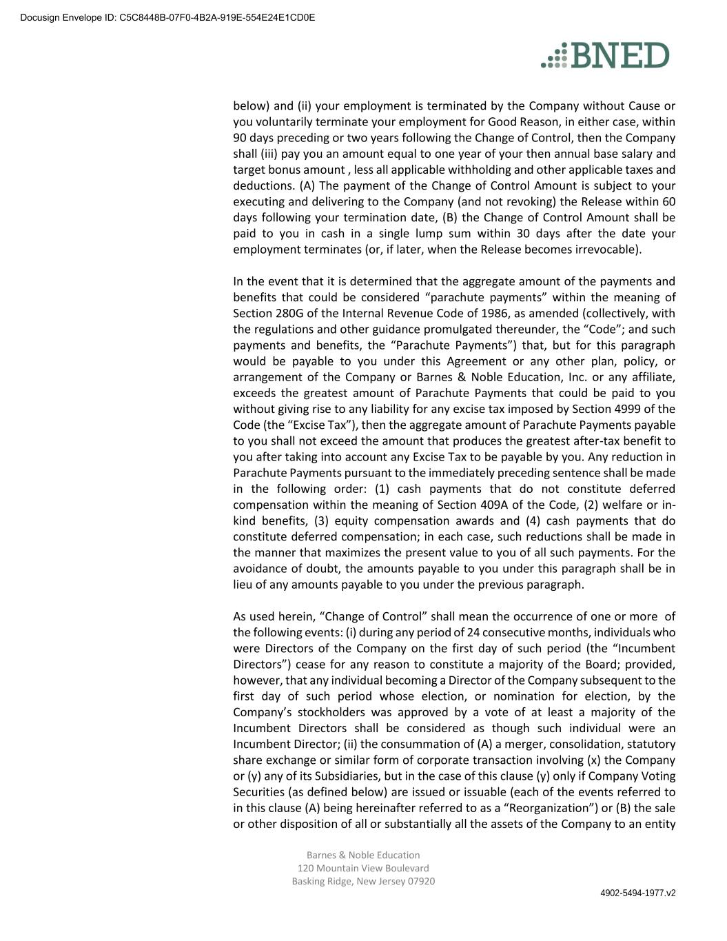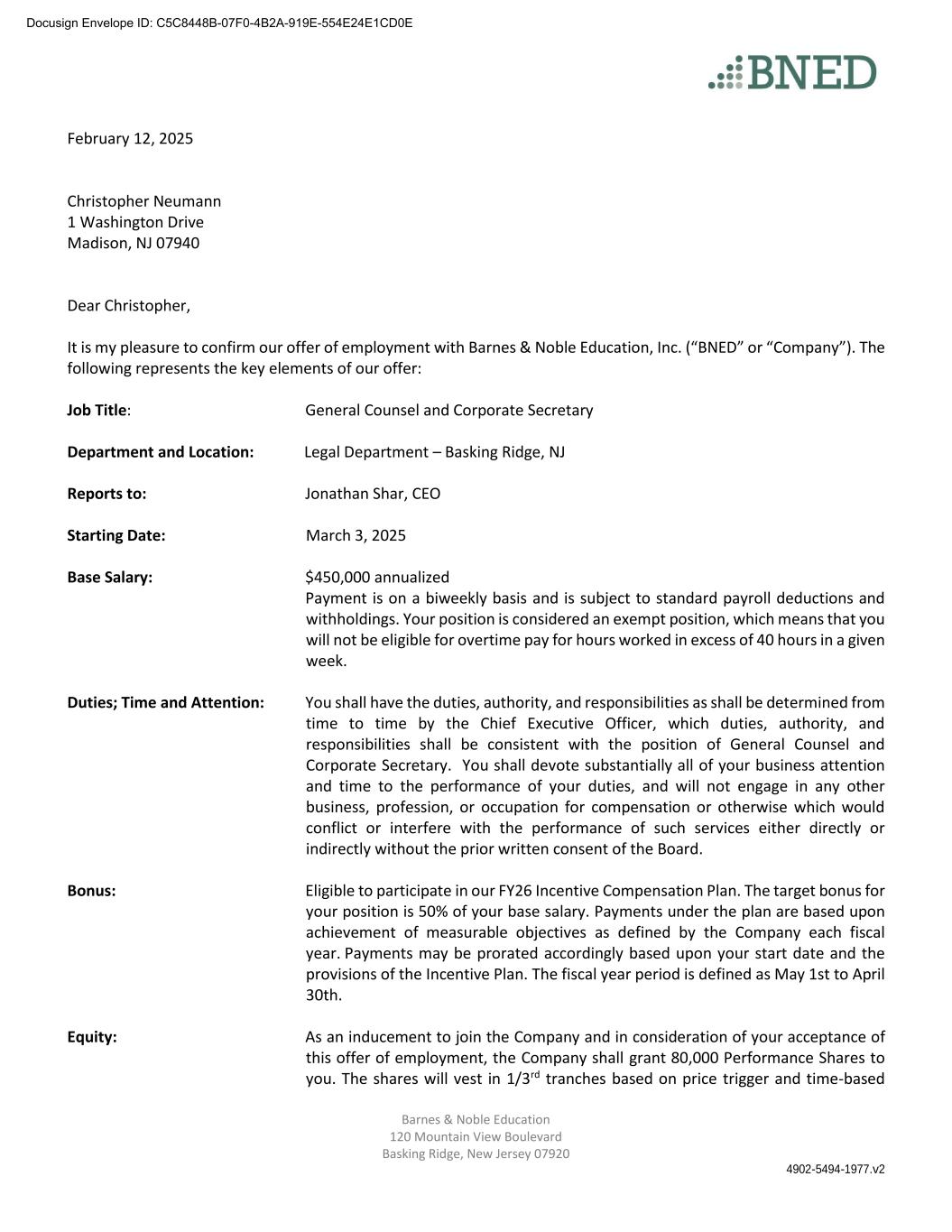 (v)Registration Statement (Form S-8 No. 333-206893), Registration Statement (Form S-8 No. 333-213673), and Registration Statement (Form S-8 No.333-282251) each of which relates to the Barnes & Noble Education, Inc. Equity Incentive Plan.