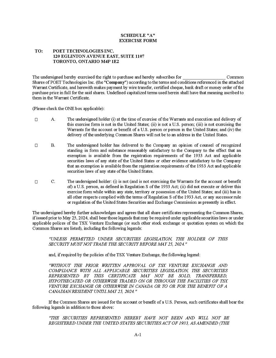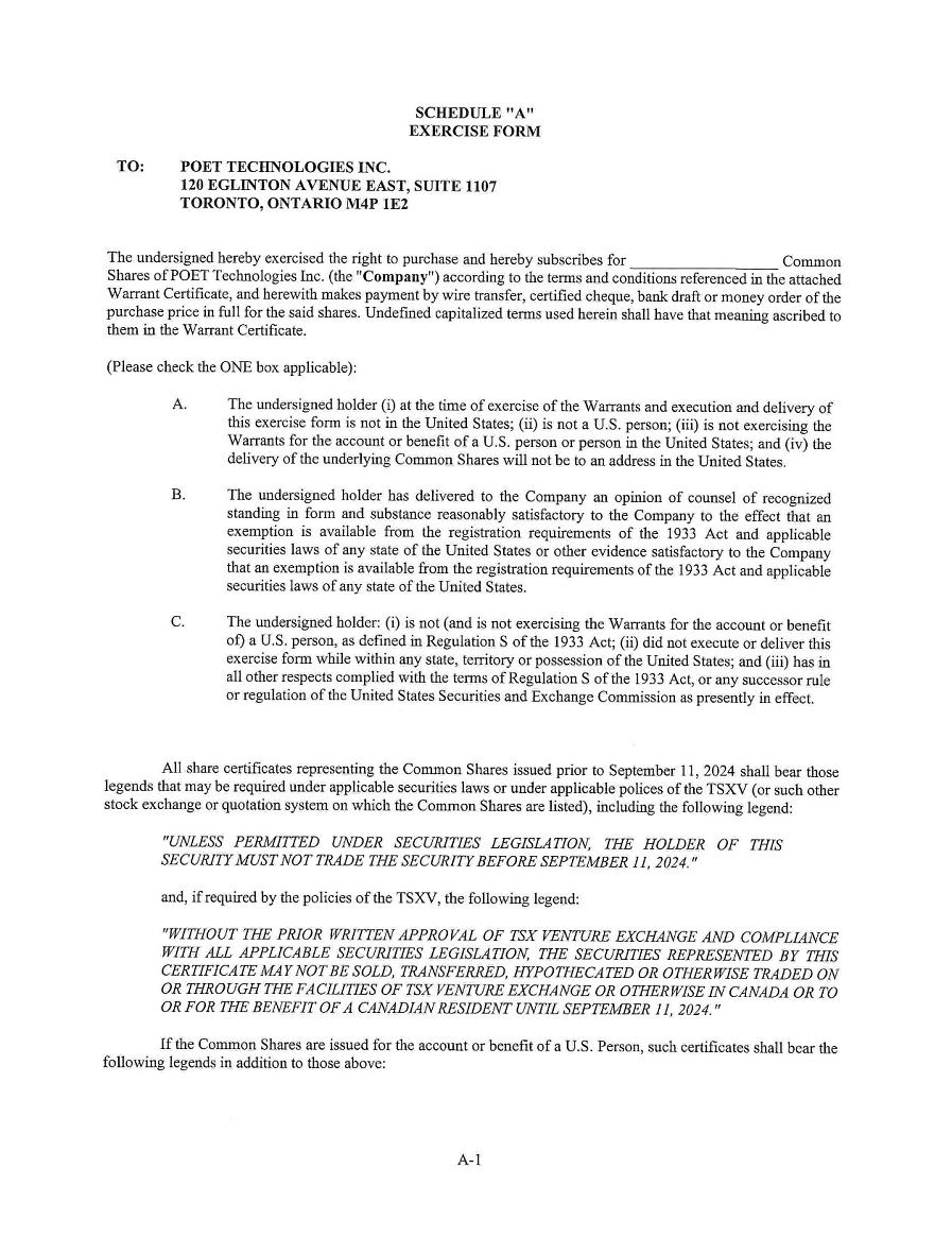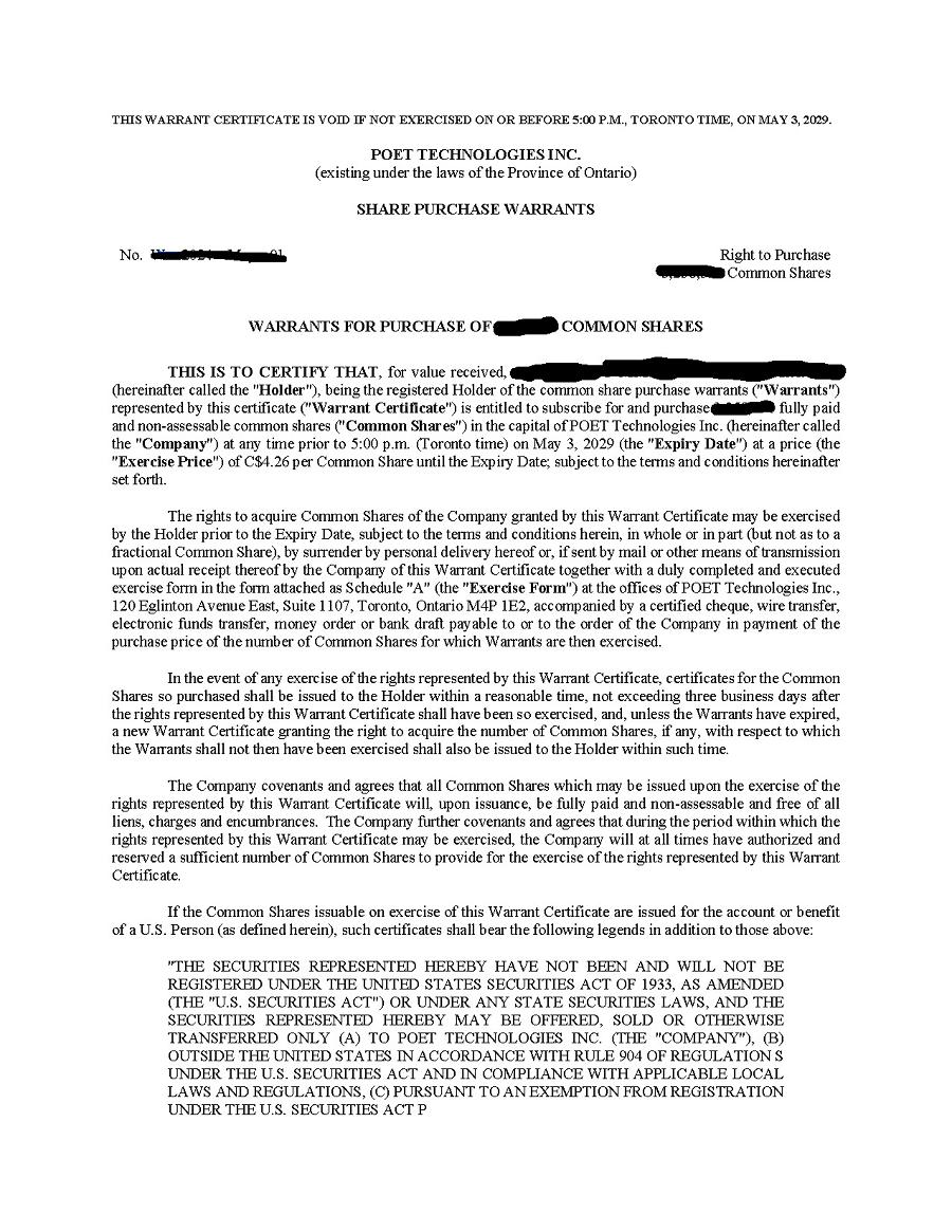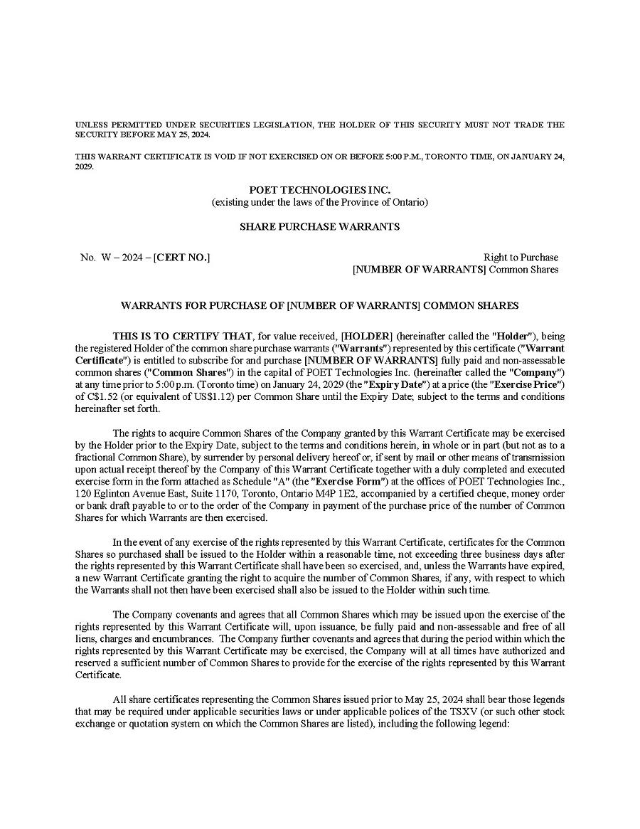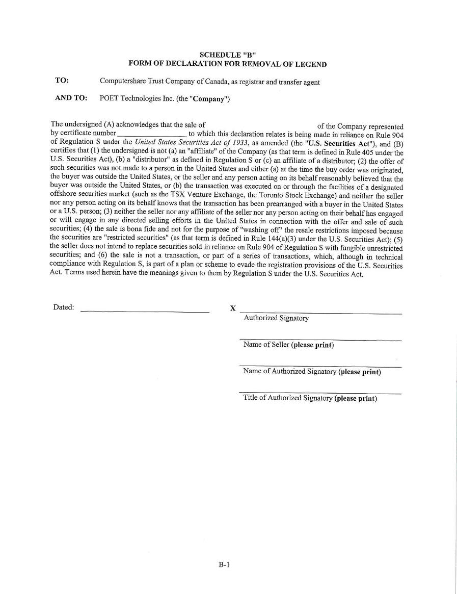 | 1. | I have reviewed this annual report on Form 20-F of POET Technologies Inc.; |