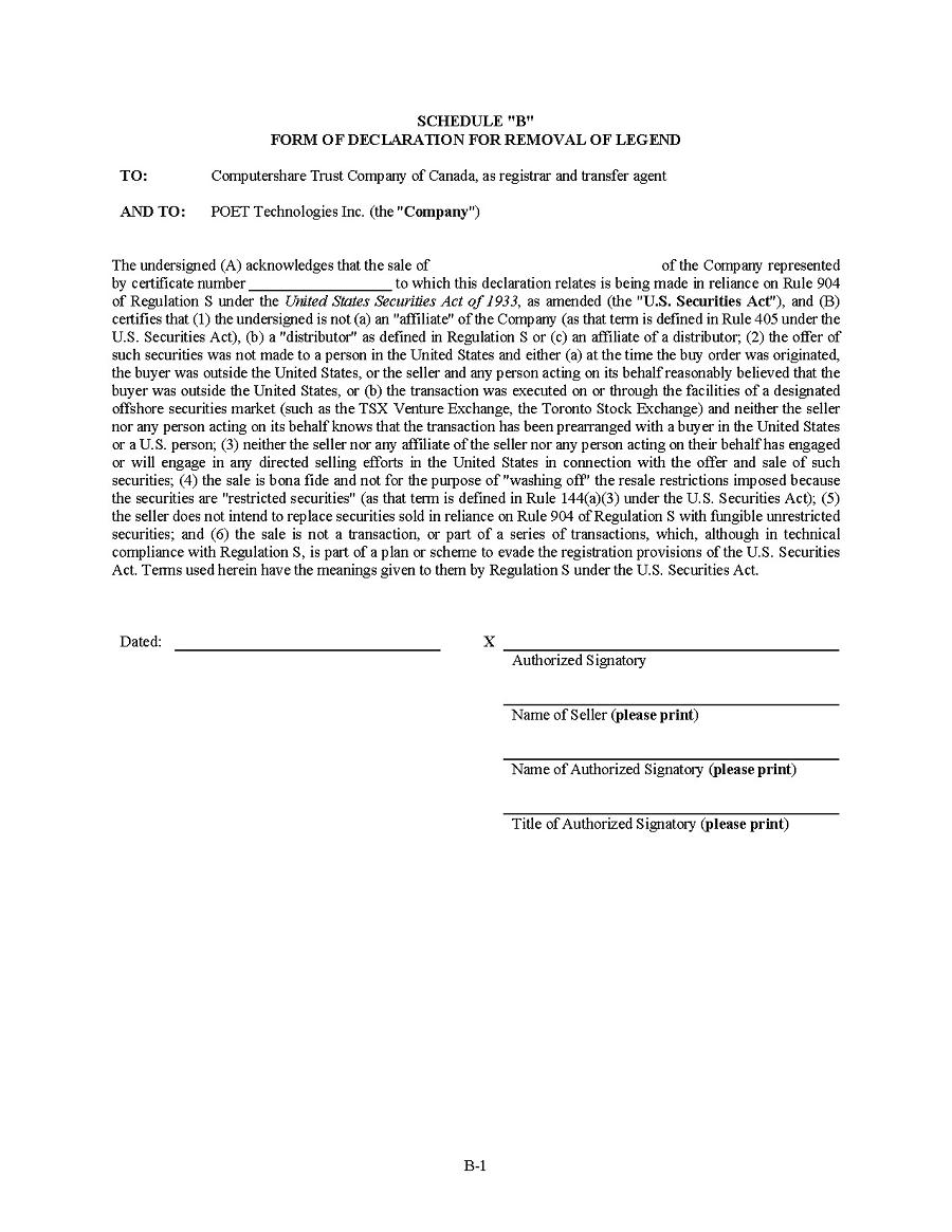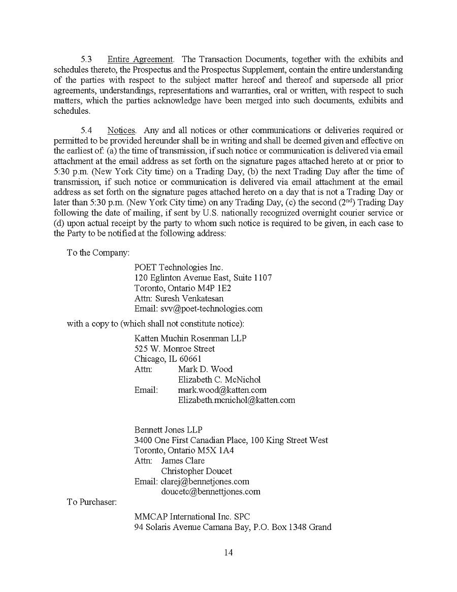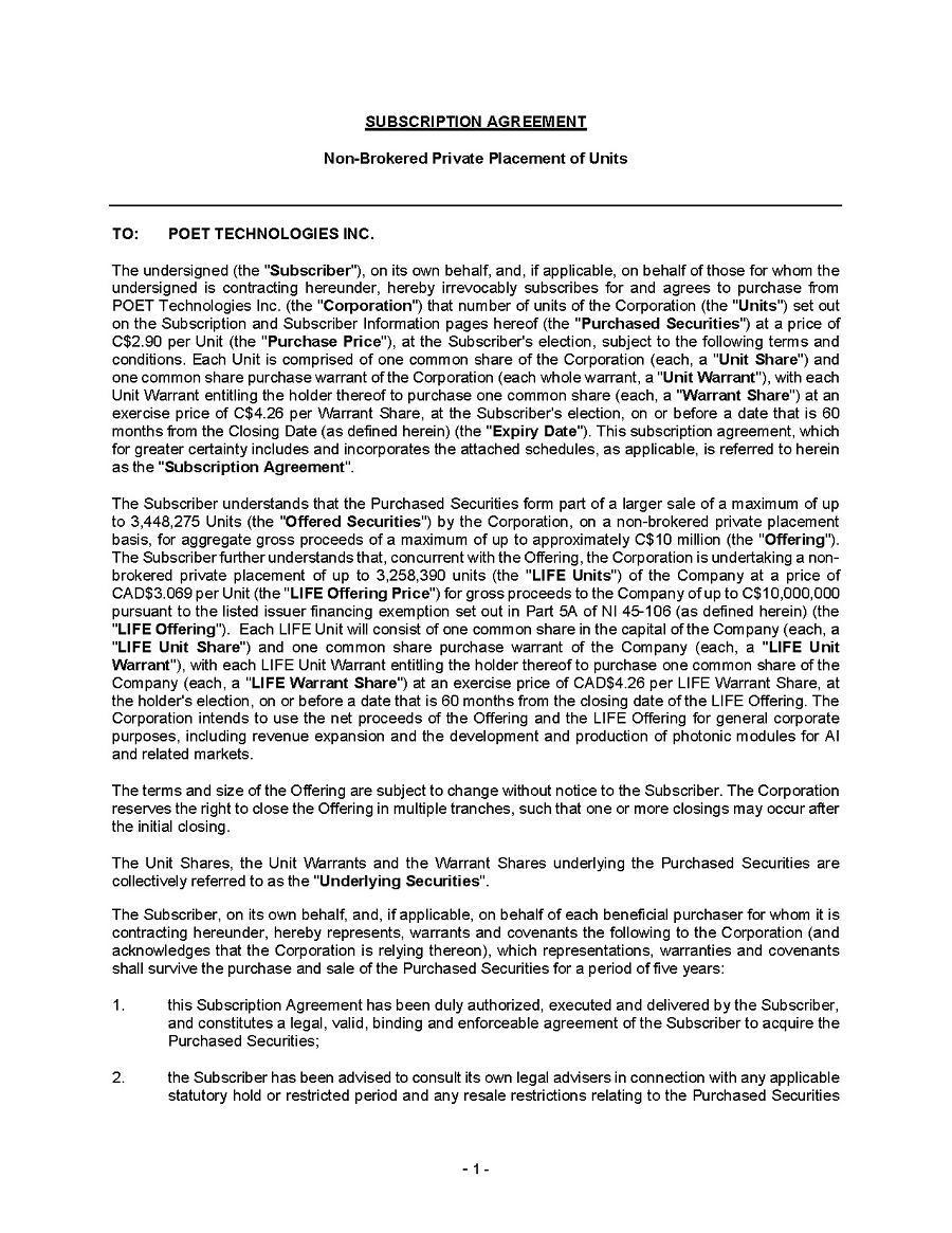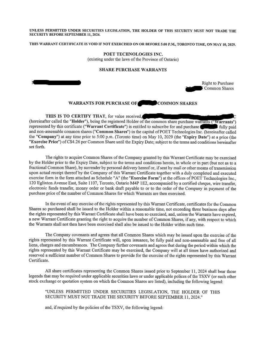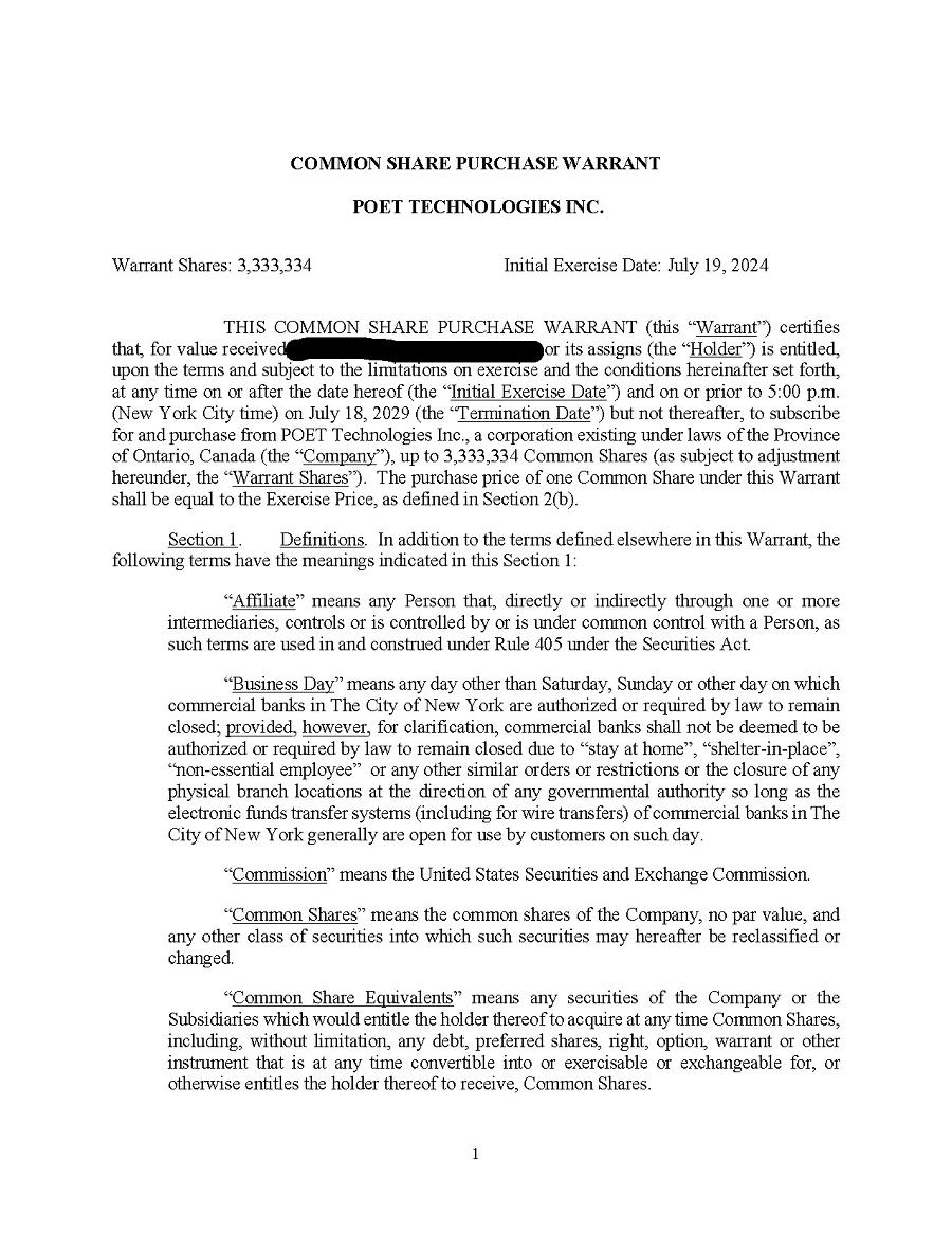 | 1. | I have reviewed this annual report on Form 20-F of POET Technologies Inc.; |