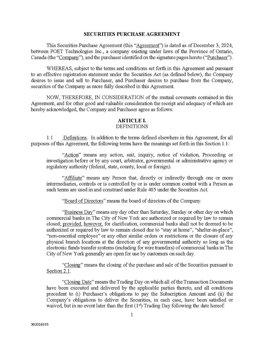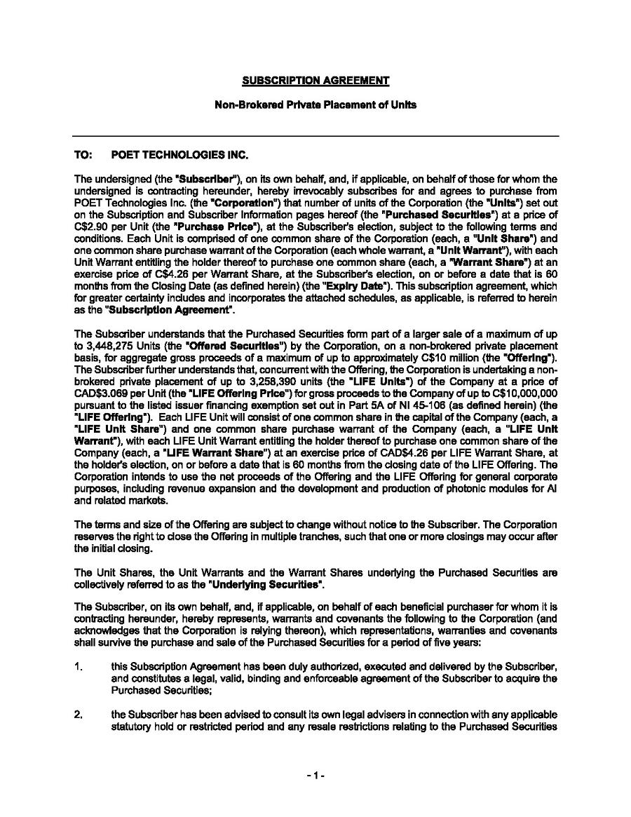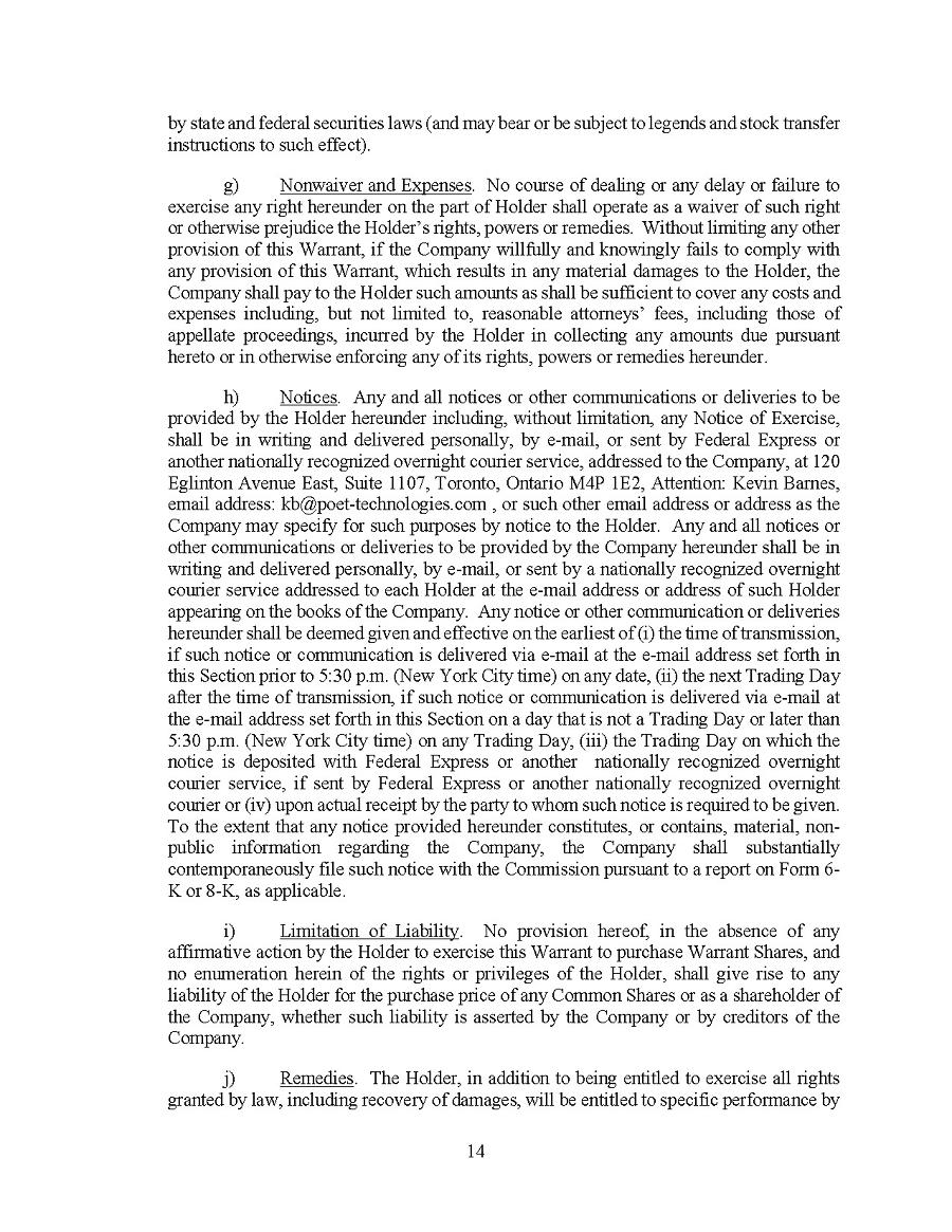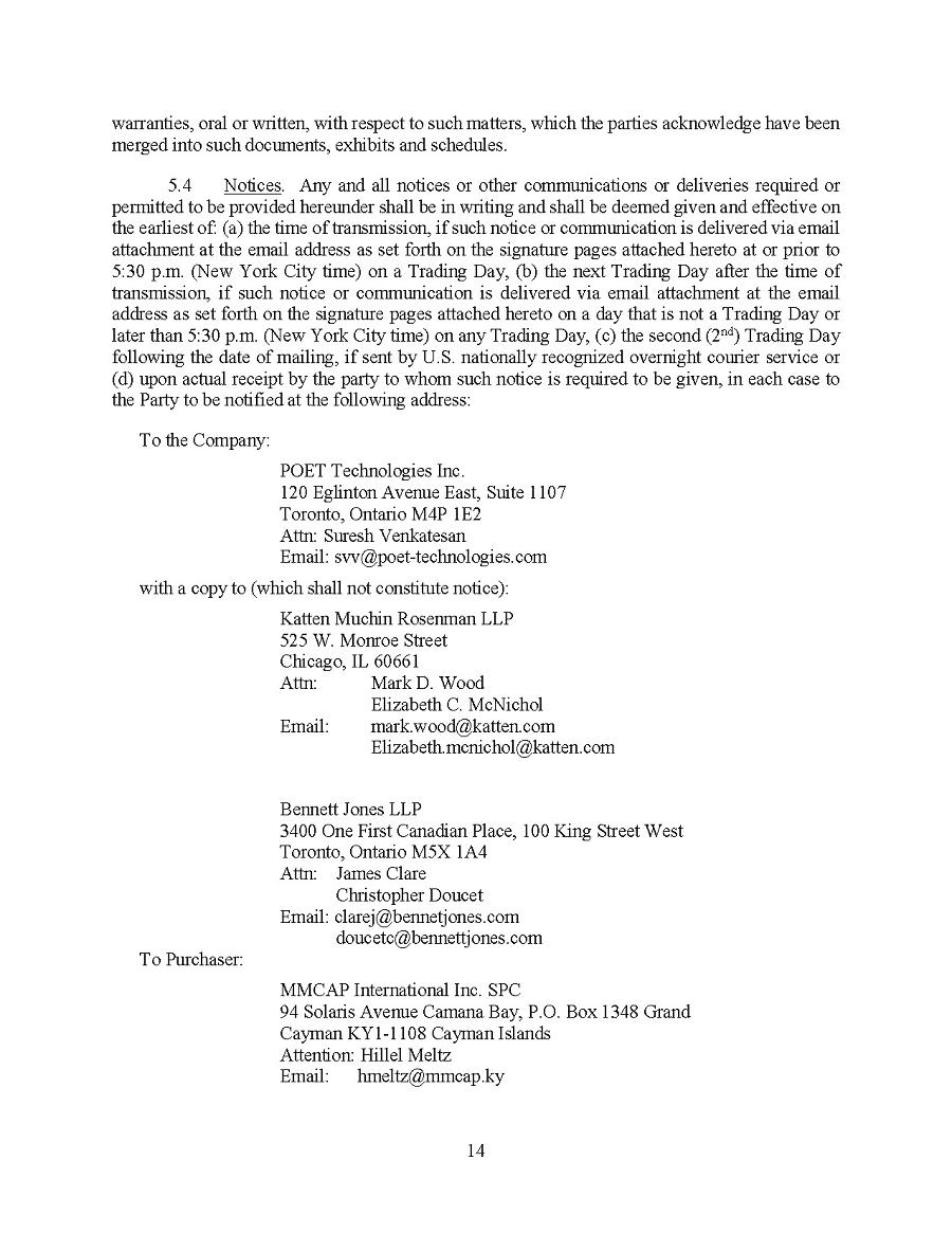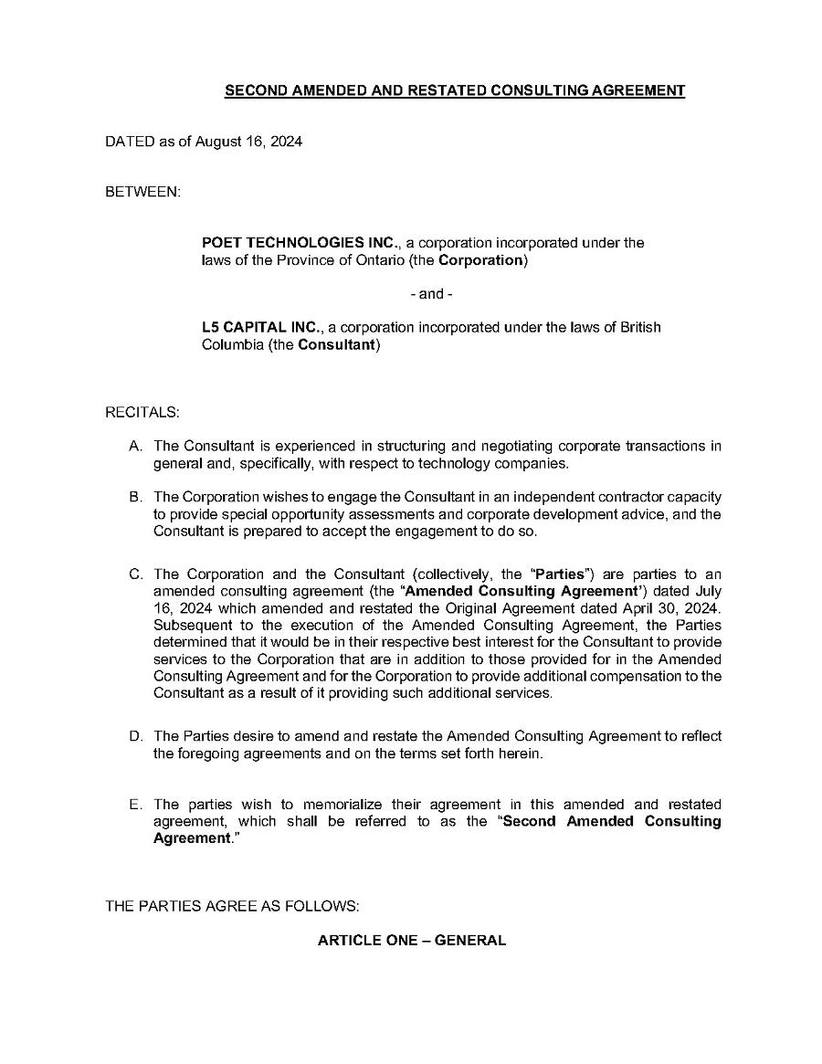 | 1. | I have reviewed this annual report on Form 20-F of POET Technologies Inc.; |