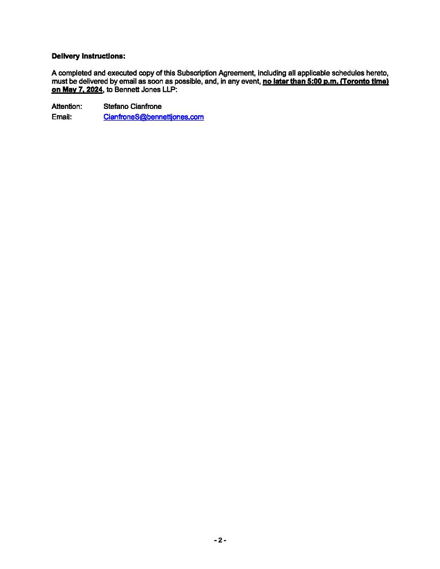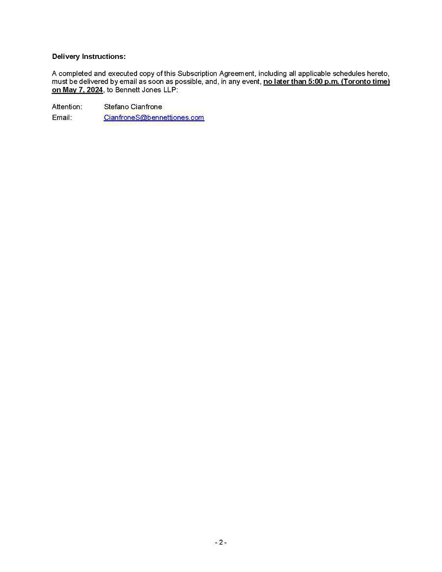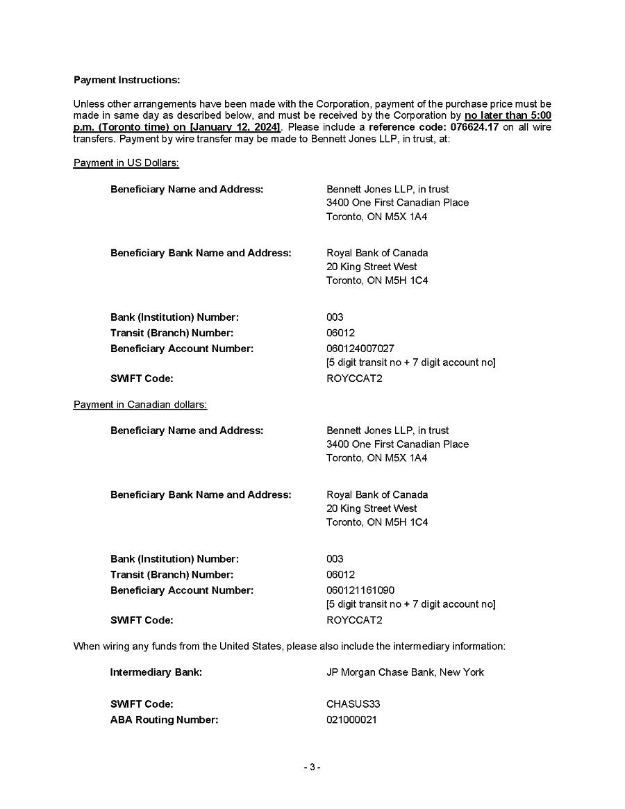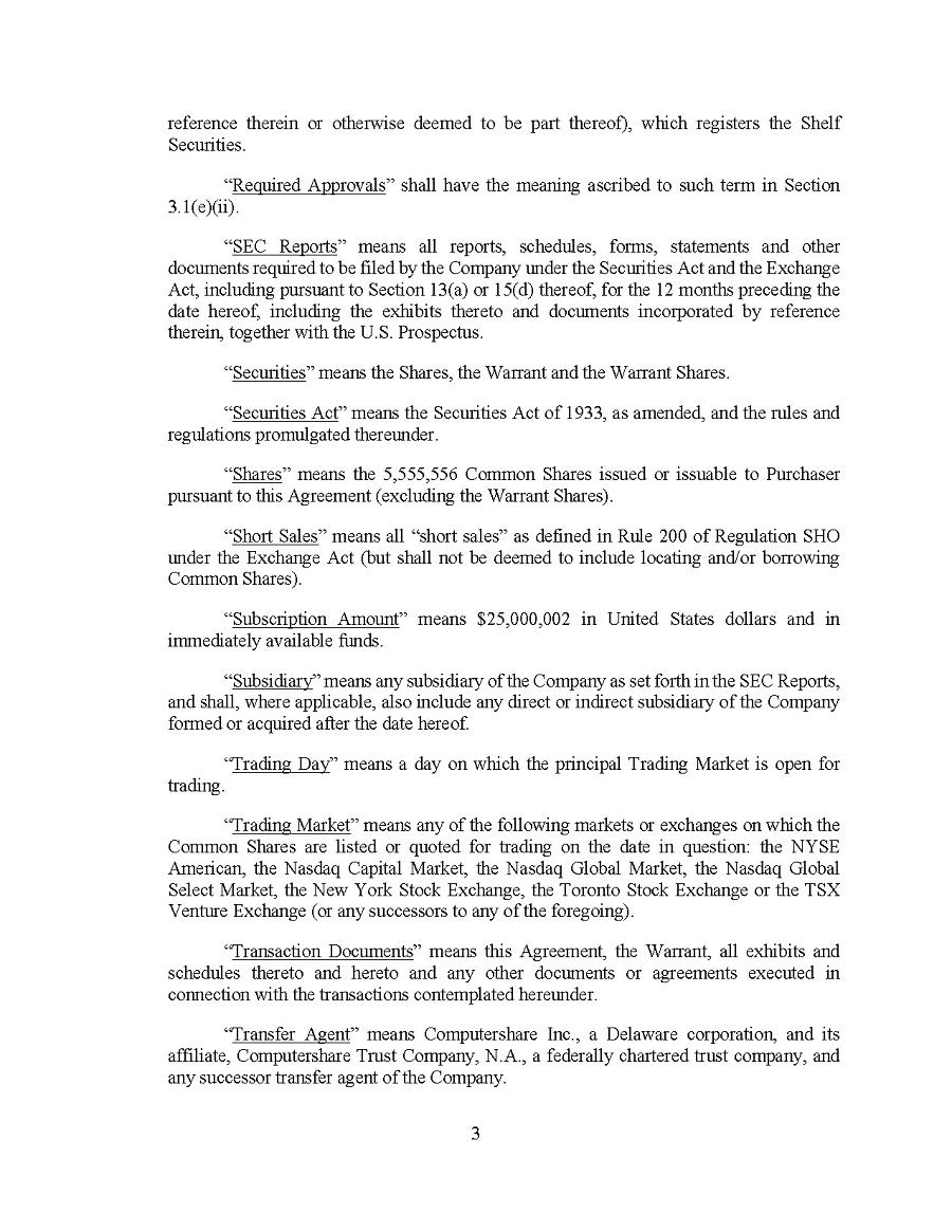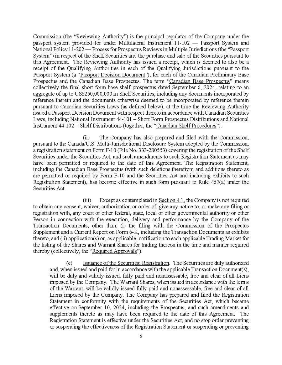 This Annual Report (including the consolidated audited financial statements for the years ended December 31, 2024, 2023 and 2022 attached thereto, together with the auditors’ report thereon), and the exhibits thereto shall be deemed to be incorporated by reference as exhibits to the Registration Statement of the Company on Form F- 10, as amended (File No. 333-227873), and to be a part thereof from the date on which this report was filed, to the extent not superseded by documents or reports subsequently filed or furnished.