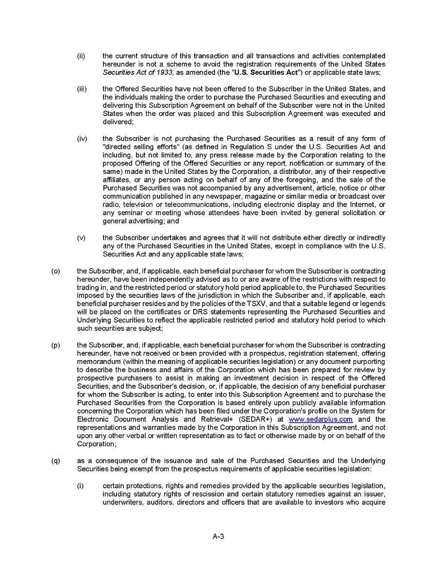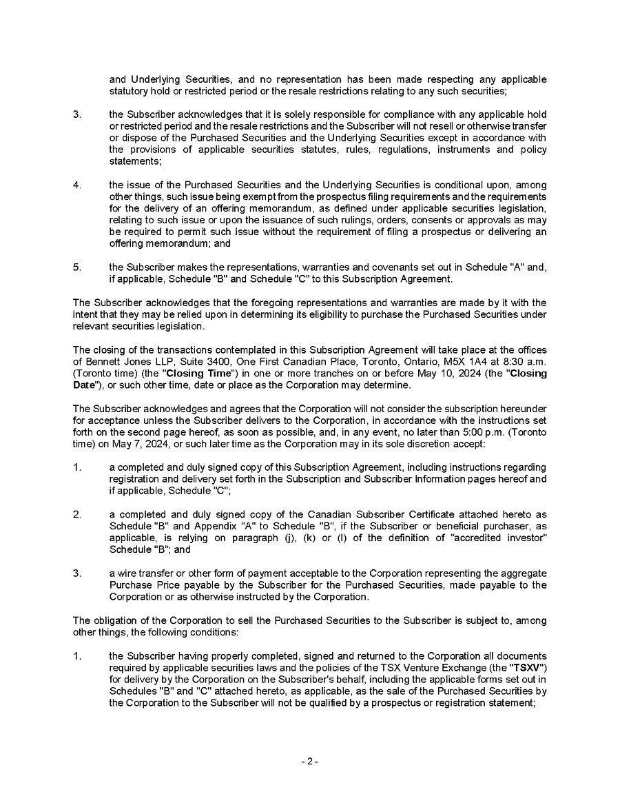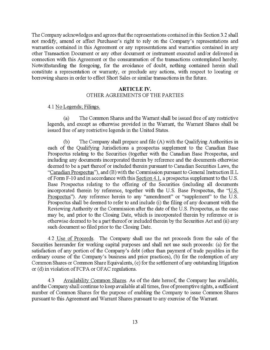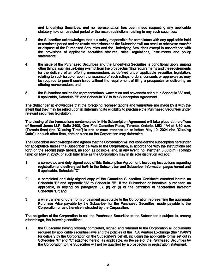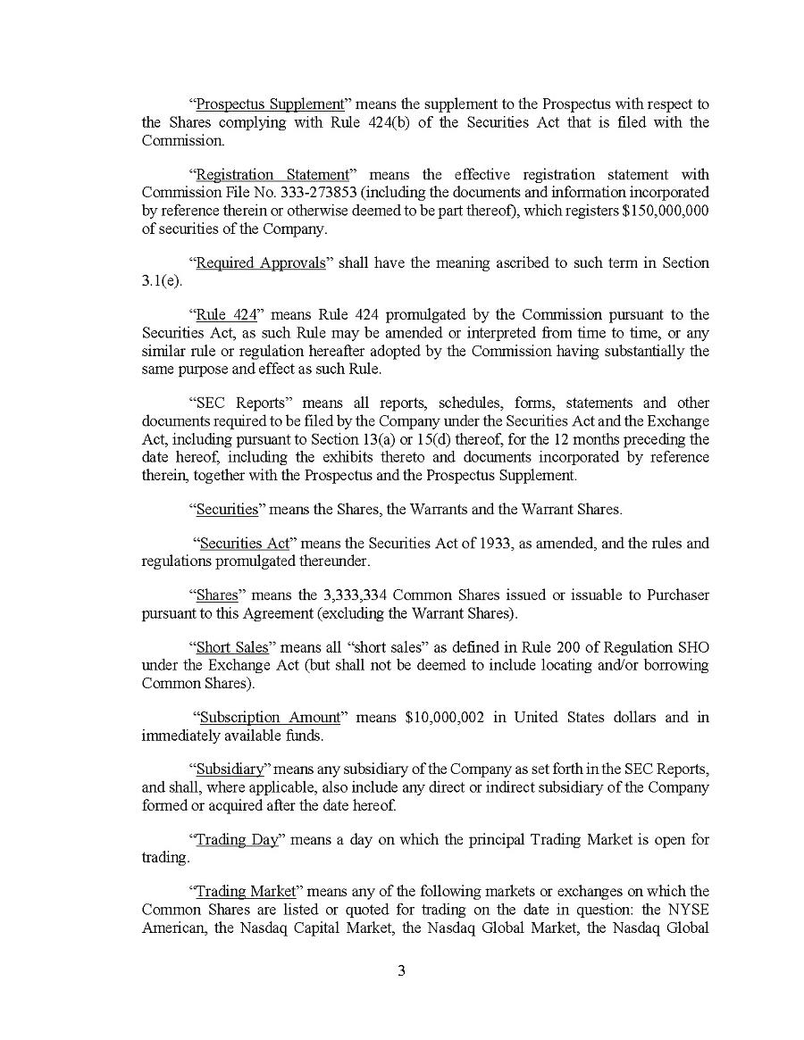 This Annual Report (including the consolidated audited financial statements for the years ended December 31, 2024, 2023 and 2022 attached thereto, together with the auditors’ report thereon), and the exhibits thereto shall be deemed to be incorporated by reference as exhibits to the Registration Statement of the Company on Form F- 10, as amended (File No. 333-227873), and to be a part thereof from the date on which this report was filed, to the extent not superseded by documents or reports subsequently filed or furnished.