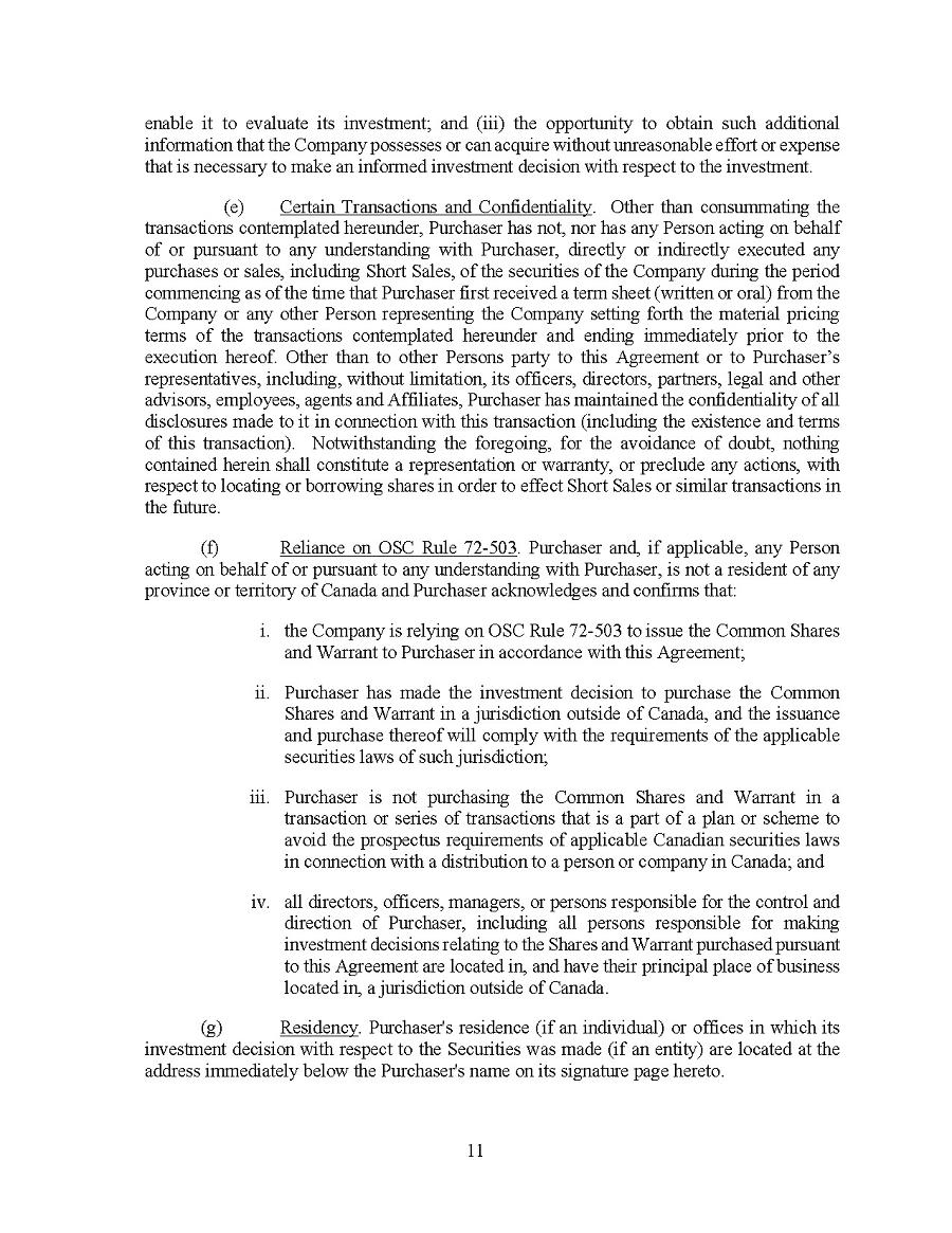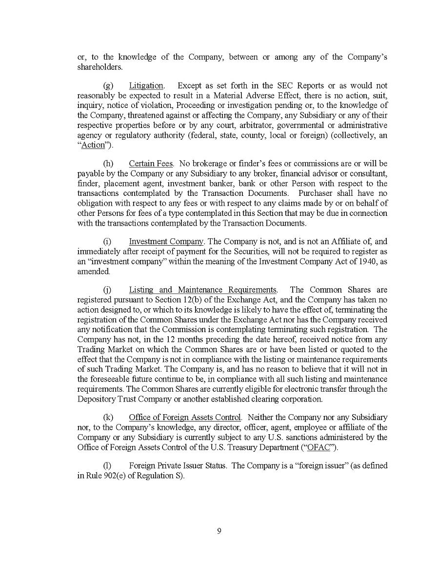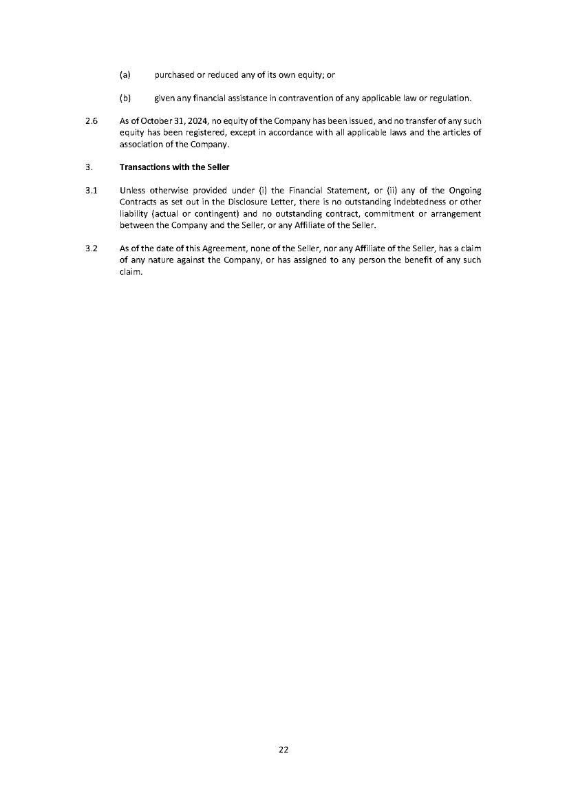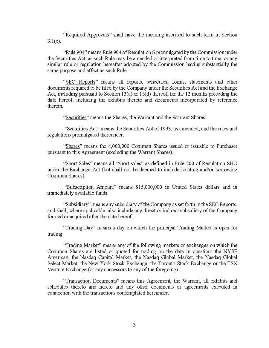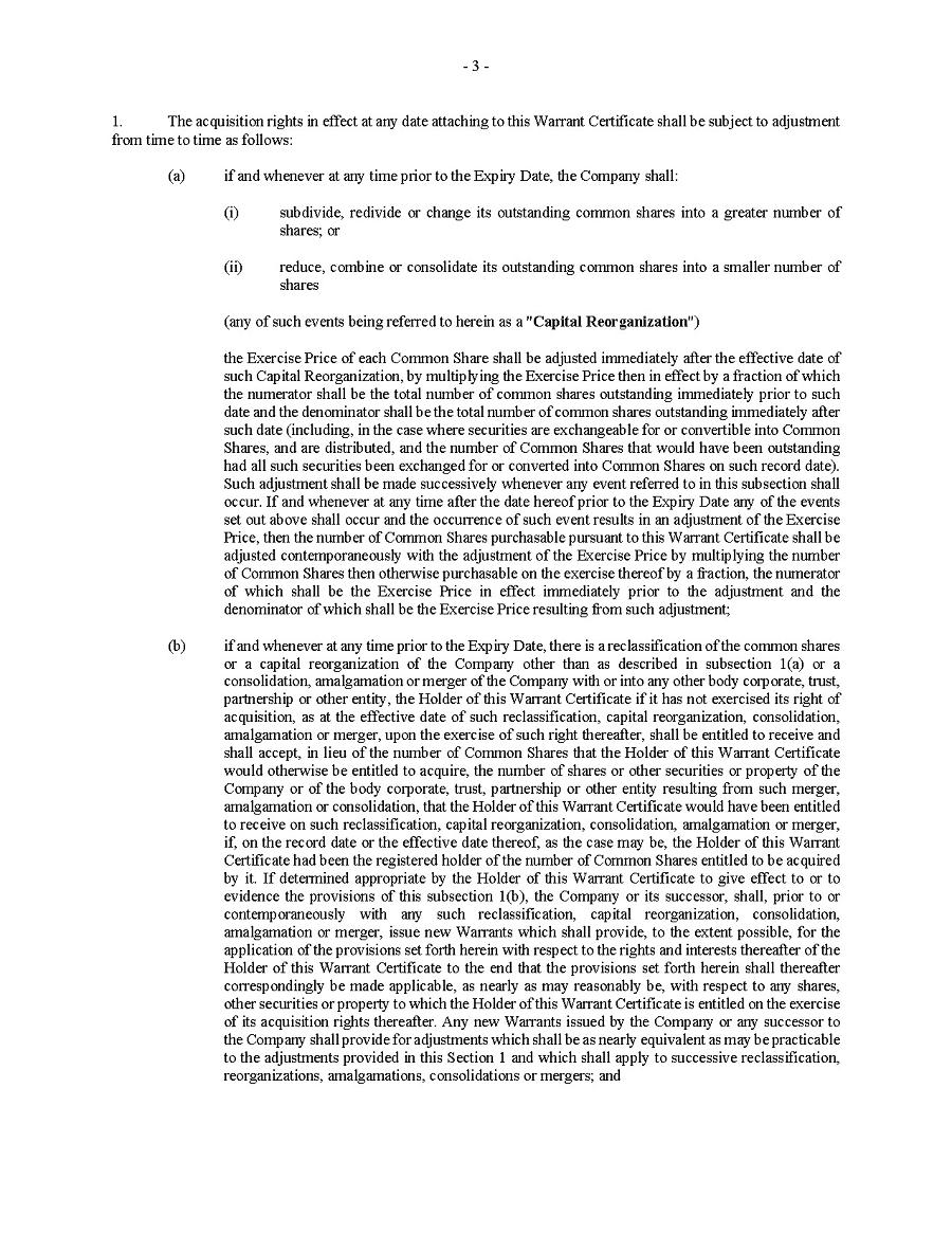 This Annual Report (including the consolidated audited financial statements for the years ended December 31, 2024, 2023 and 2022 attached thereto, together with the auditors’ report thereon), and the exhibits thereto shall be deemed to be incorporated by reference as exhibits to the Registration Statement of the Company on Form F- 10, as amended (File No. 333-227873), and to be a part thereof from the date on which this report was filed, to the extent not superseded by documents or reports subsequently filed or furnished.