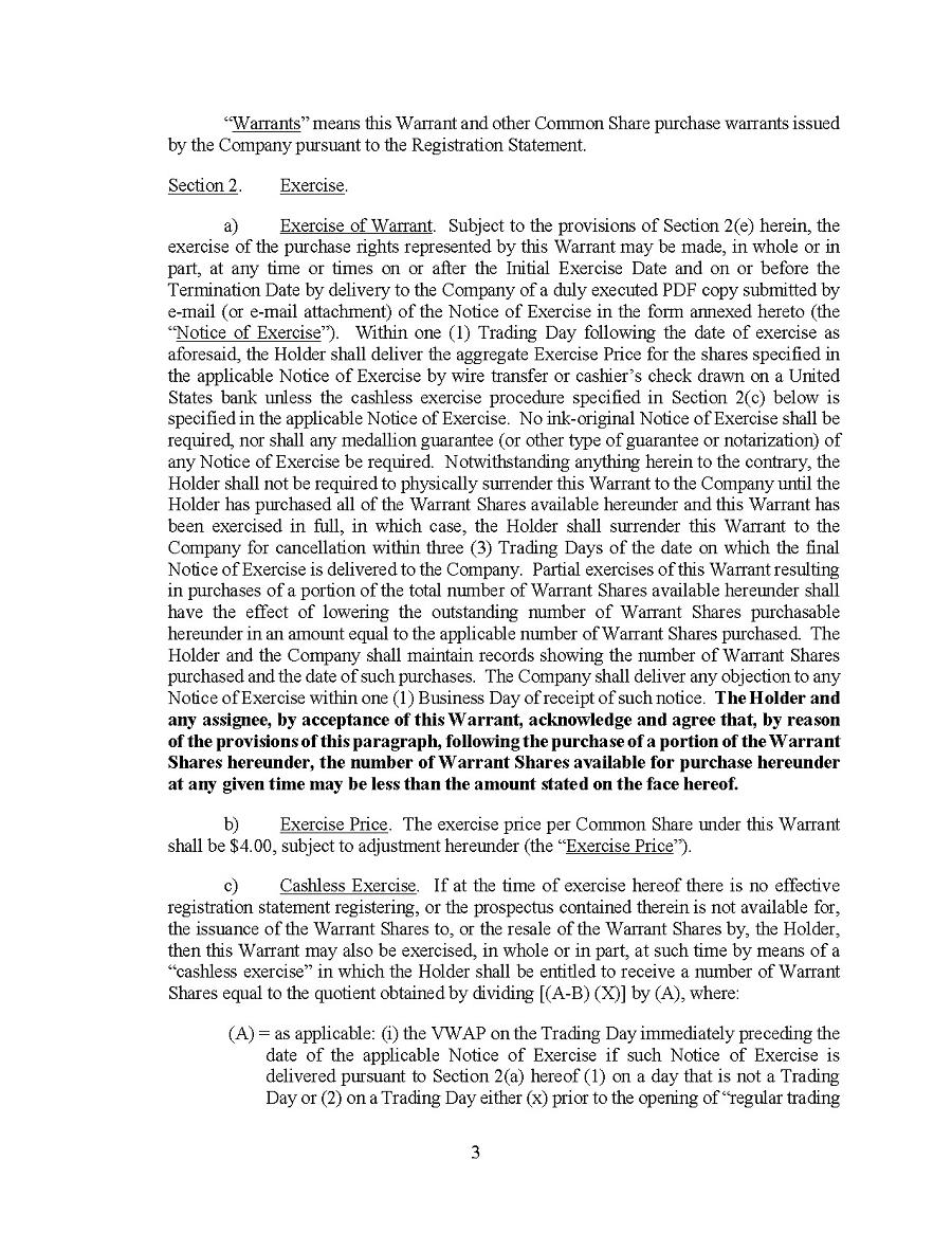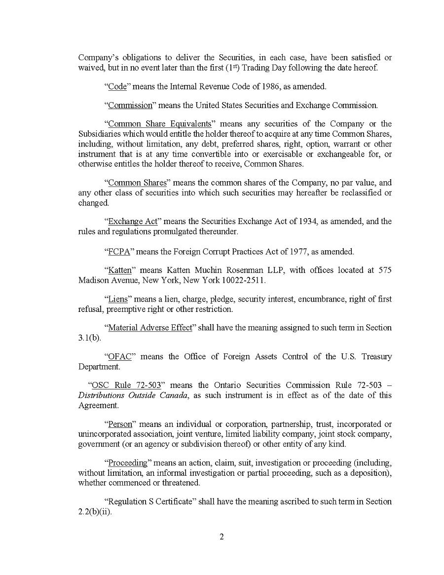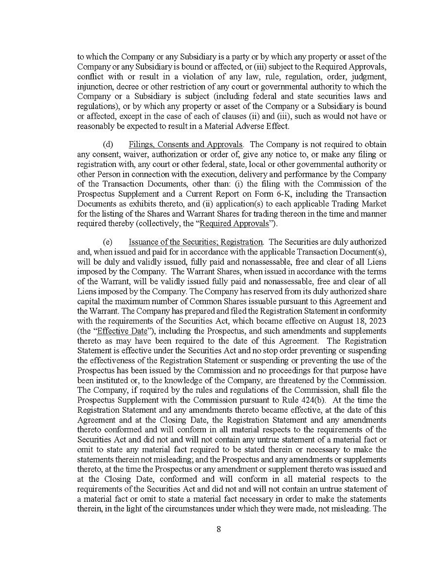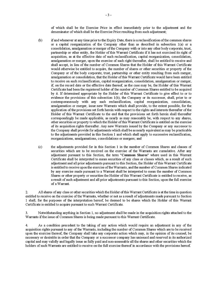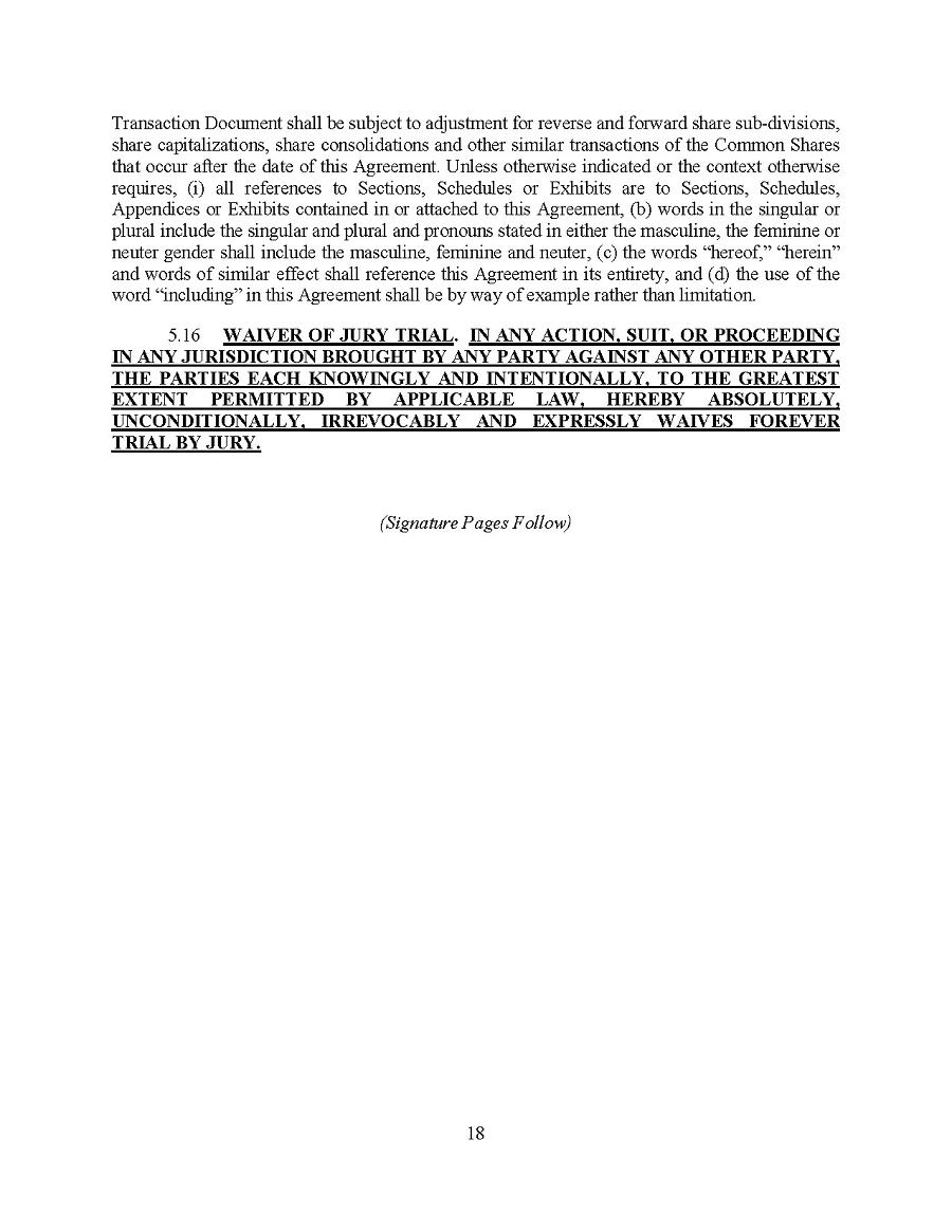 This Annual Report (including the consolidated audited financial statements for the years ended December 31, 2024, 2023 and 2022 attached thereto, together with the auditors’ report thereon), and the exhibits thereto shall be deemed to be incorporated by reference as exhibits to the Registration Statement of the Company on Form F- 10, as amended (File No. 333-227873), and to be a part thereof from the date on which this report was filed, to the extent not superseded by documents or reports subsequently filed or furnished.