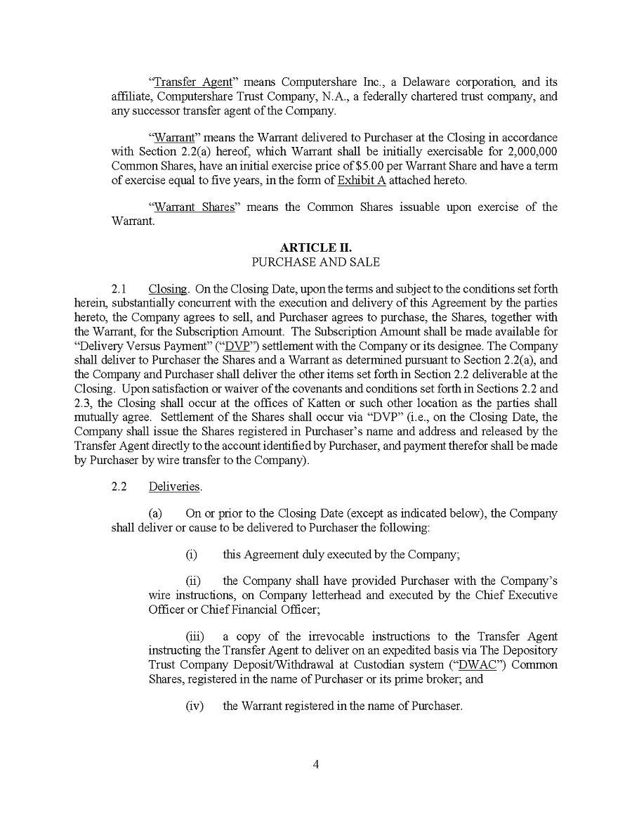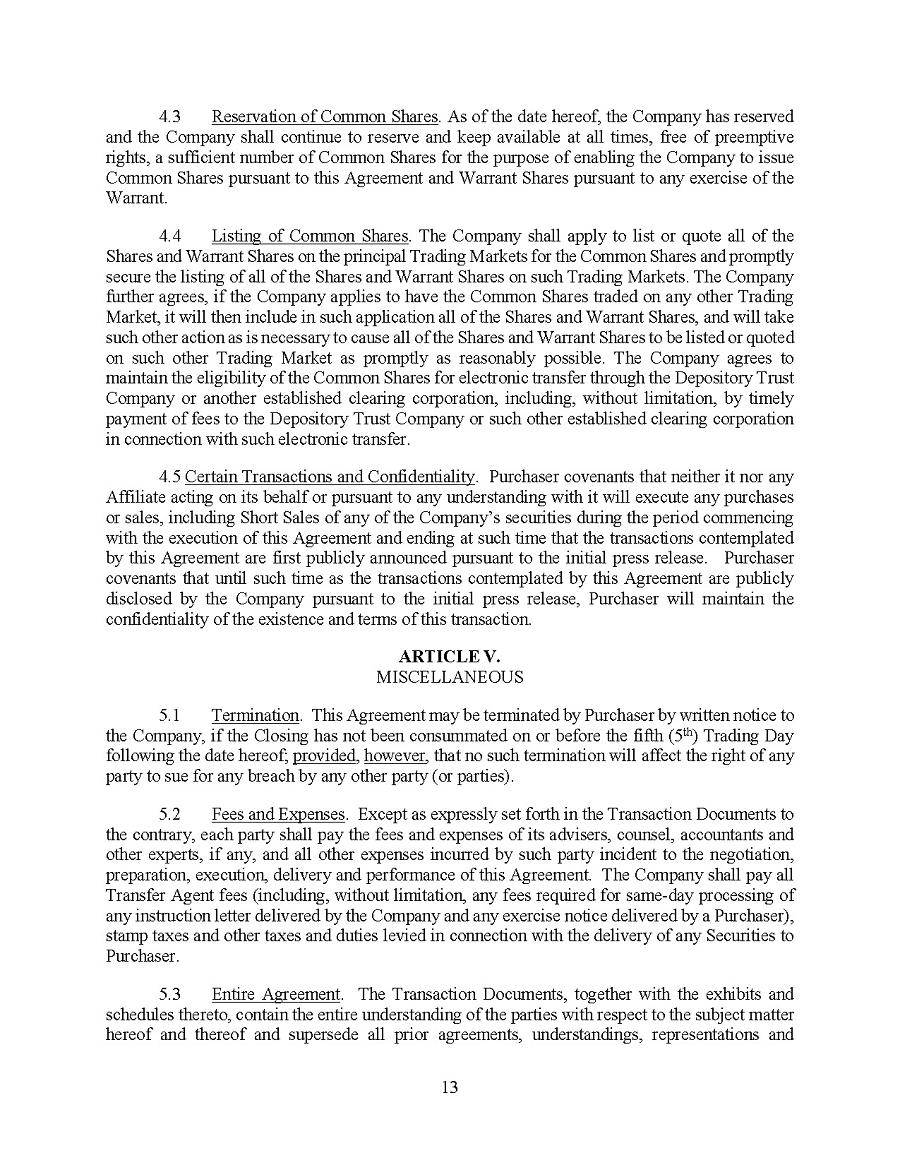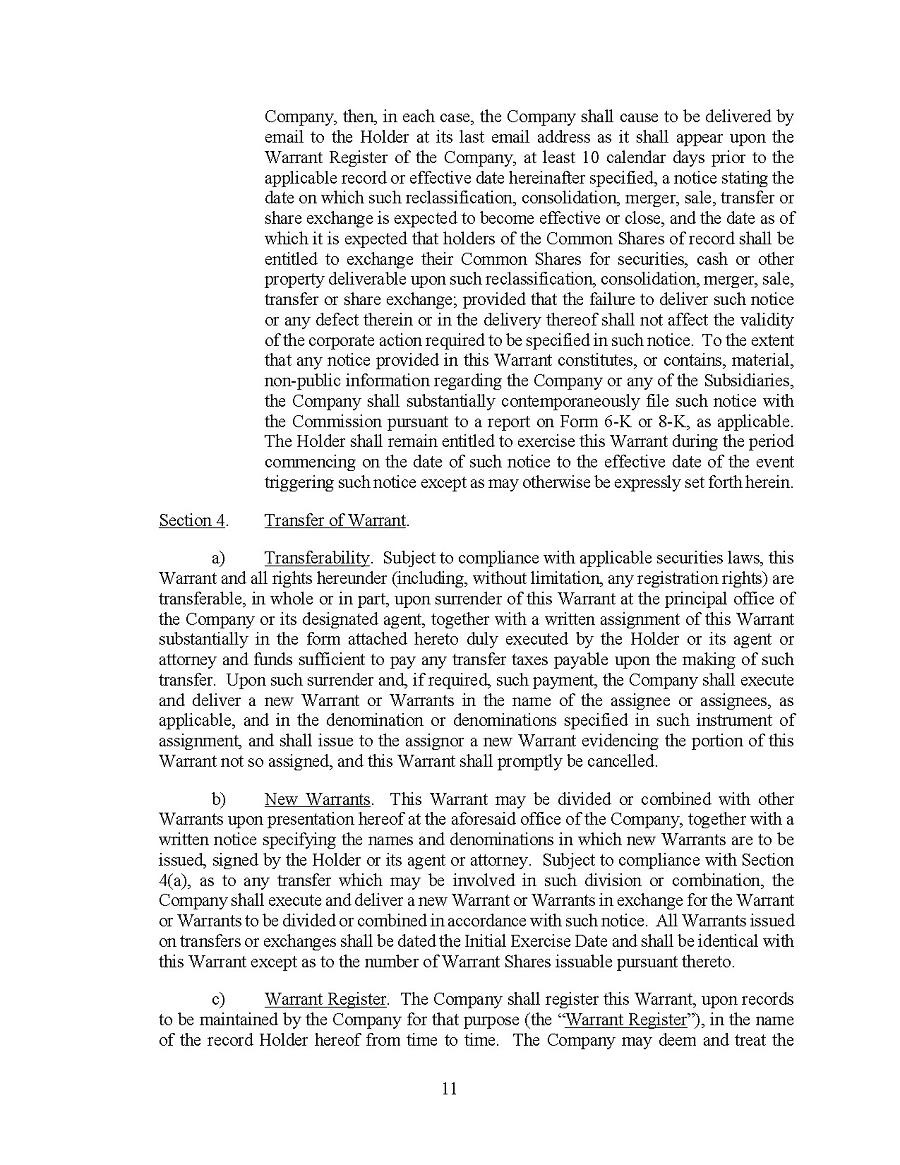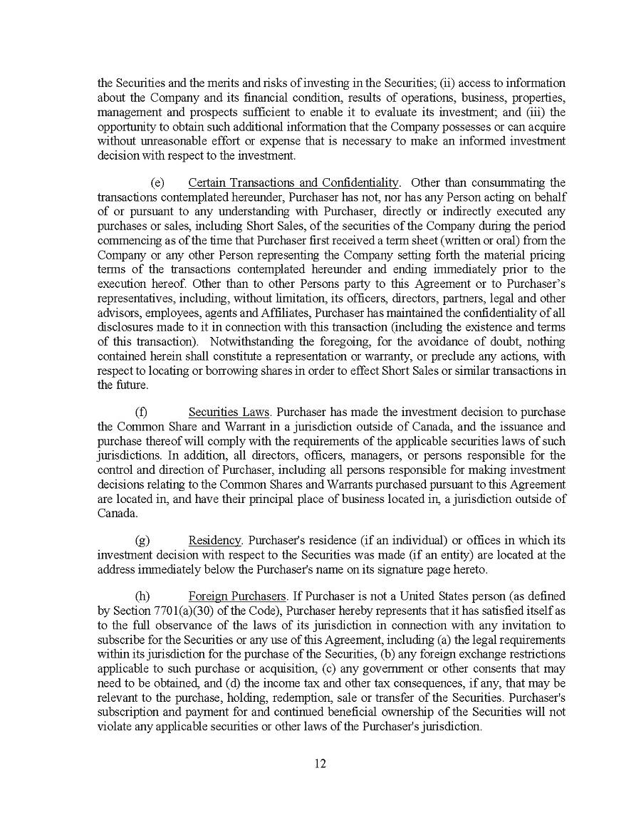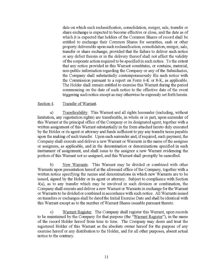 This Annual Report (including the consolidated audited financial statements for the years ended December 31, 2024, 2023 and 2022 attached thereto, together with the auditors’ report thereon), and the exhibits thereto shall be deemed to be incorporated by reference as exhibits to the Registration Statement of the Company on Form F- 10, as amended (File No. 333-227873), and to be a part thereof from the date on which this report was filed, to the extent not superseded by documents or reports subsequently filed or furnished.
