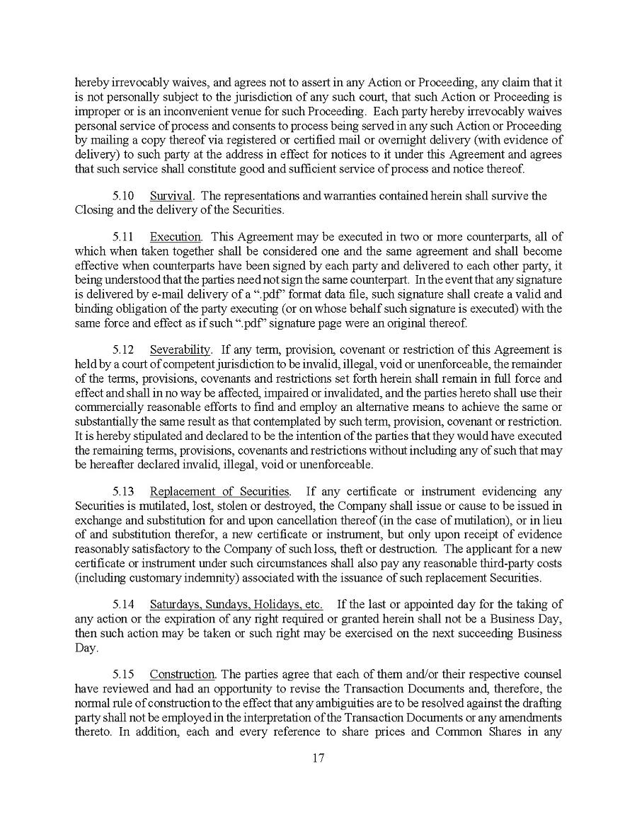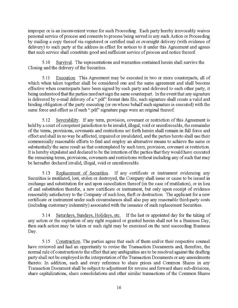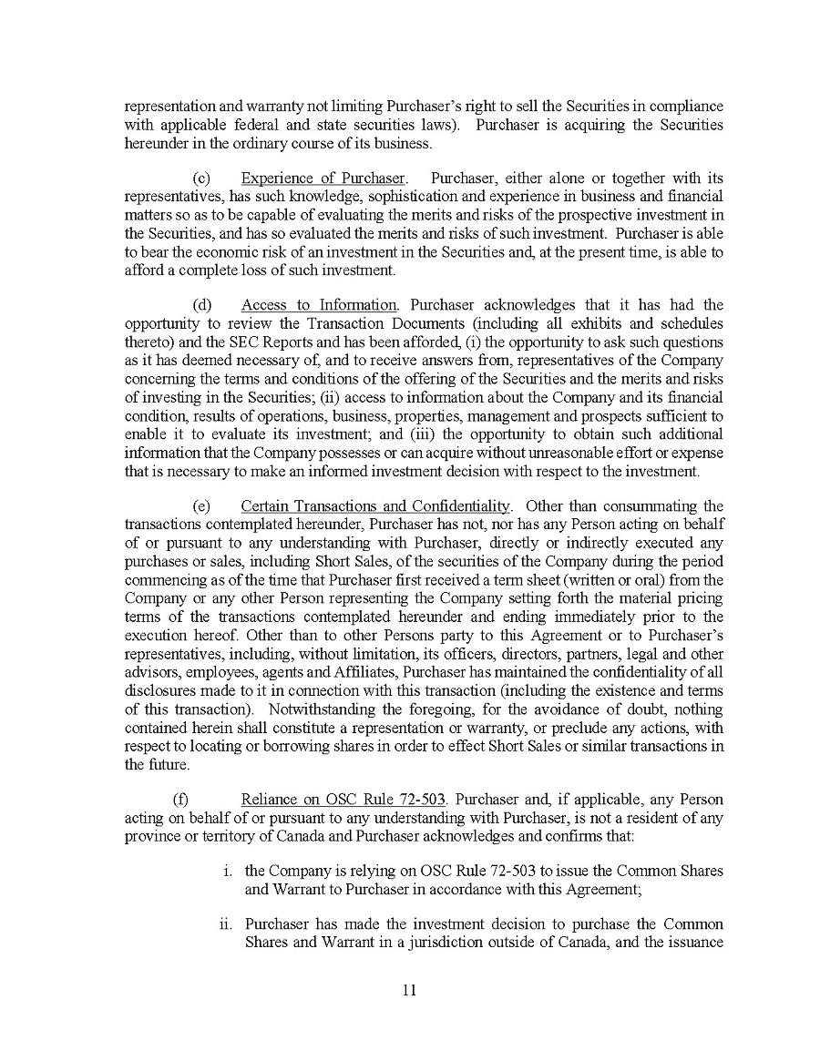 This Annual Report on Form 20-F and other publicly available documents, including the documents incorporated herein and therein by reference contain forward- looking statements and information within the meaning of U.S. and Canadian securities laws. Forward-looking statements and information can generally be identified by the use of forward- looking terminology or words, such as, “continues”, “with a view to”, “is designed to”, “pending”, “predict”, “potential”, “plans”, “expects”, “anticipates”, “believes”, “intends”, “estimates”, “projects”, and similar expressions or variations thereon, or statements that events, conditions or results “can”, “might”, “will”, “shall”, “may”, “must”, “would”, “could”, or “should” occur or be achieved and similar expressions in connection with any discussion, expectation, or projection of future operating or financial performance, events or trends. Forward- looking statements and information are based on management’s current expectations and assumptions, which are inherently subject to uncertainties, risks and changes in circumstances that are difficult to predict.