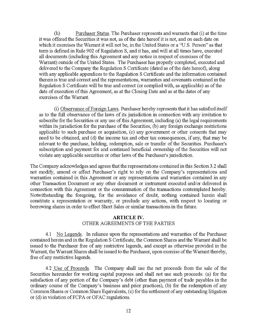 1. The Annual Report on Form 20-F for the year ended December 31, 2024 (the “Report”) of the Company fully complies with the requirements of Section 13(a) or 15(d) of the Securities Exchange Act of 1934; and