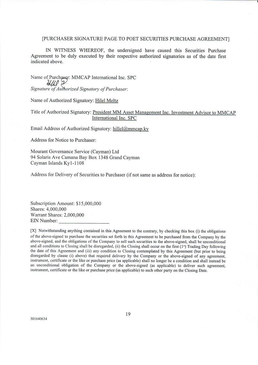 | Common Shares, no par value | POET | Nasdaq Capital Market |