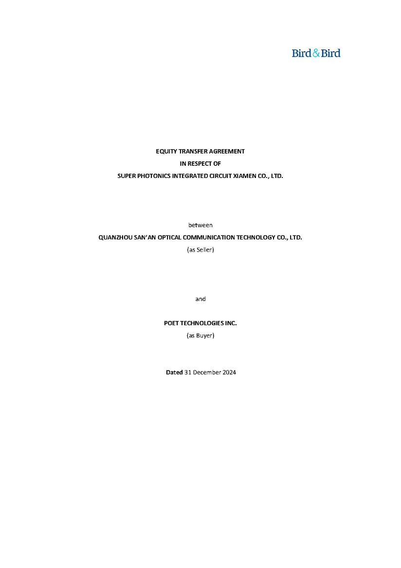 The Company is incorporated under the laws of the Province of Ontario. The Company’s shares trade under the symbol “POET” on the Nasdaq in the U.S and under the symbol “PTK” on the TSX Venture Exchange in Canada.