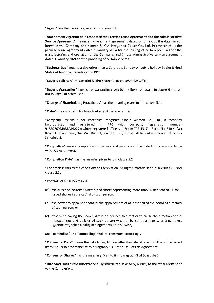 In order to take control of Super Photonics Xiamen Co. Ltd (“SPX”), the Company incurred a non-cash loss of $6,852,687 relating to its acquisition of the shares held by Quanzhou Sanan Optical Communication Technology Co., Ltd, an affiliate of of Sanan Optoelectronics Xiamen Co. Ltd (collectively “SAIC”).