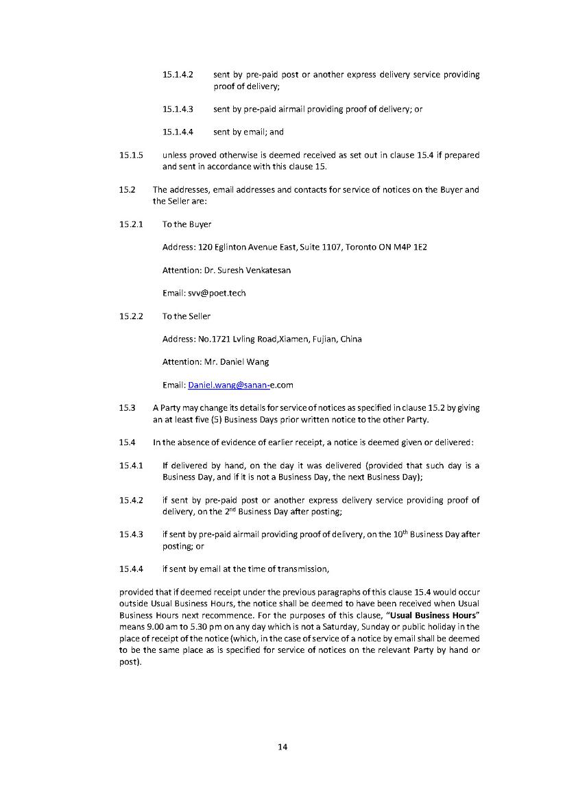 ☐ Yes No ☒ POET Technologies Inc. is organized under the Business Corporations Act (Ontario). In this Annual Report, the “Company”, “we”, “our”, “POET” and “us” refer to POET Technologies Inc. and its subsidiaries (unless the context otherwise requires). We refer you to the documents attached as exhibits hereto for more complete information than may be contained in this Annual Report. Our principal Canadian corporate offices are located at Suite 1107, 120 Eglinton Avenue East, Toronto, Ontario M4P 1E2, Canada. Our U.S office is located at 1605 N. Cedar Crest Boulevard, Allentown, PA, 18104. Our telephone number in Toronto is (416) 368-9411.