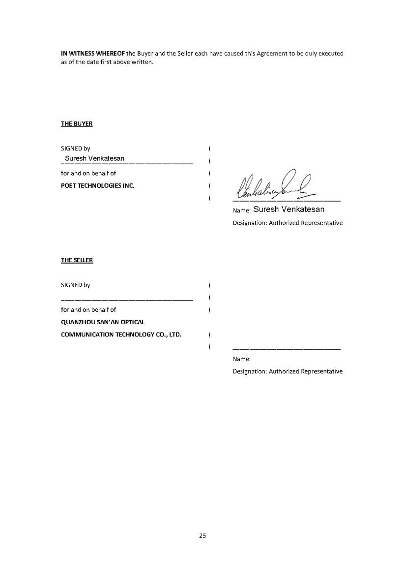 Pursuant to 18 U.S.C. Section 1350, as adopted pursuant to Section 906 of the Sarbanes-Oxley Act of 2002, I, Suresh Venkatesan, the Chief Executive Officer of POET Technologies Inc. (the “Company”), hereby certify, that, to my knowledge: