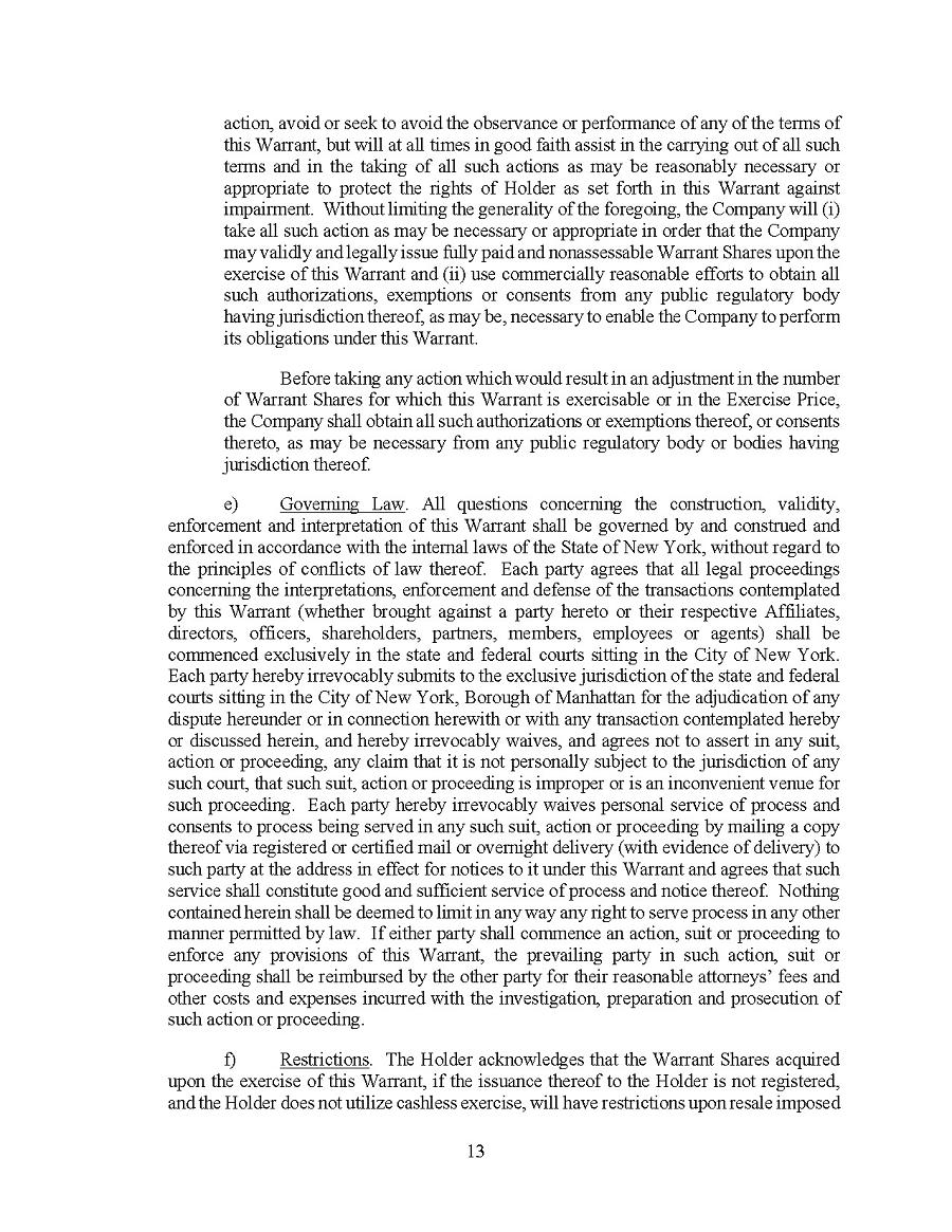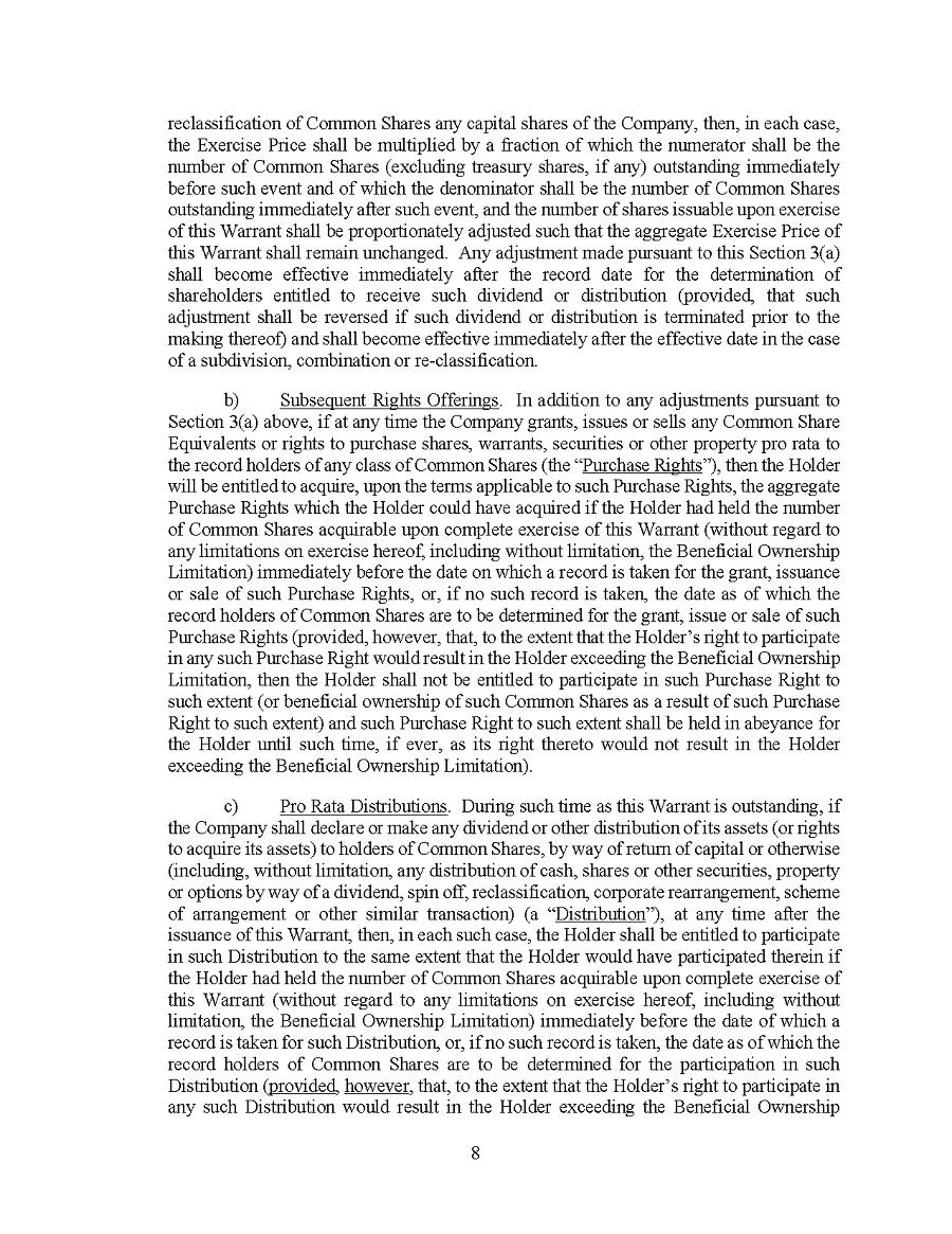 | ○ | the risk that shareholders’ interests will be diluted through future stock offerings, option and warrant exercises; and | |