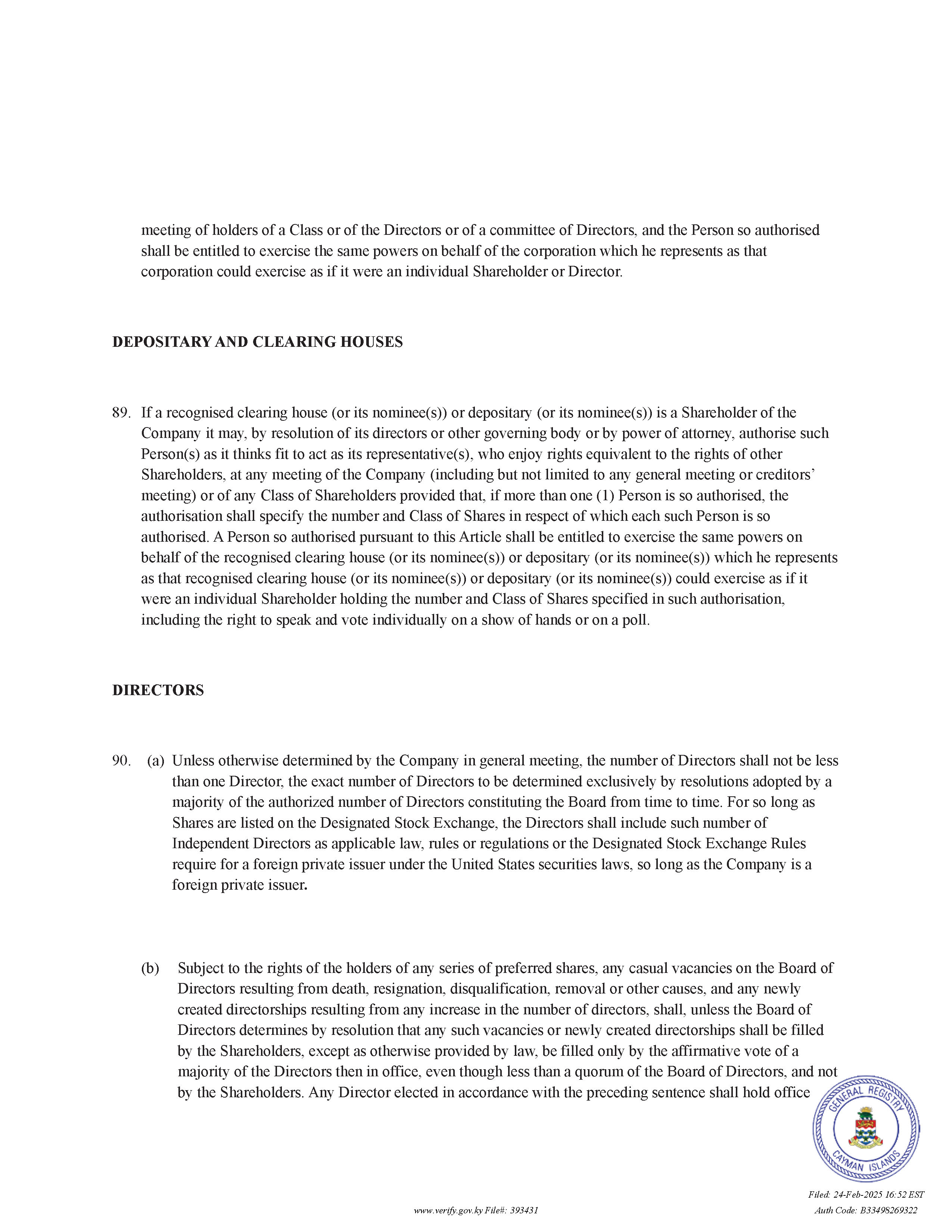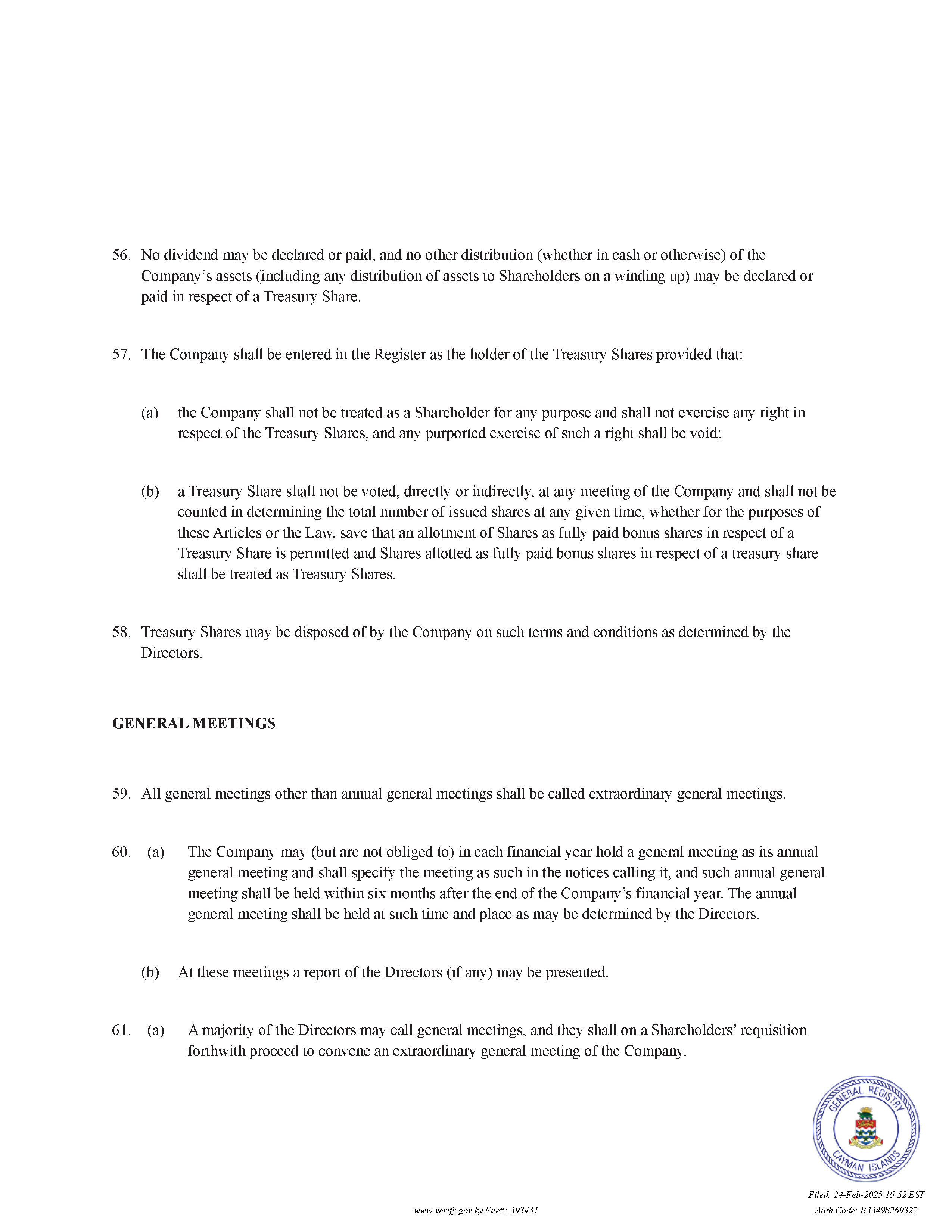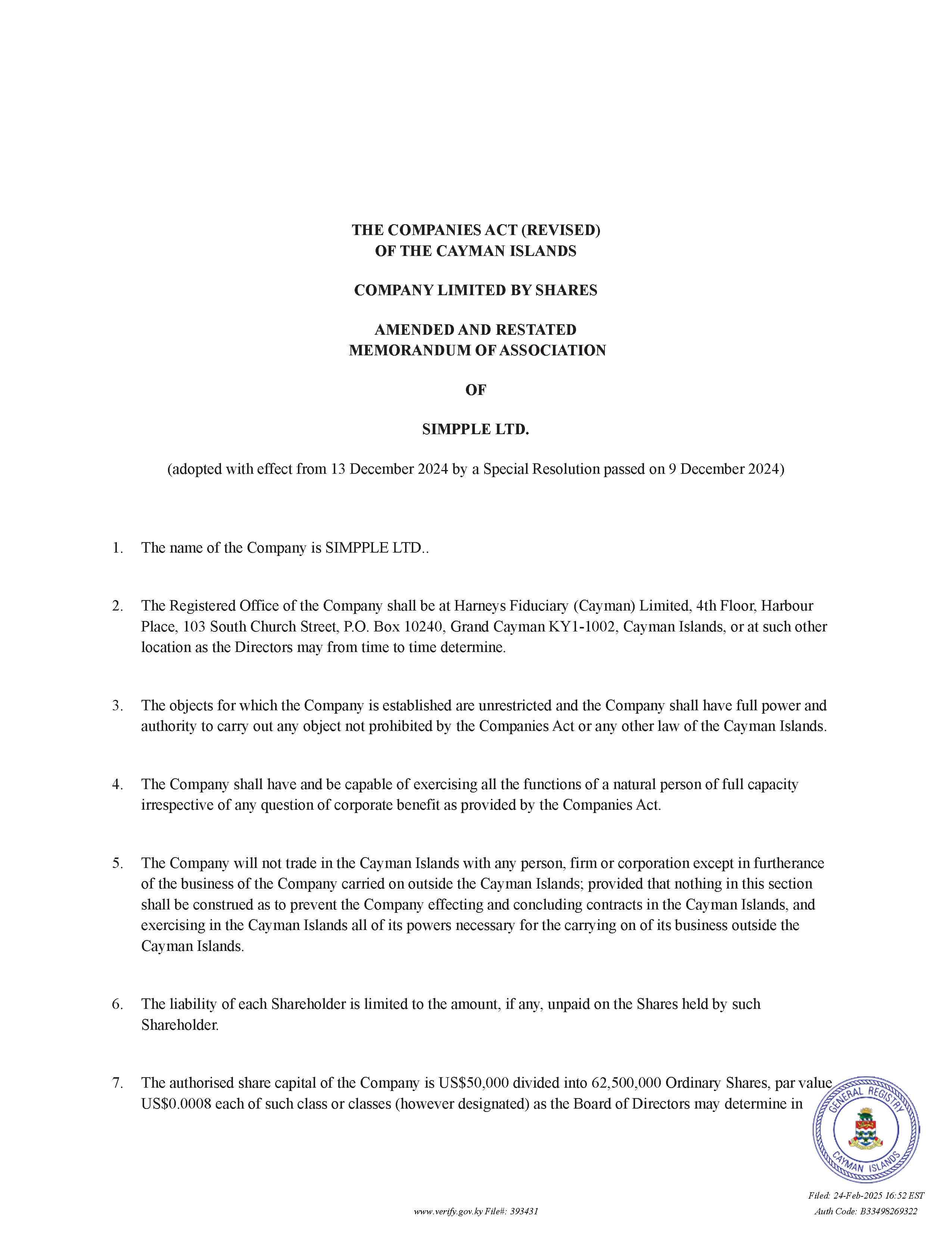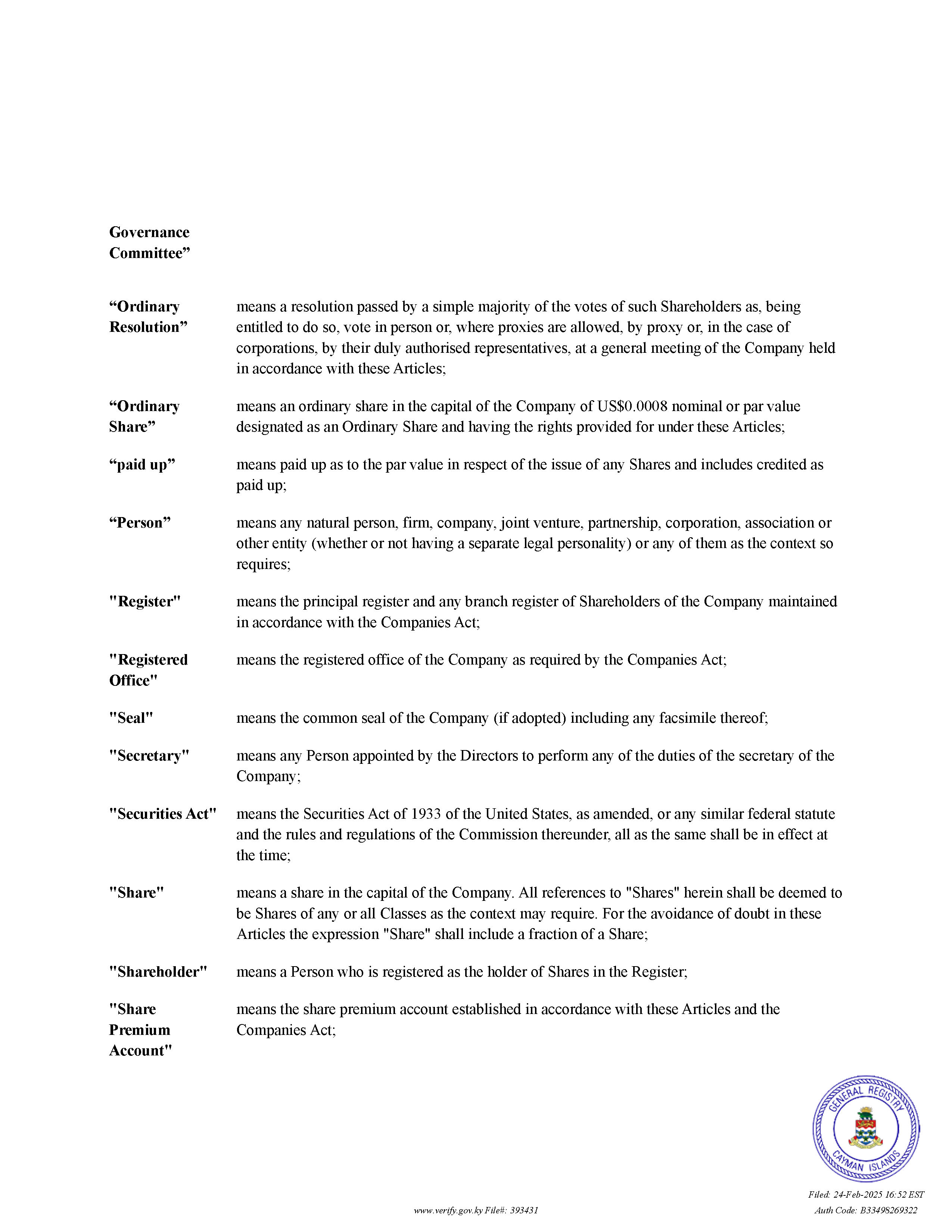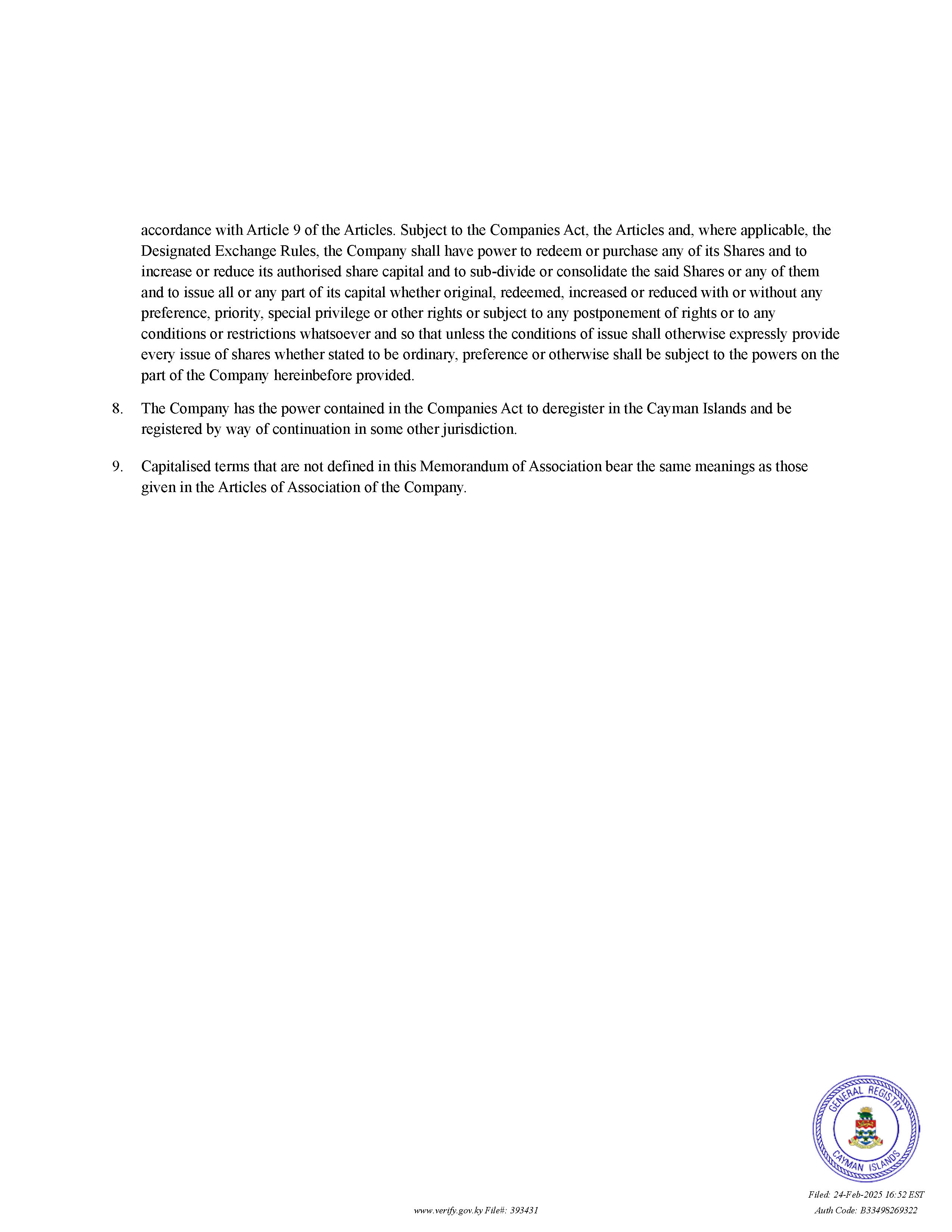 | 99.1 | Amended and Restated Memorandum of Association (effective 13 December 2024) |