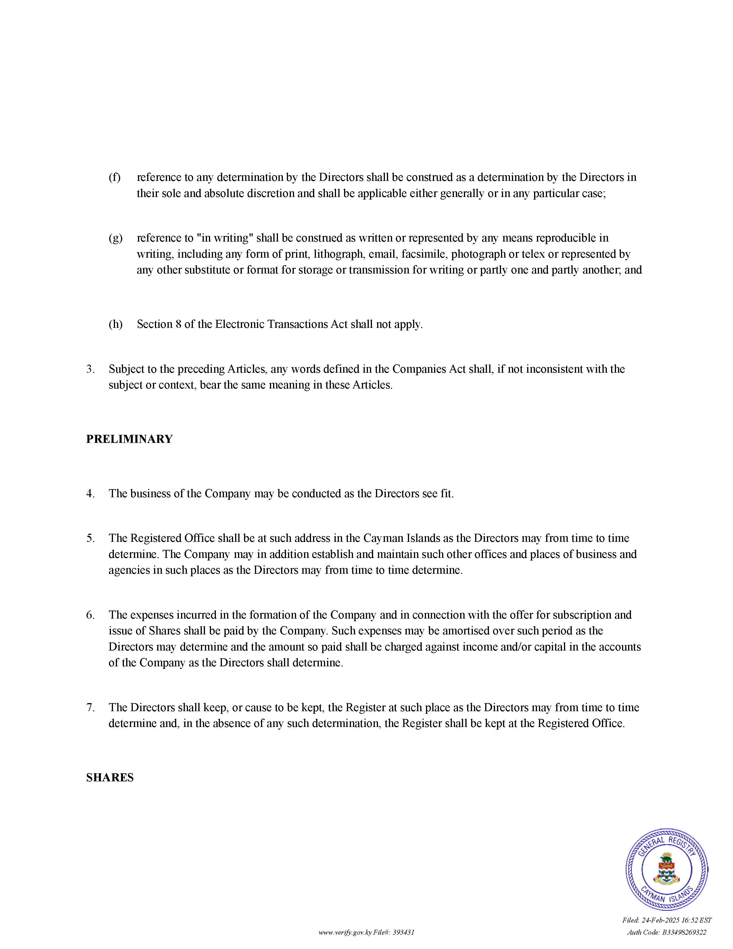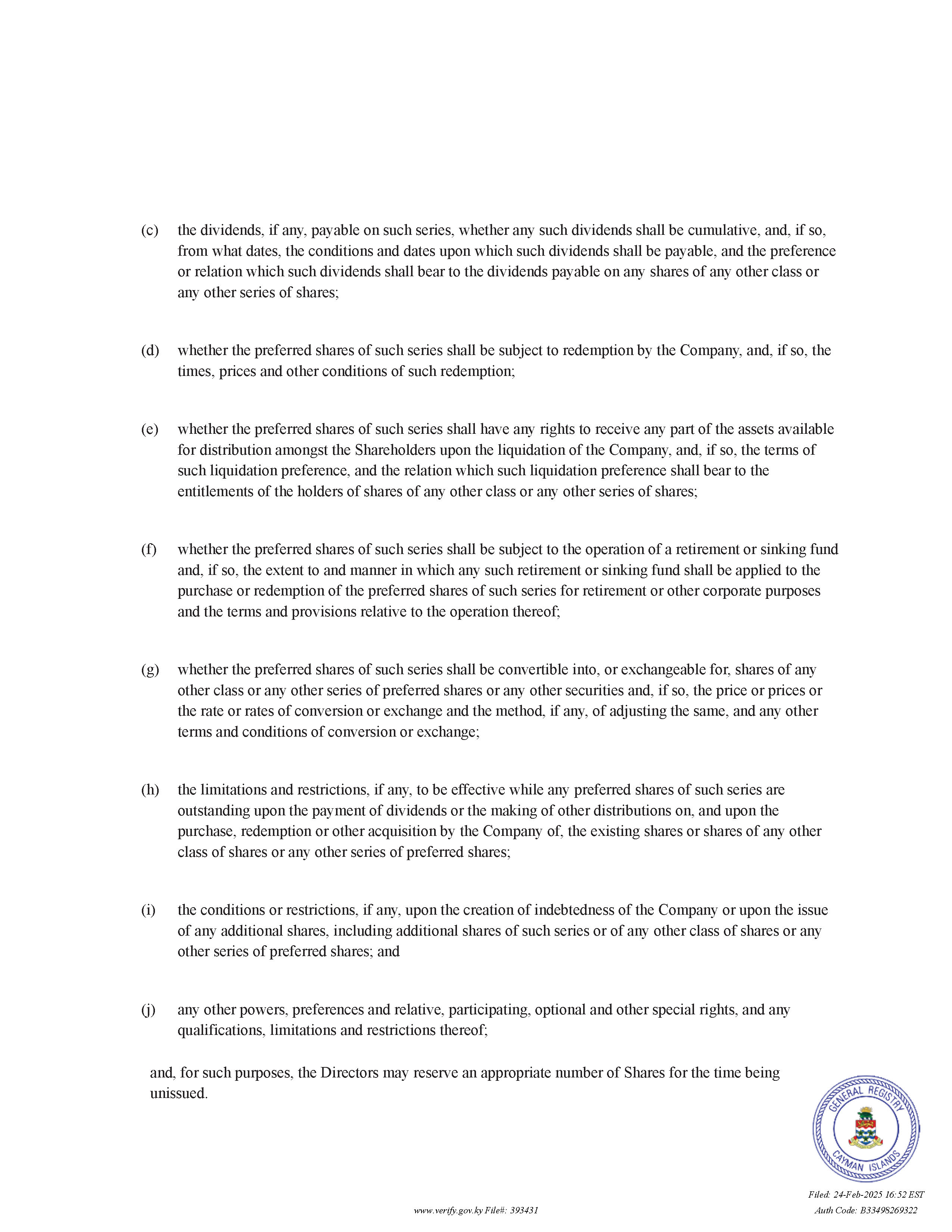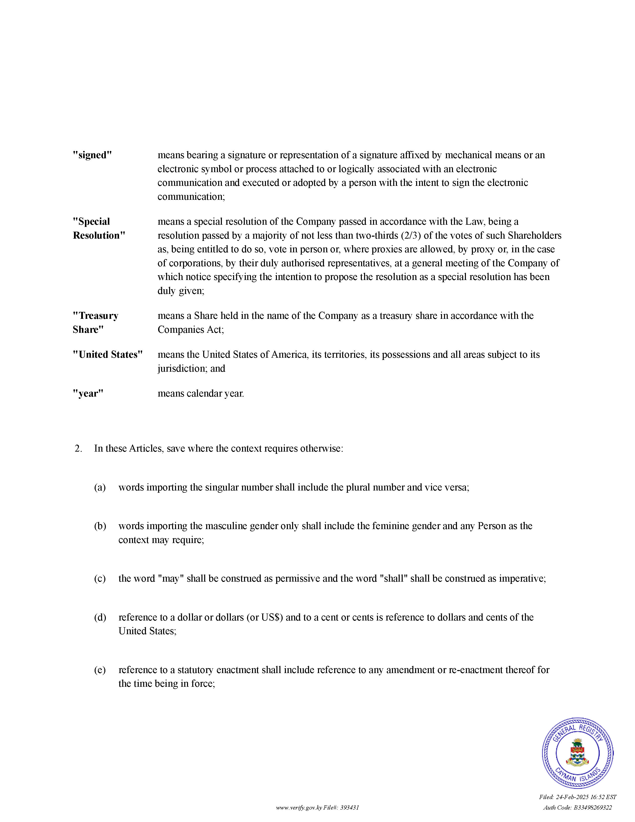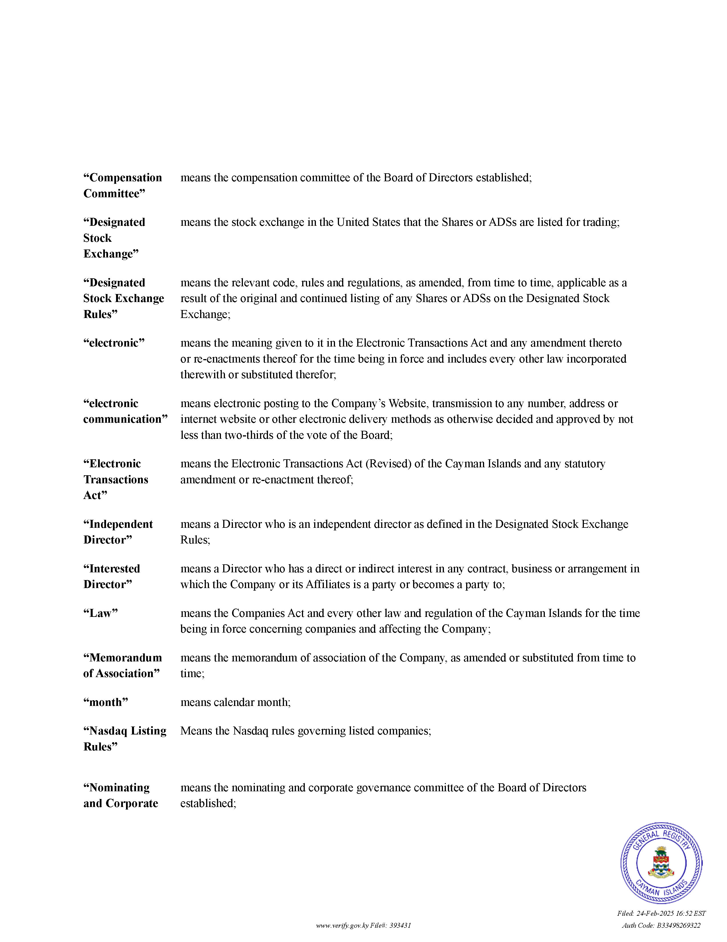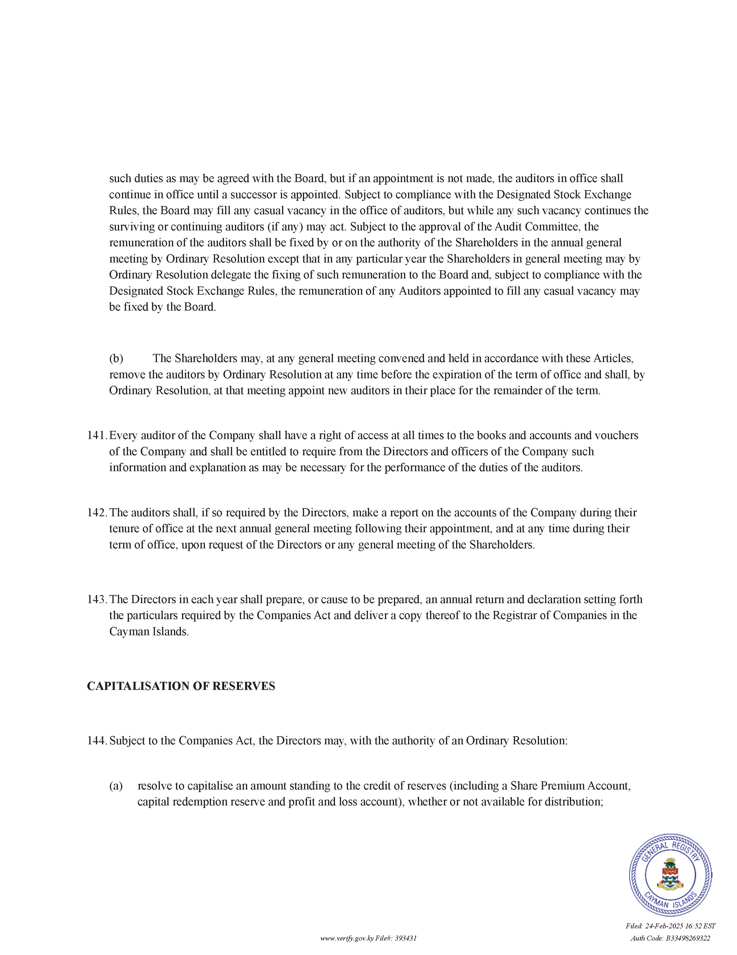 | 99.1 | Amended and Restated Memorandum of Association (effective 13 December 2024) |