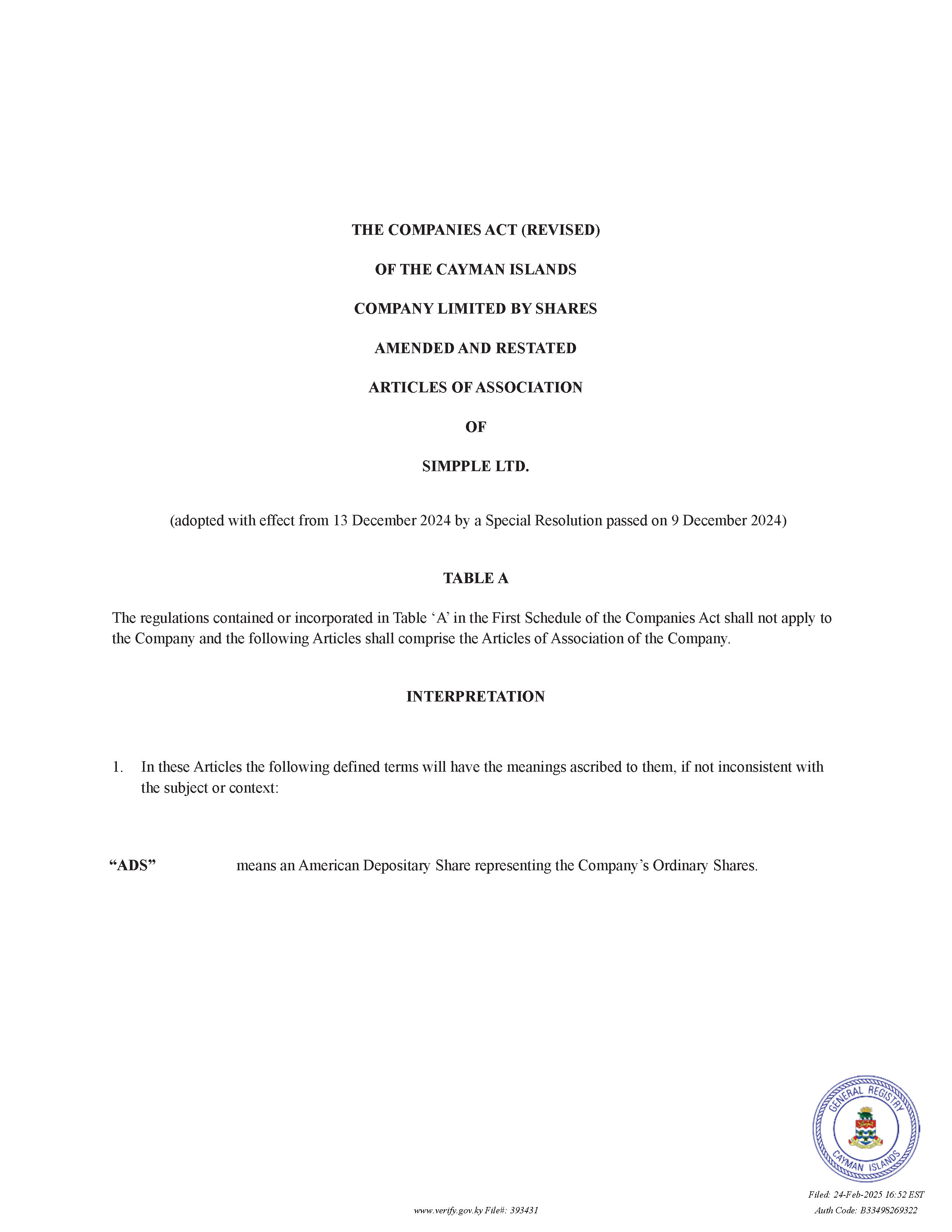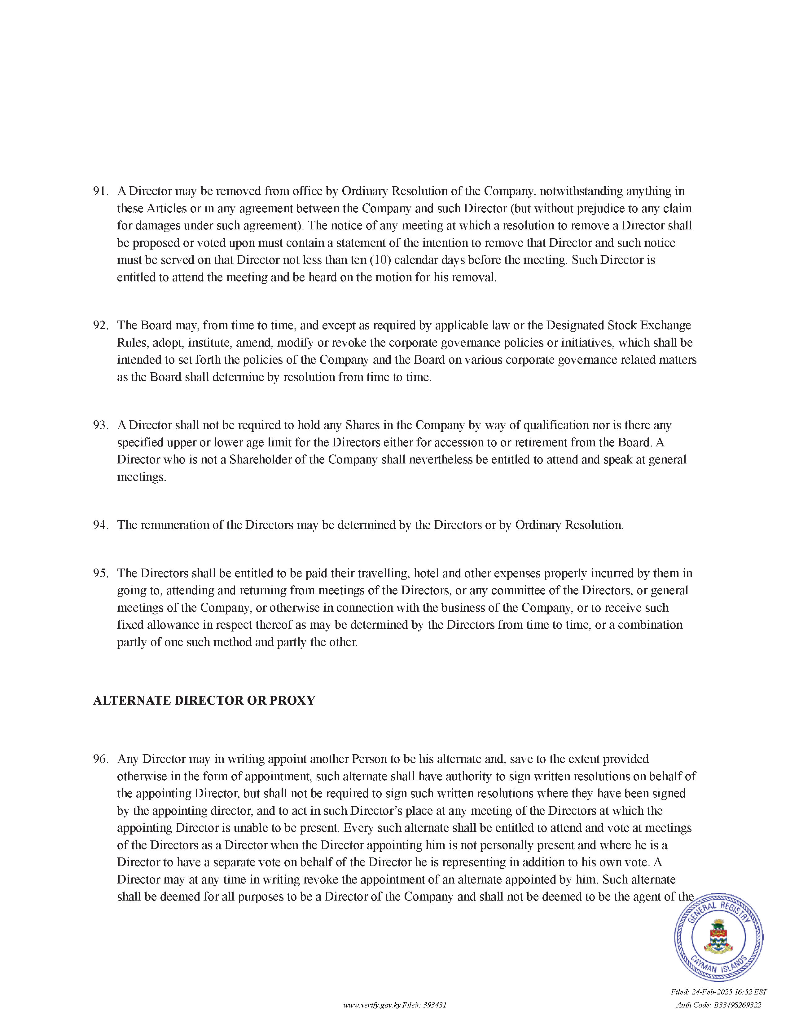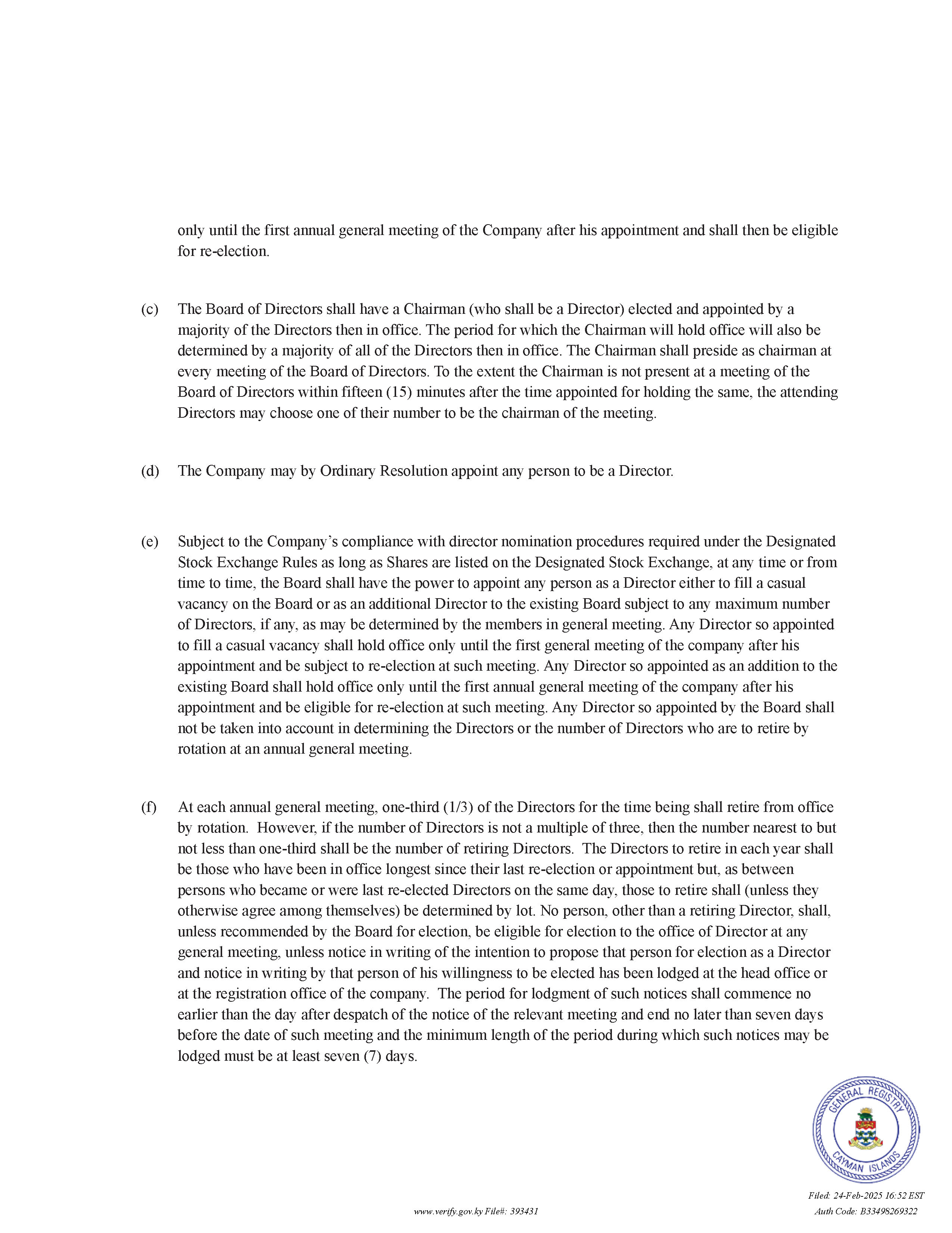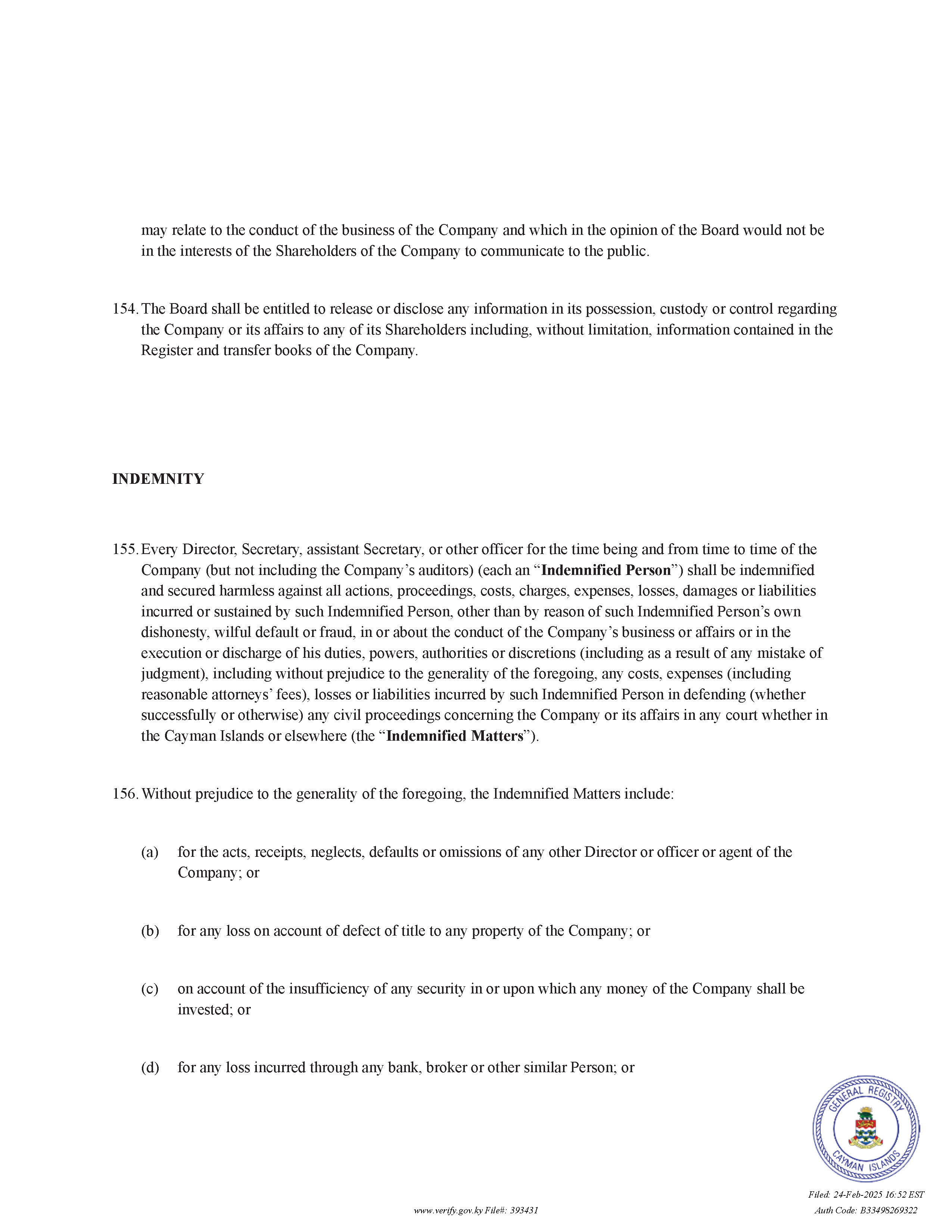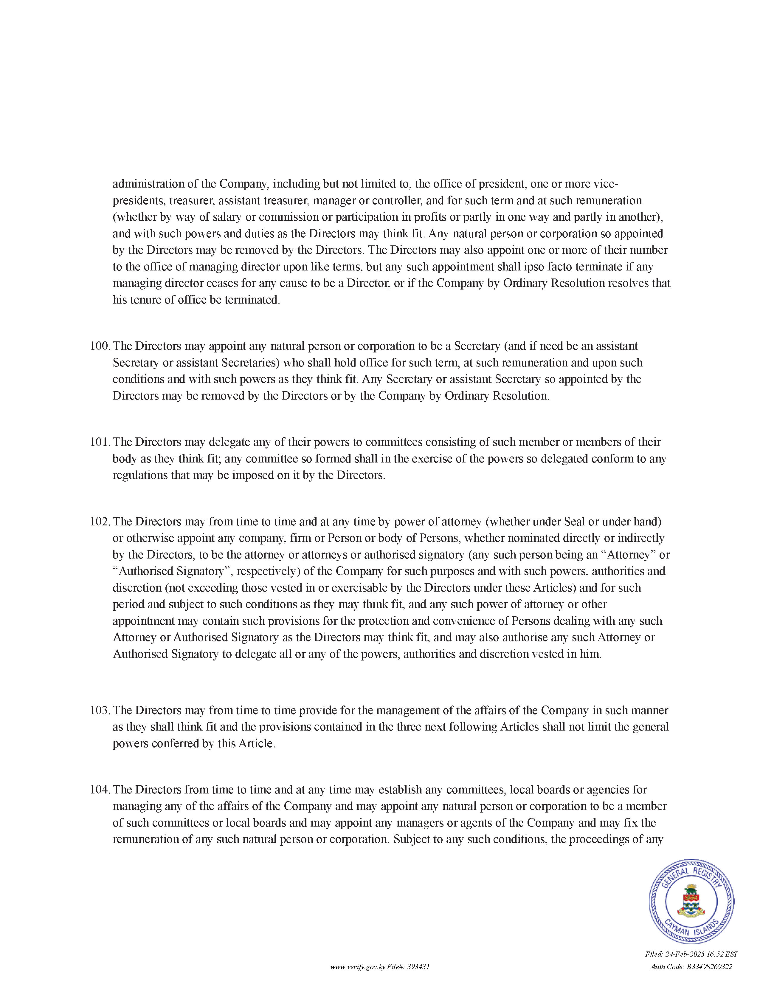| 99.1 | Amended and Restated Memorandum of Association (effective 13 December 2024) |