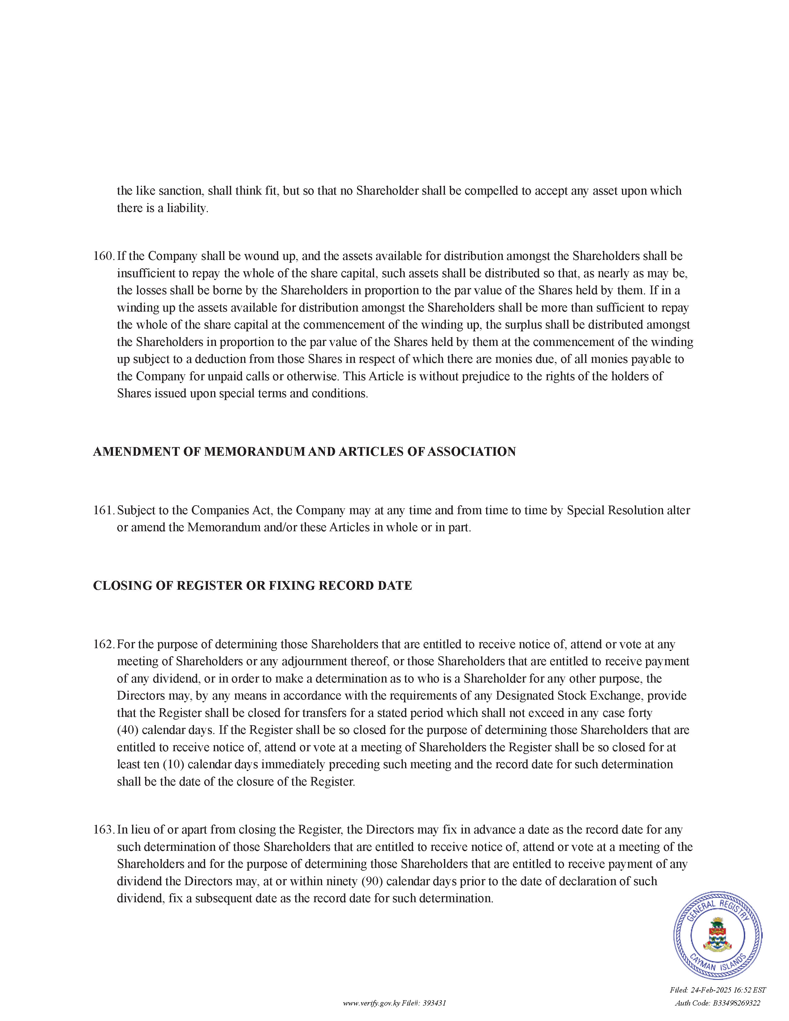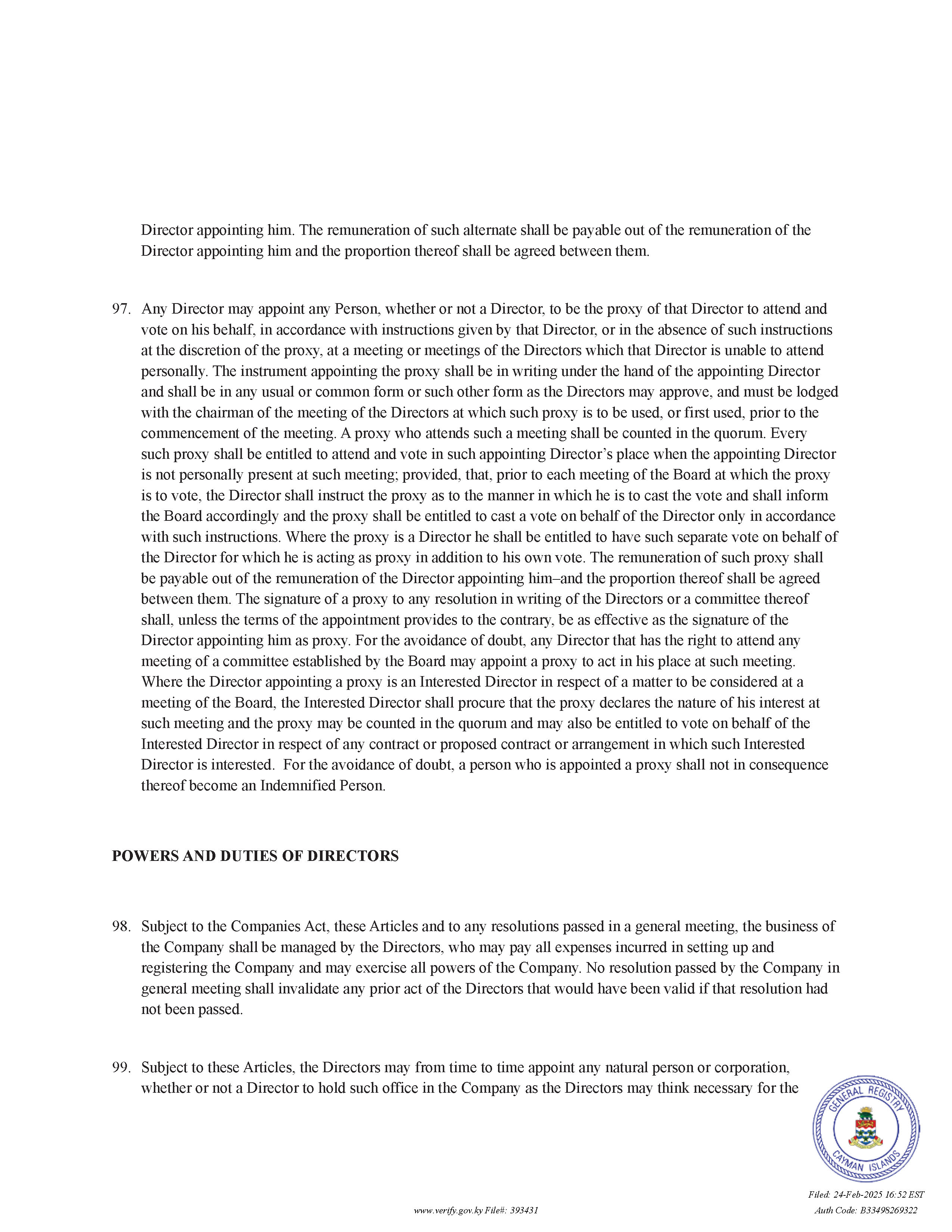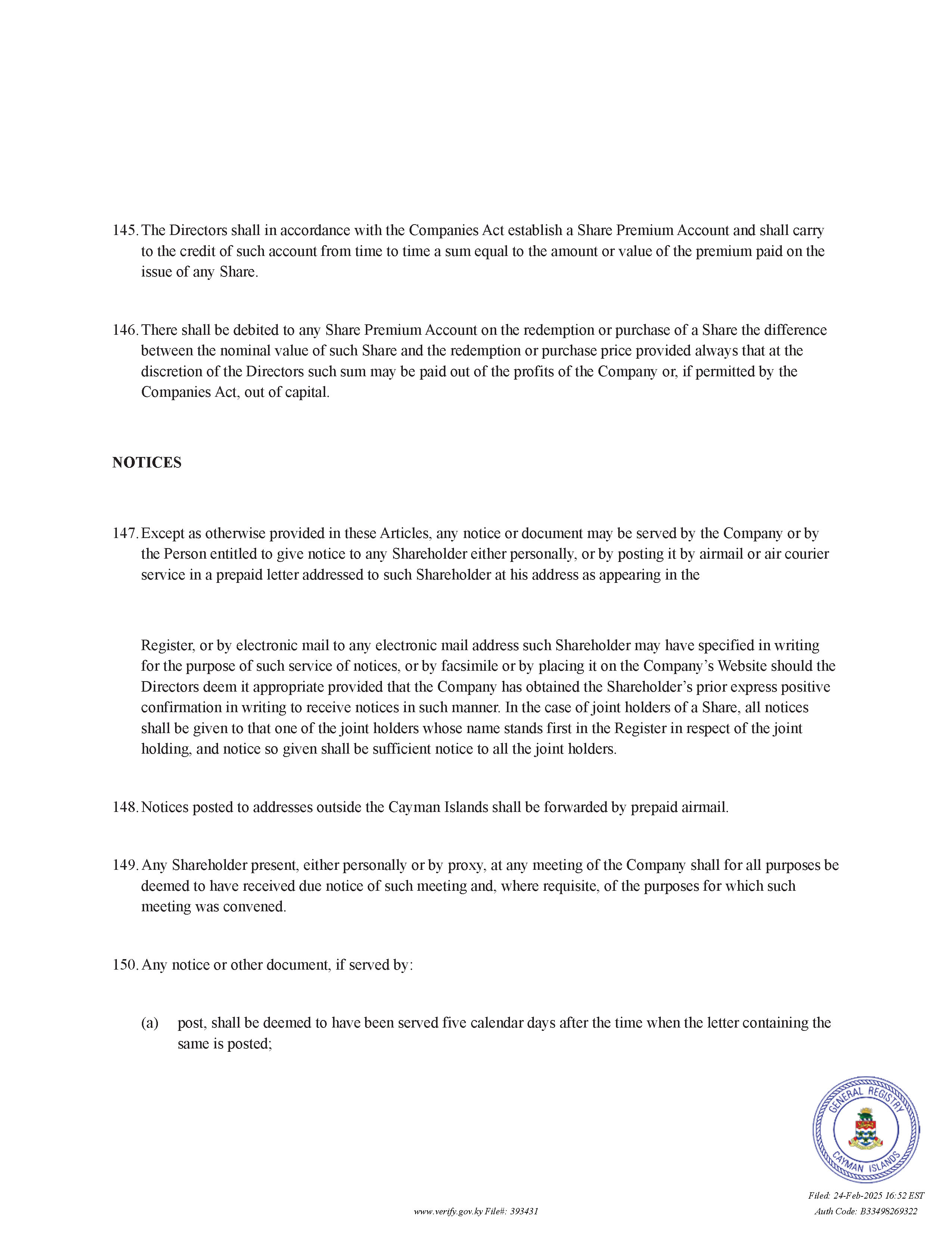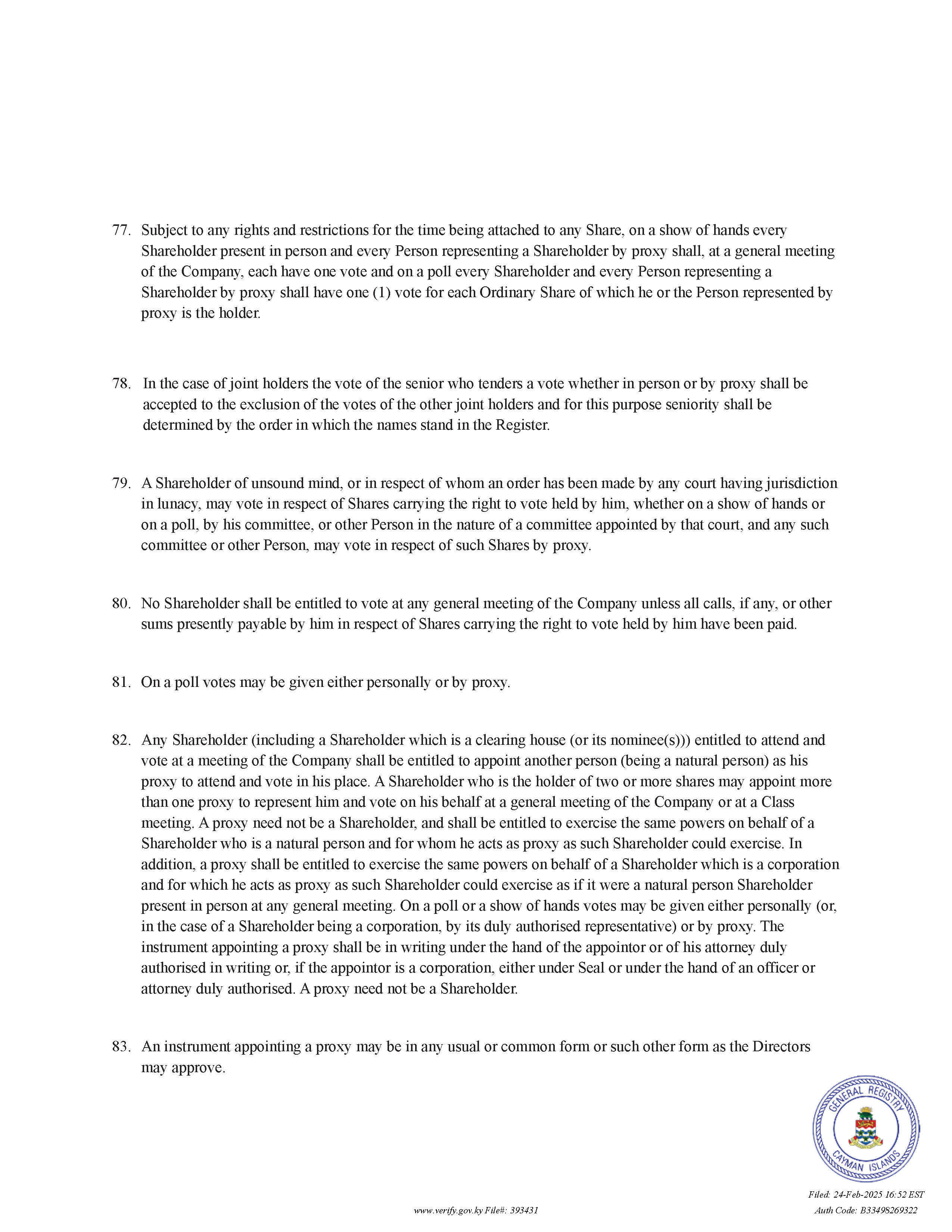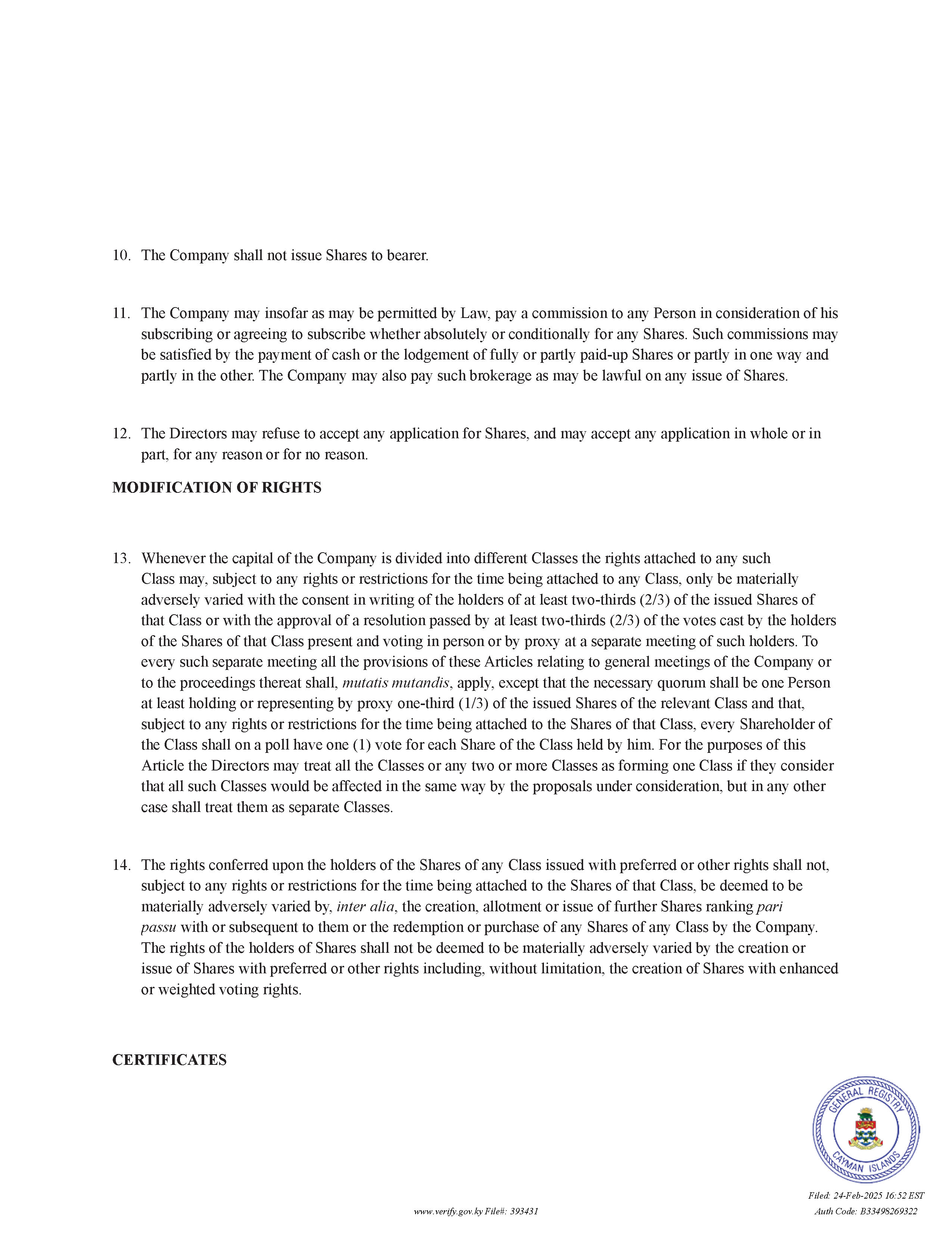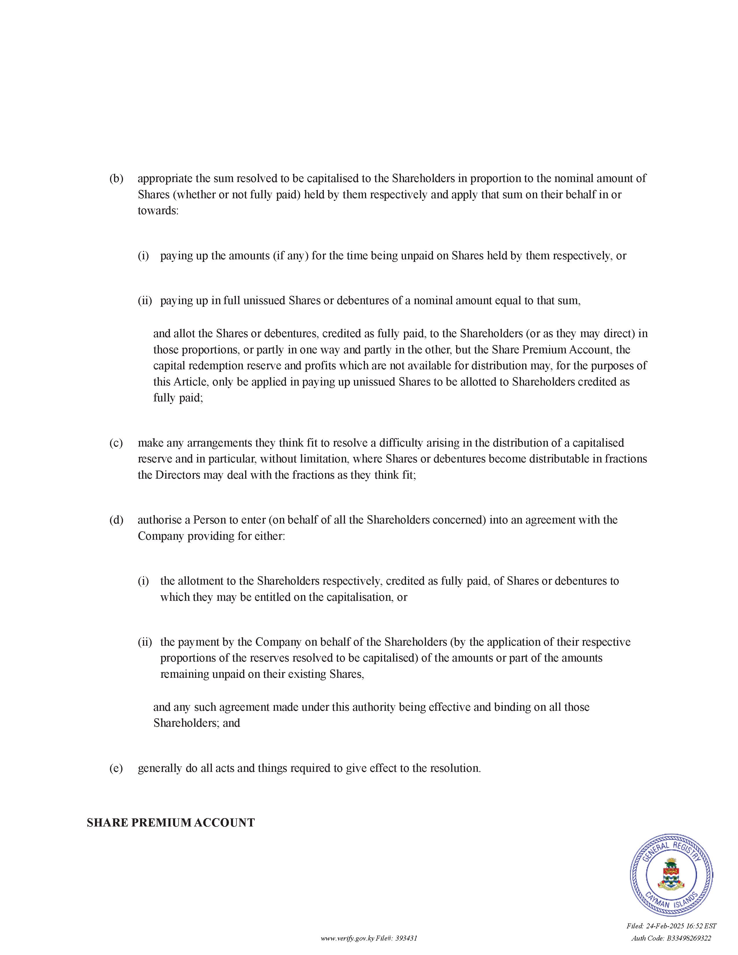 | 99.1 | Amended and Restated Memorandum of Association (effective 13 December 2024) |
