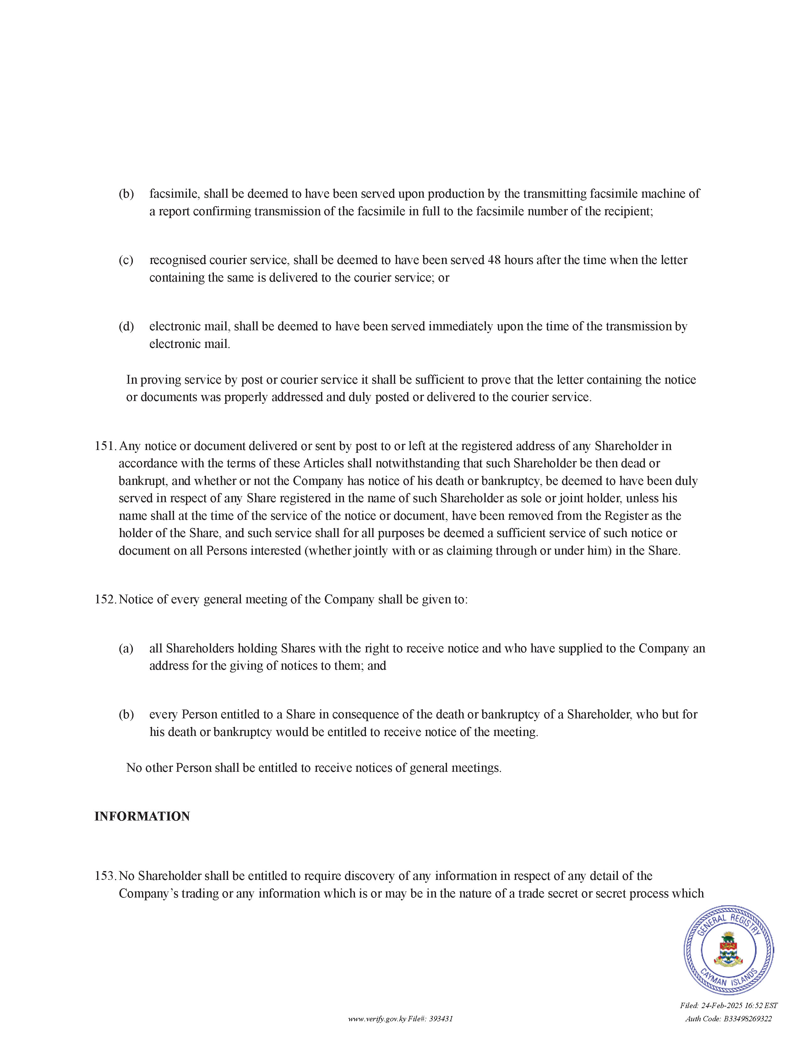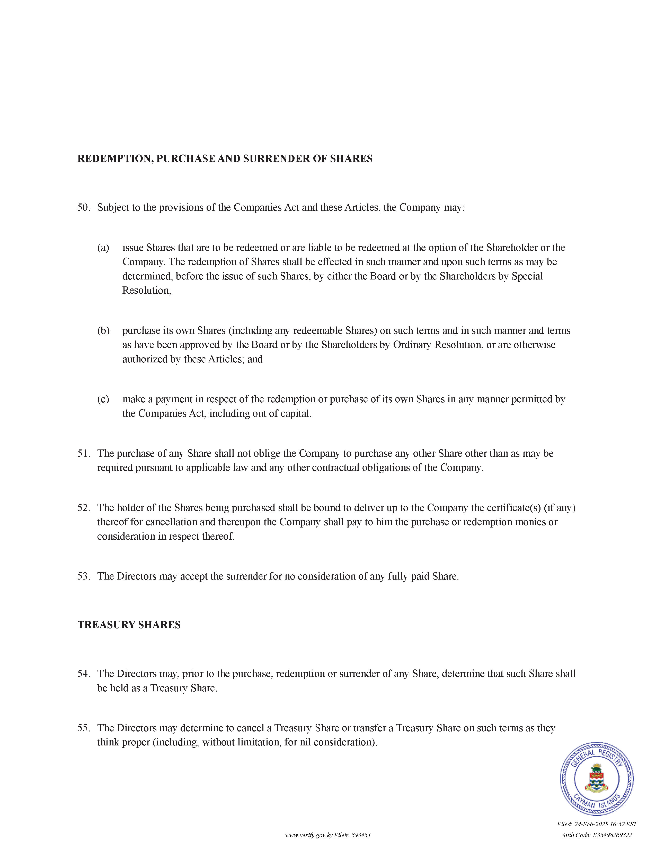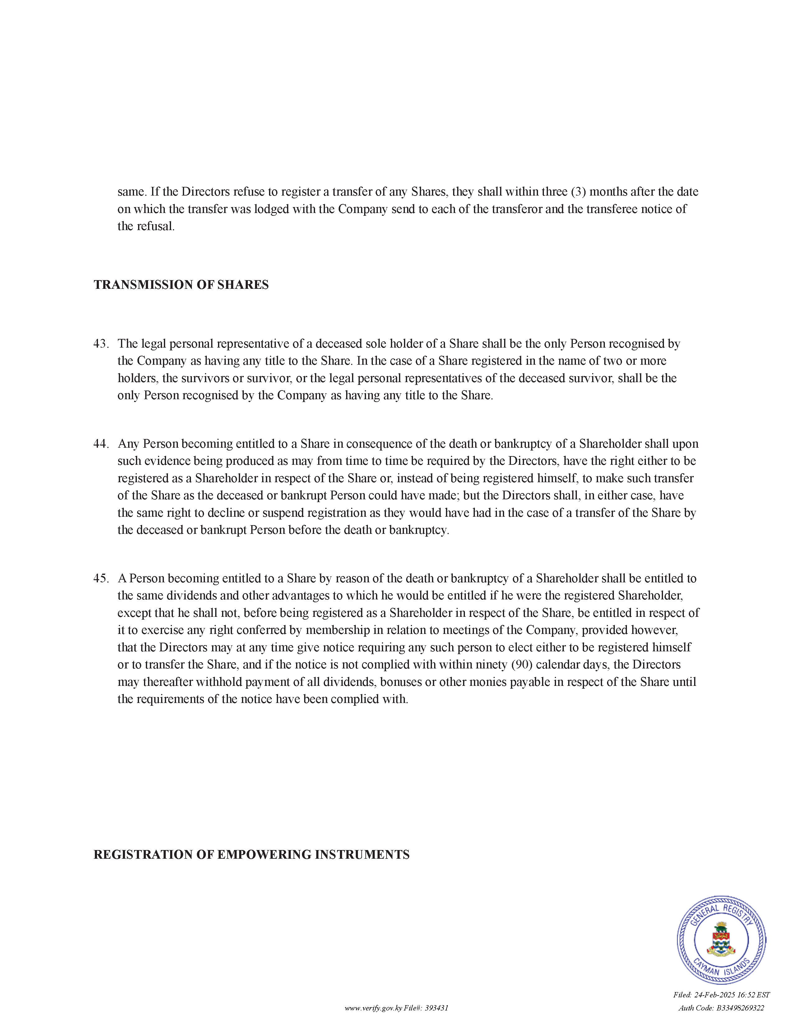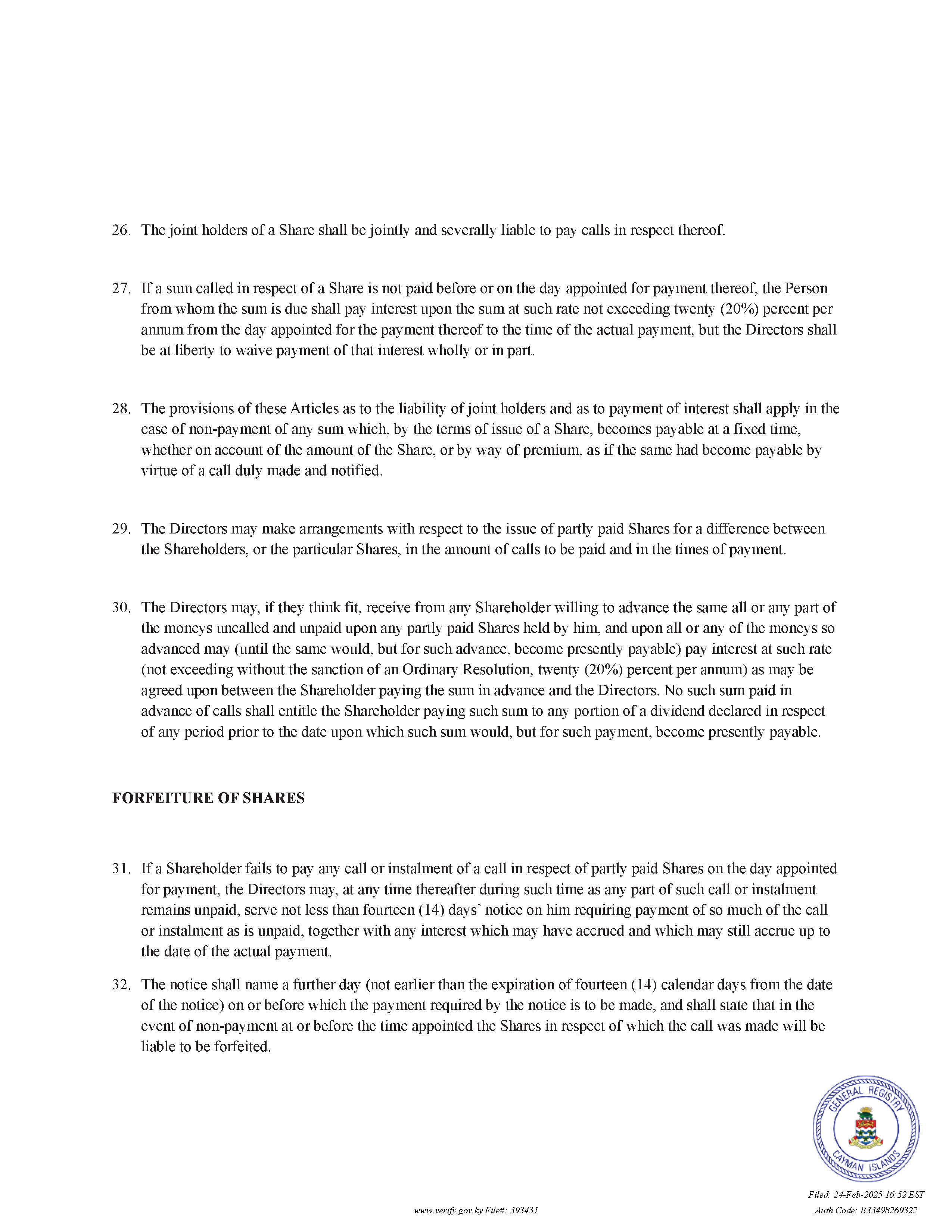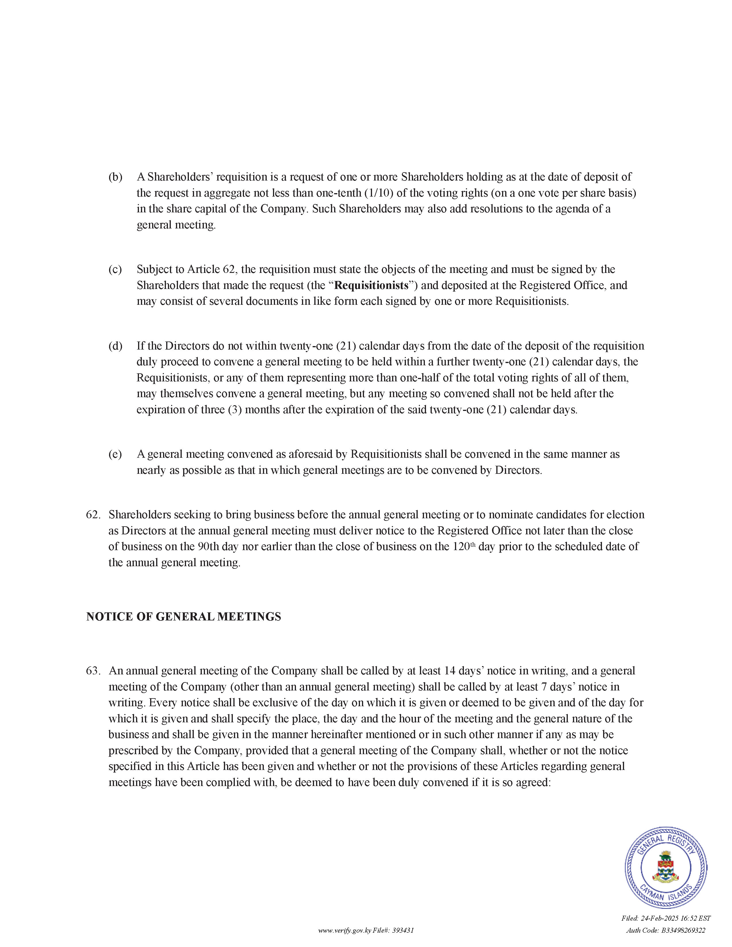 | 99.1 | Amended and Restated Memorandum of Association (effective 13 December 2024) |