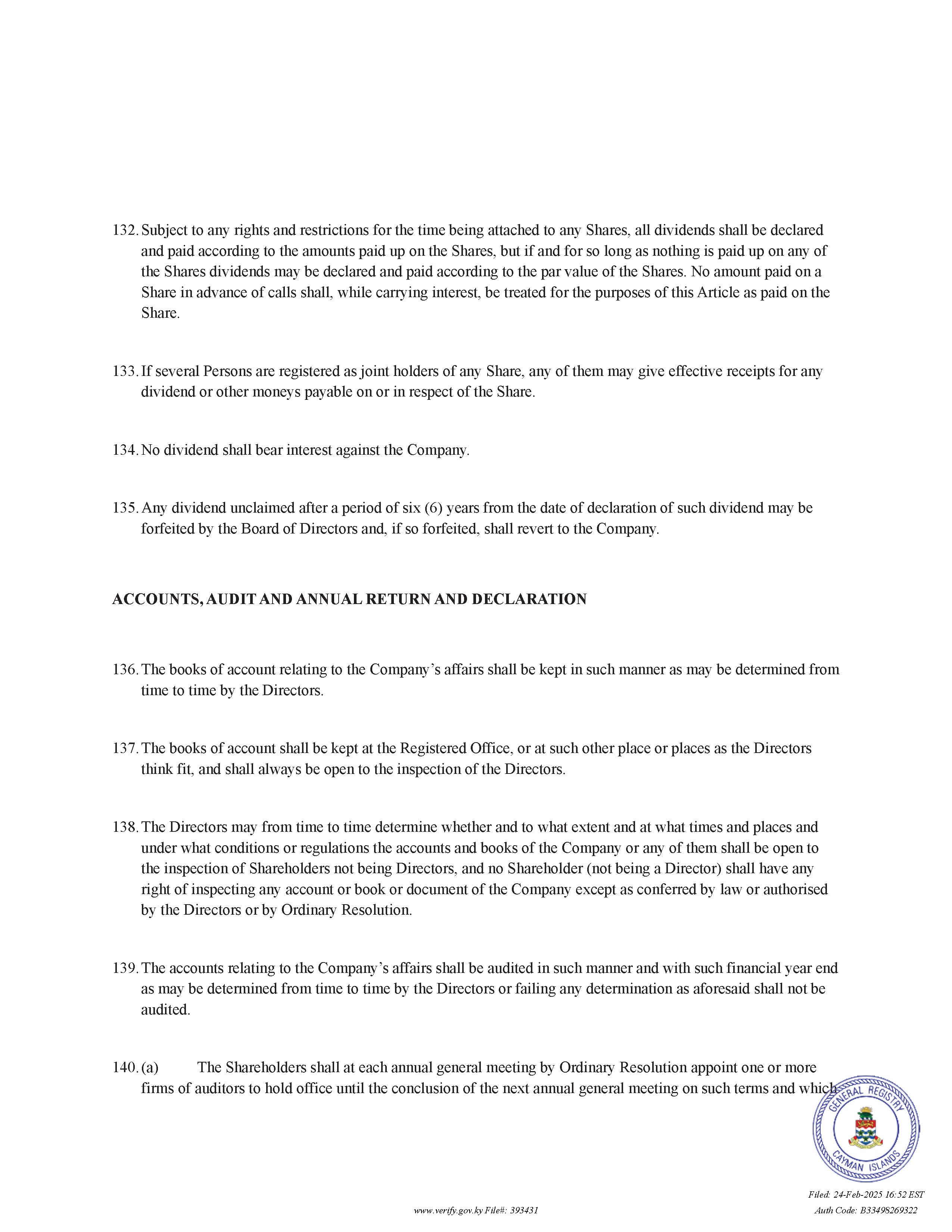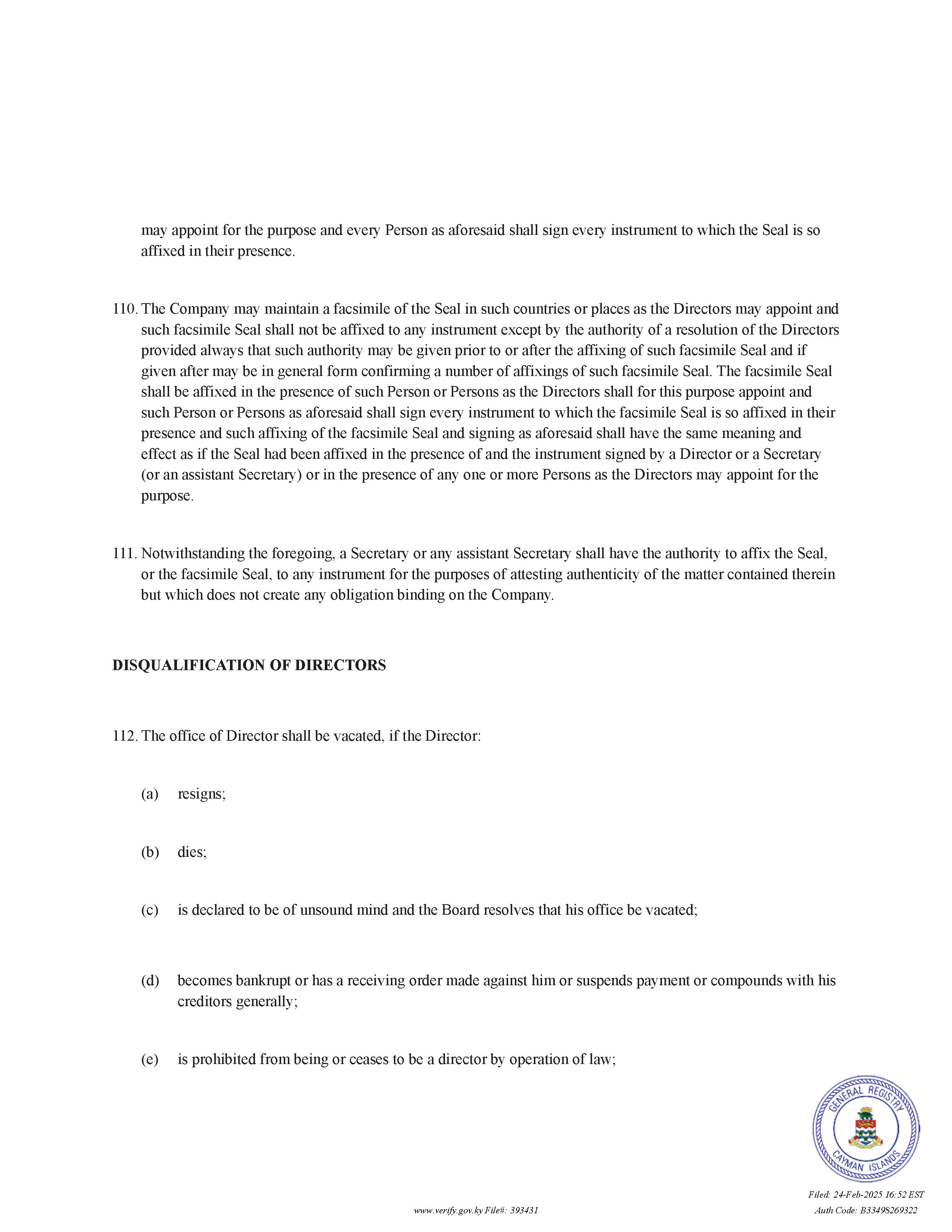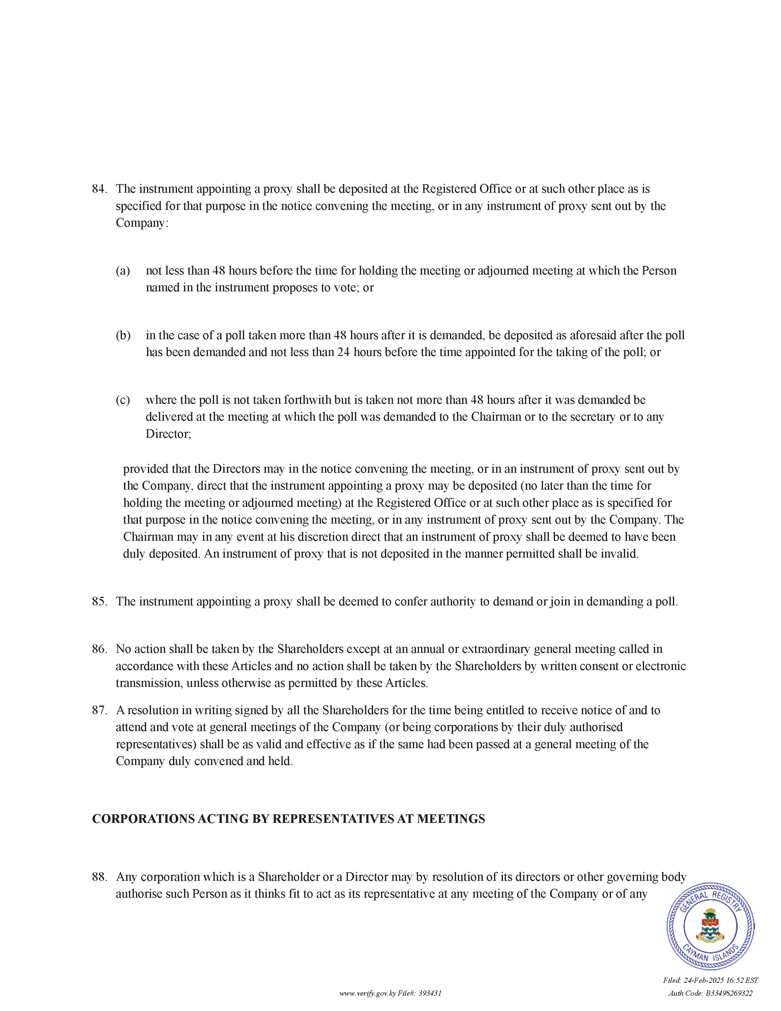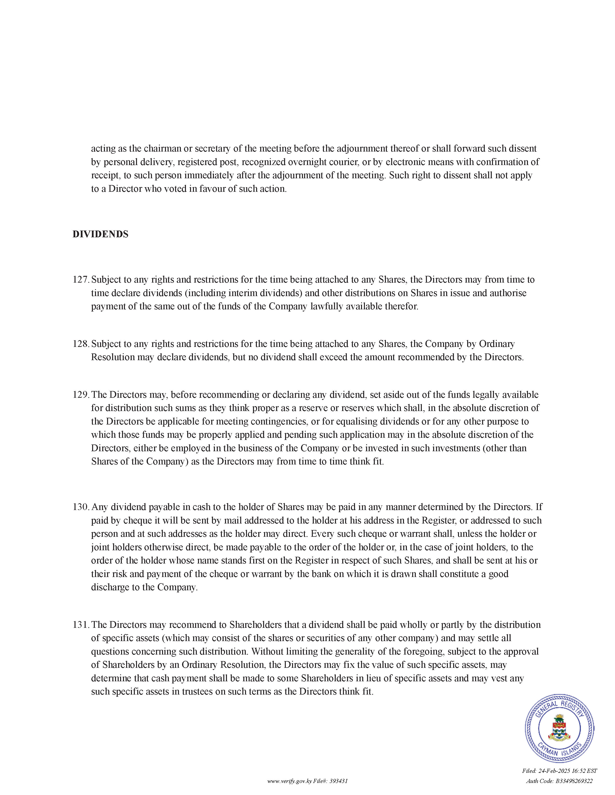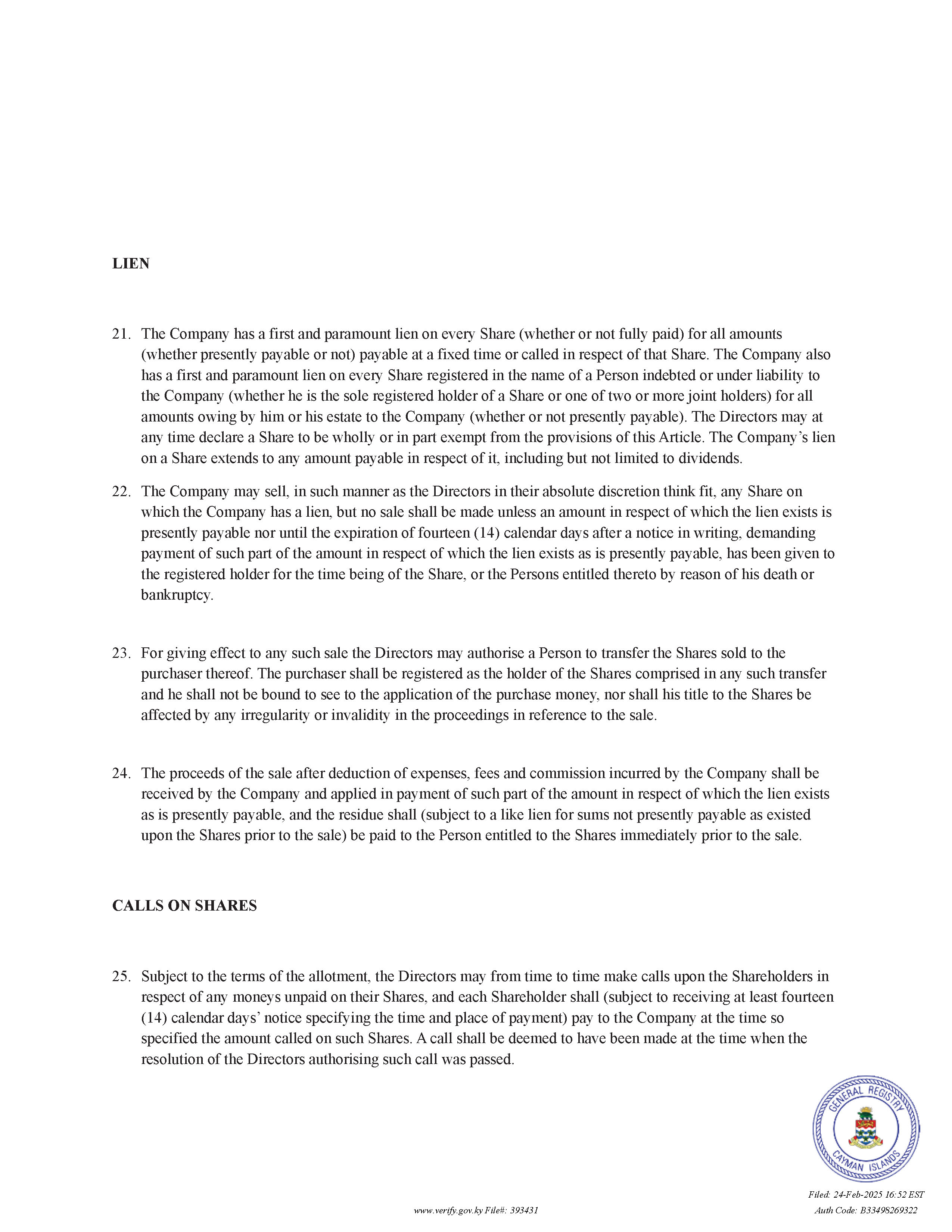 | 99.1 | Amended and Restated Memorandum of Association (effective 13 December 2024) |