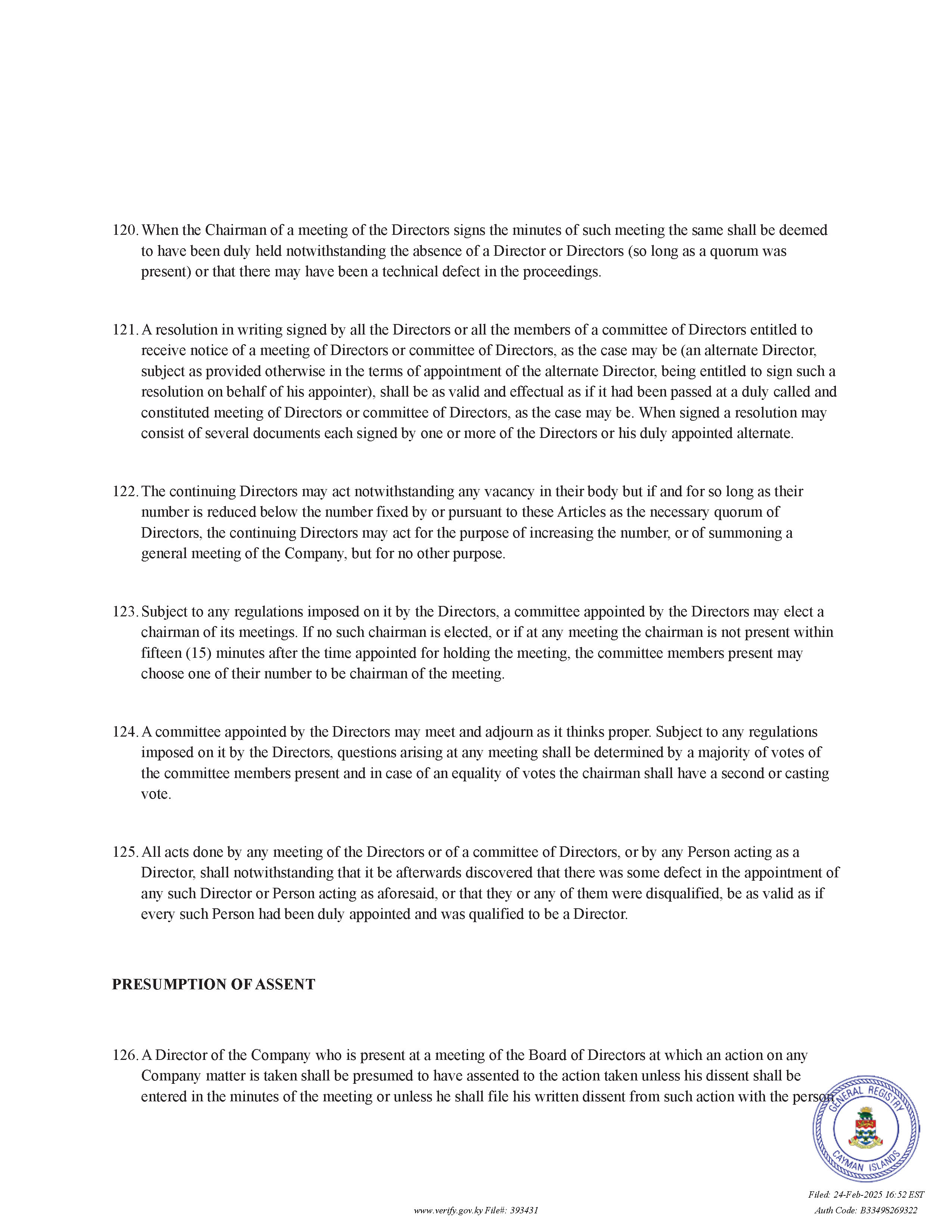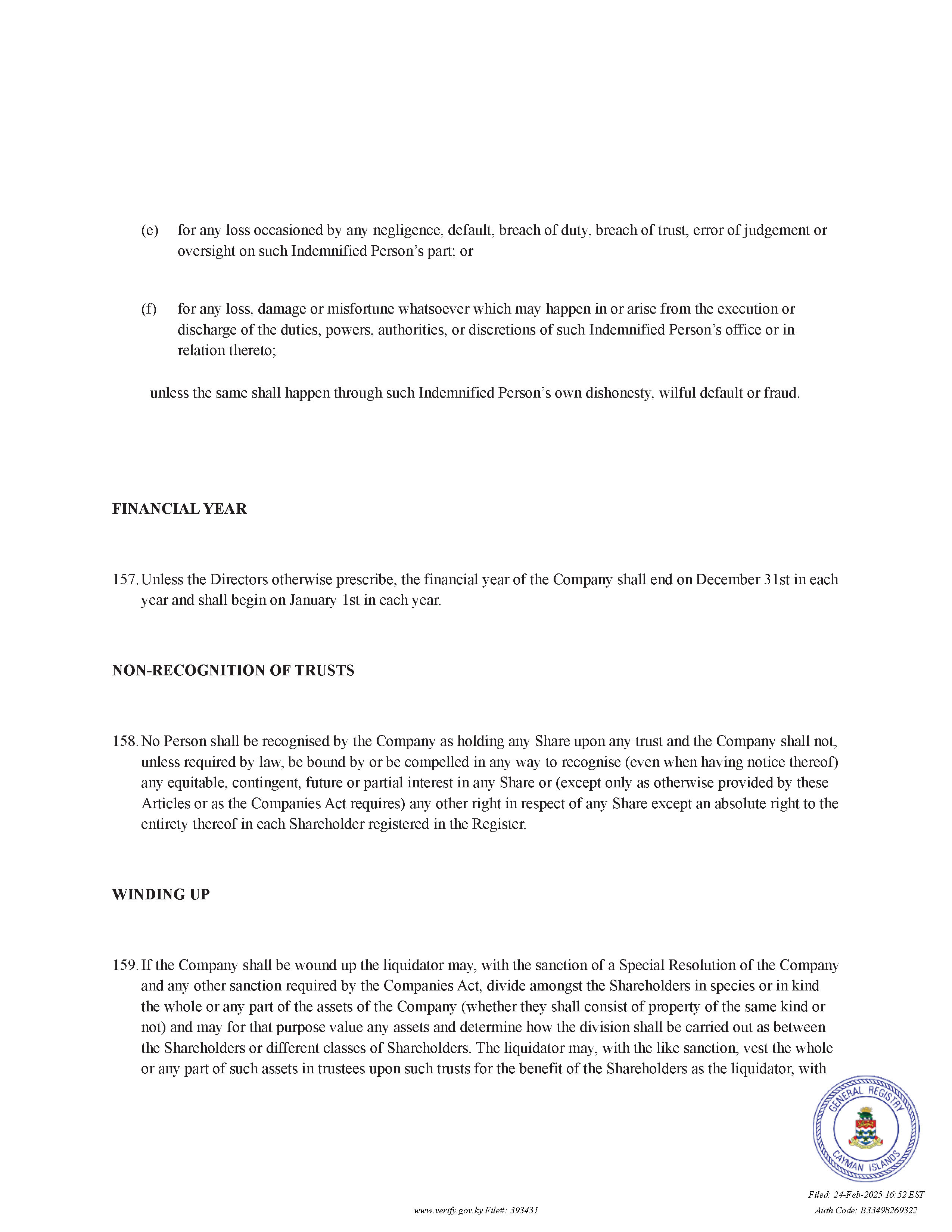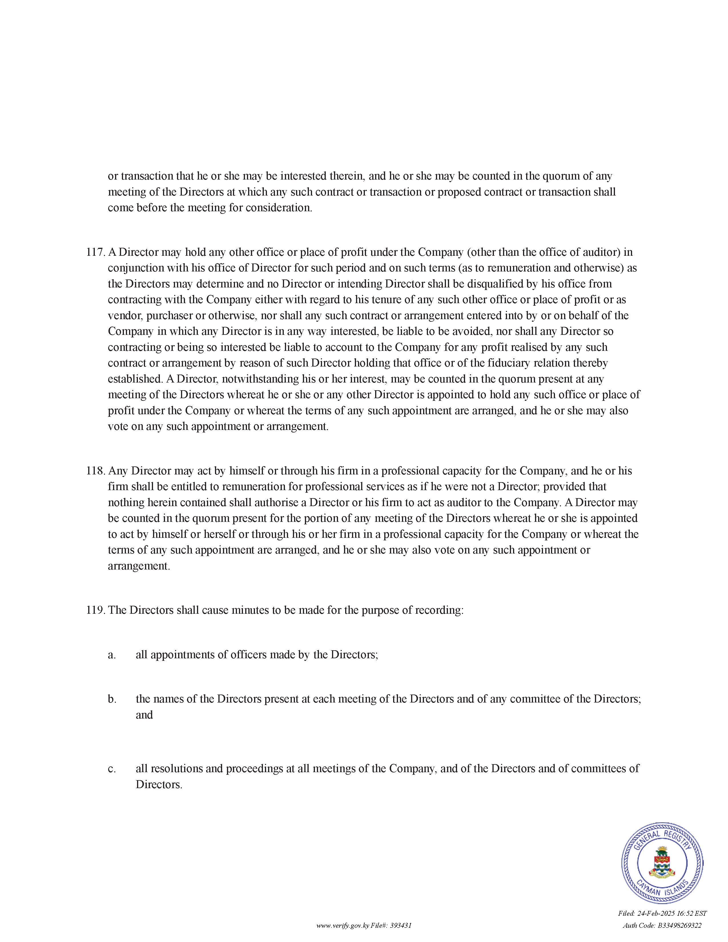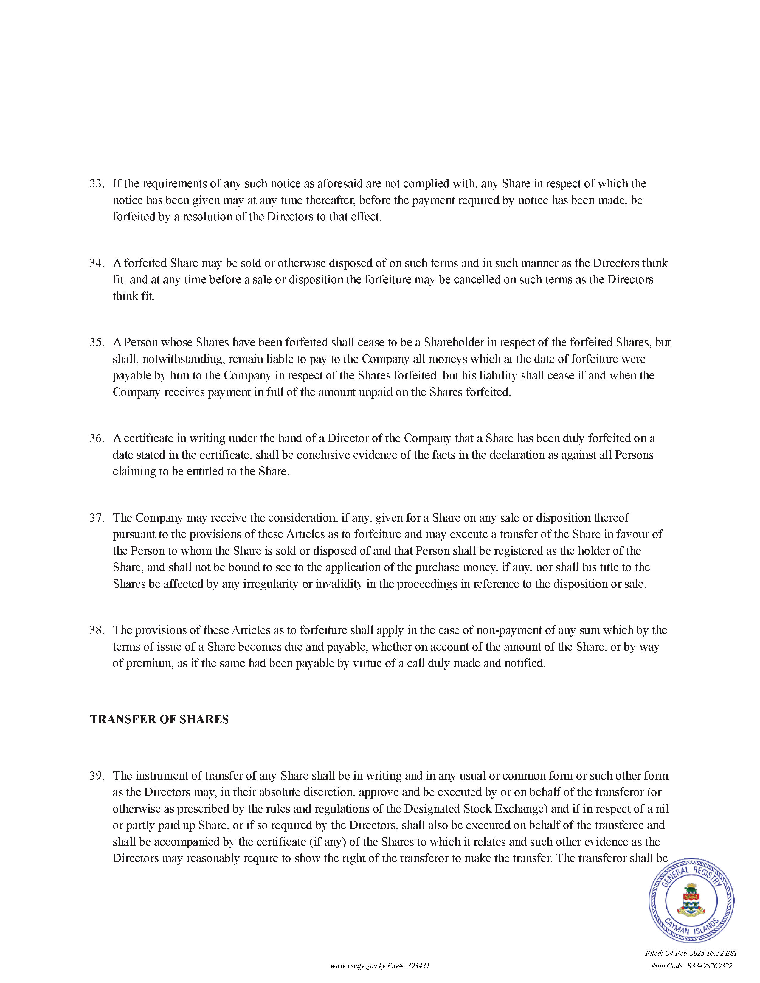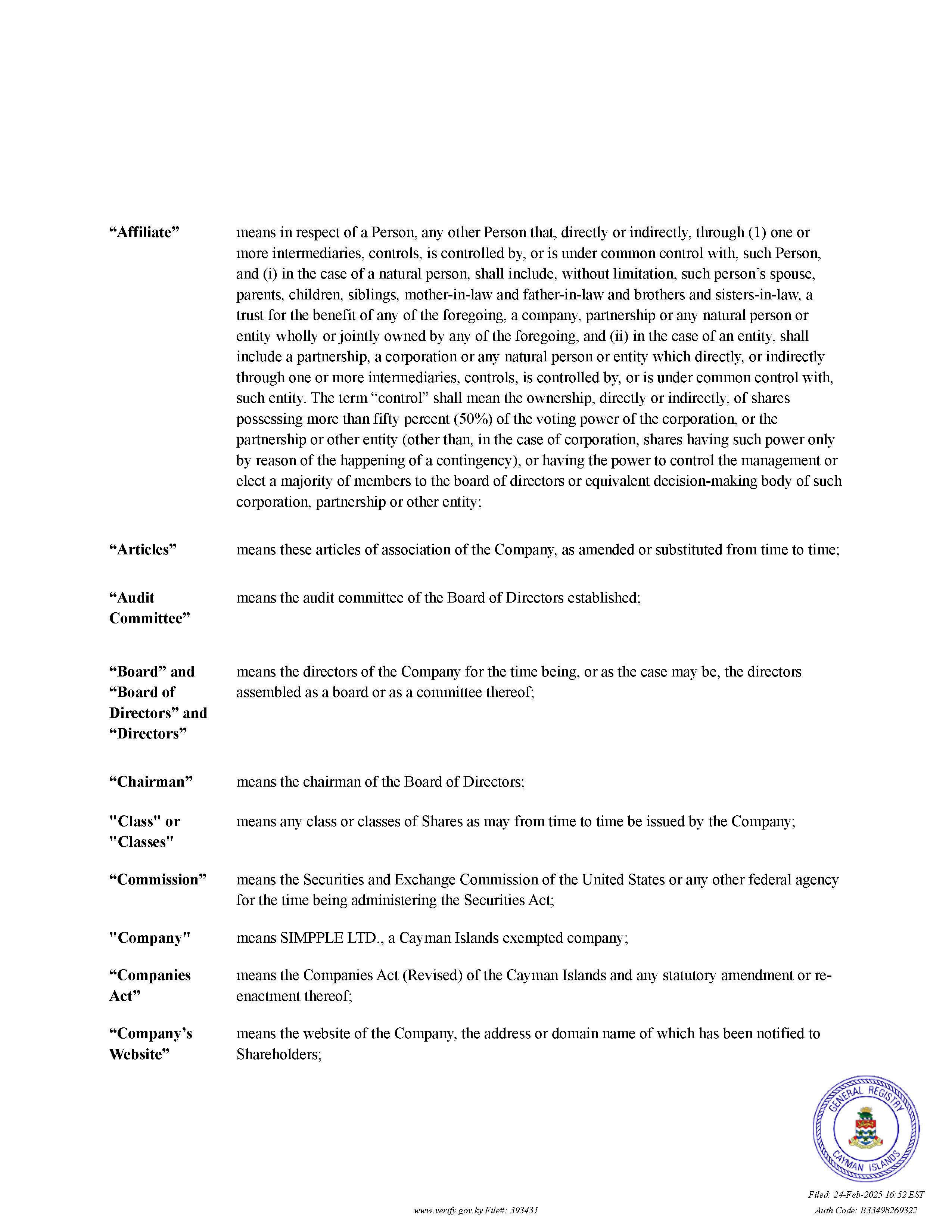 | 99.1 | Amended and Restated Memorandum of Association (effective 13 December 2024) |