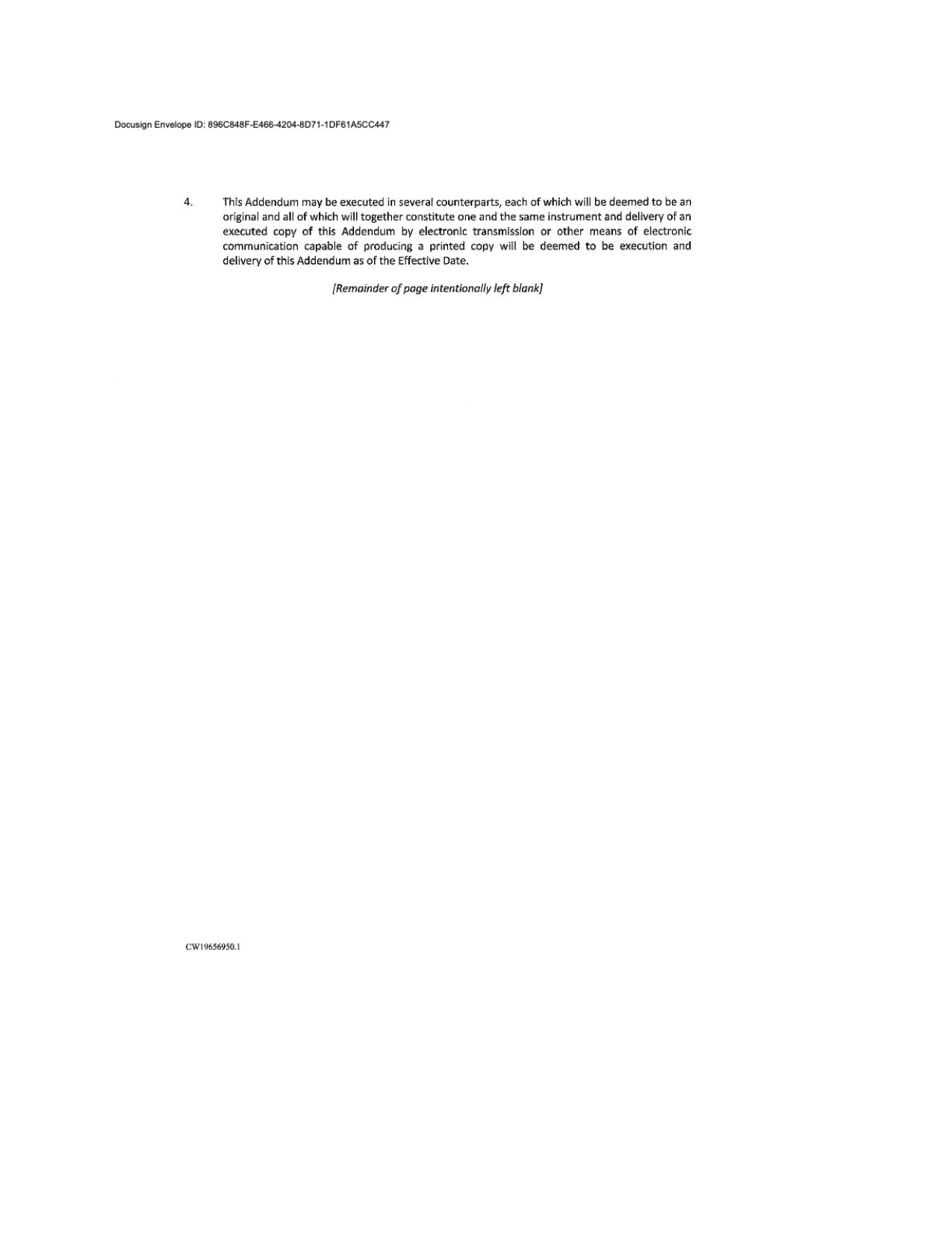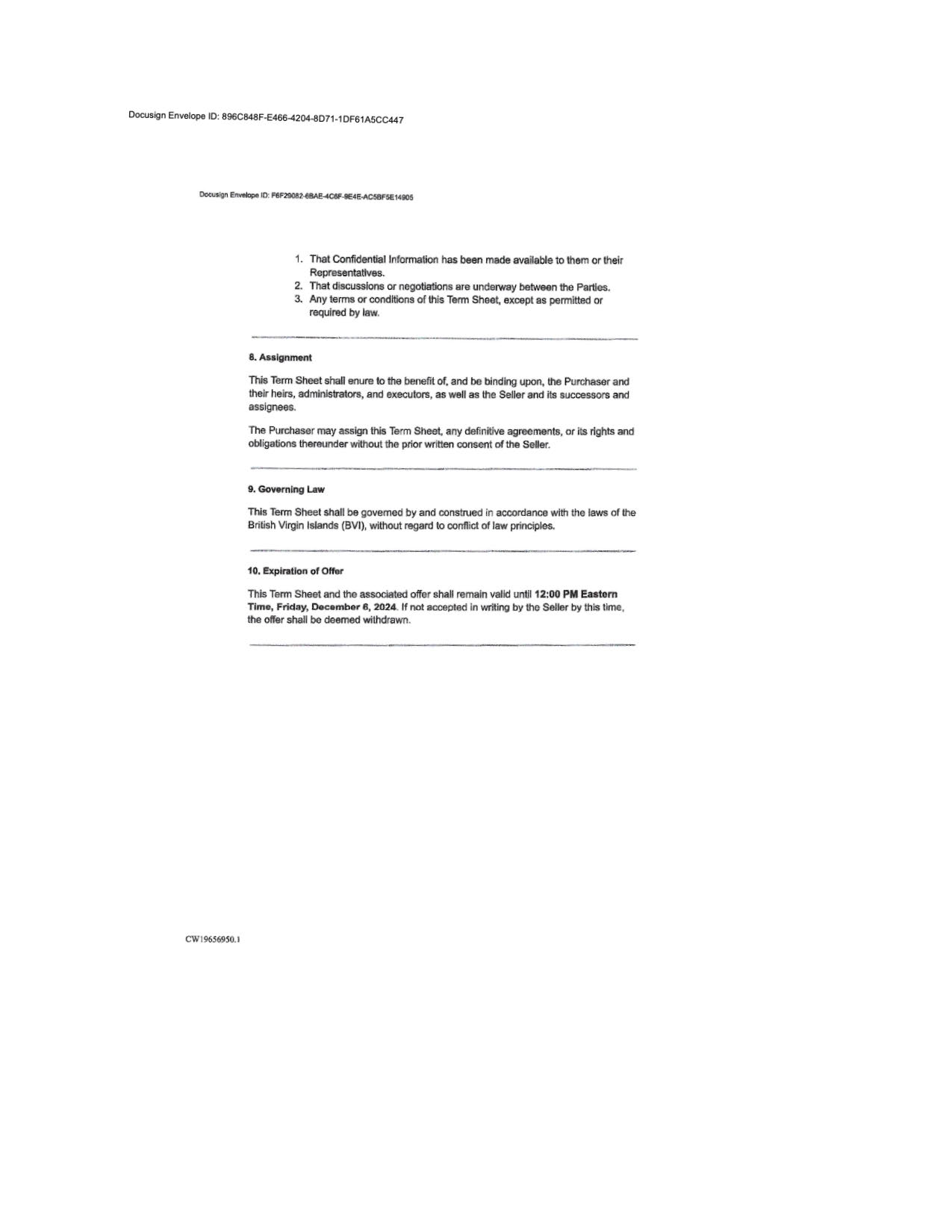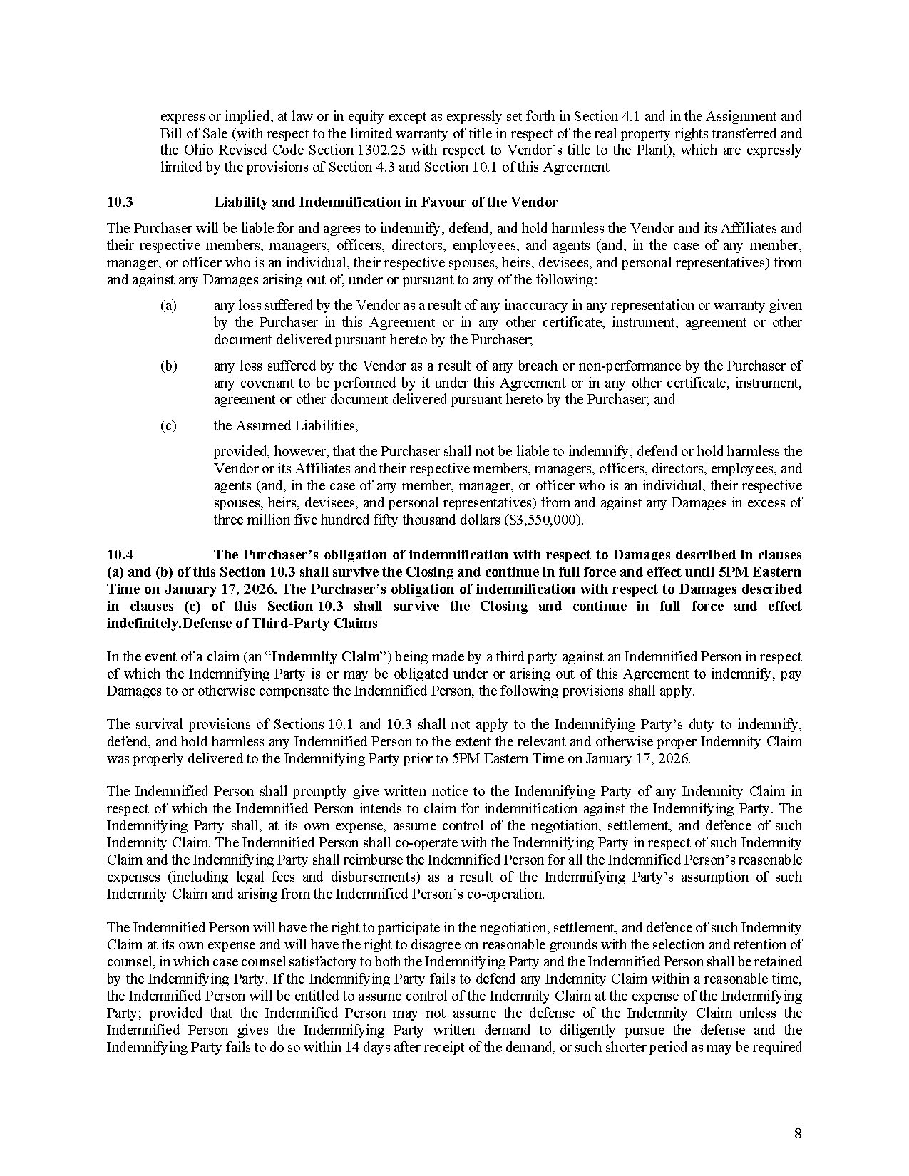| 8.3. | “Clawback Period” means, with respect to any Accounting Restatement, the three completed fiscal years of the Company immediately preceding the Restatement Date (as defined below), and if the Company changes its fiscal year, any transition period of less than nine months within or immediately following those three completed fiscal years. |
