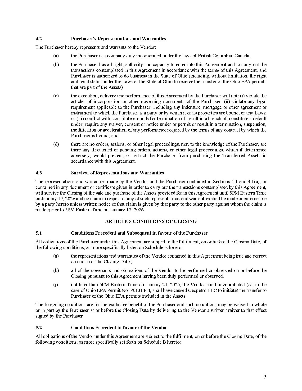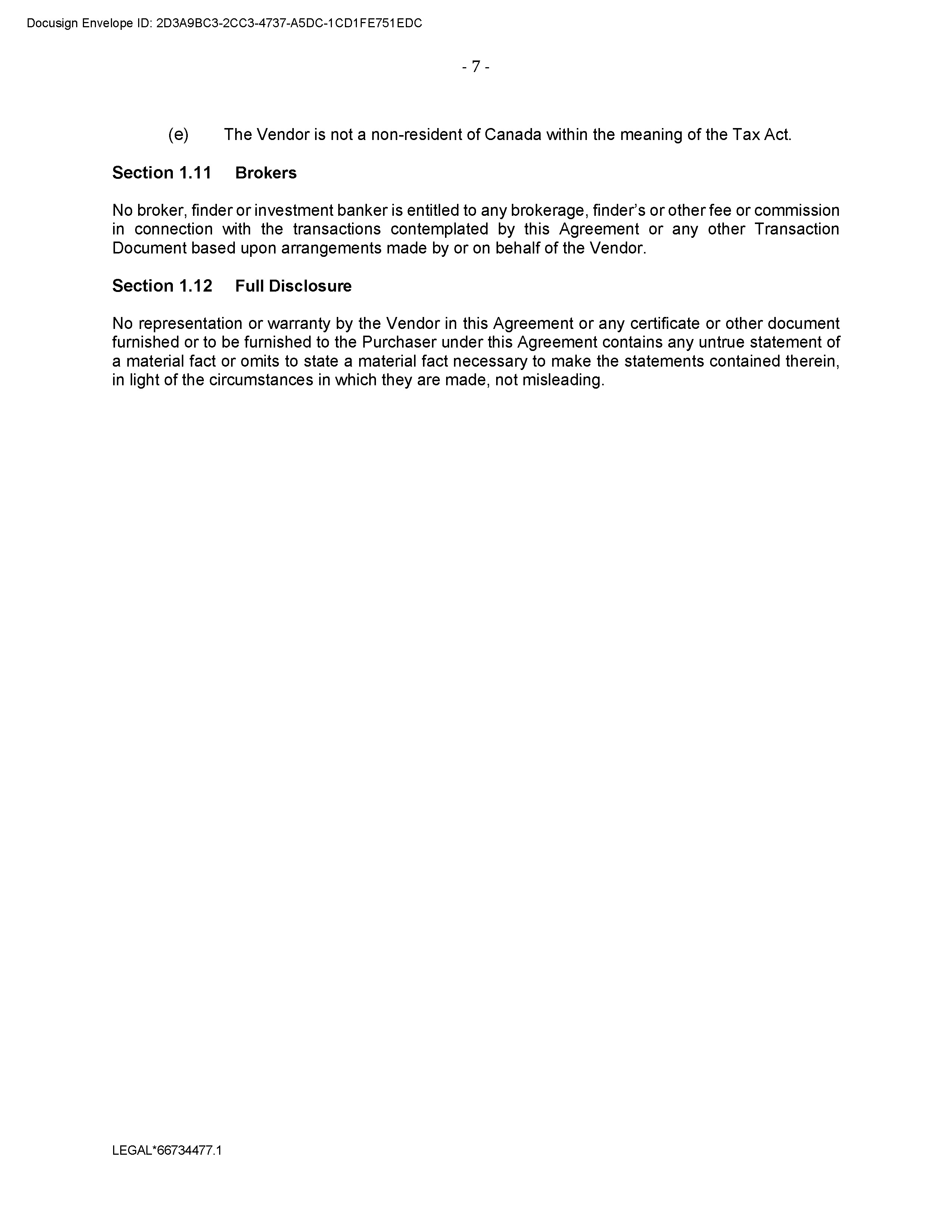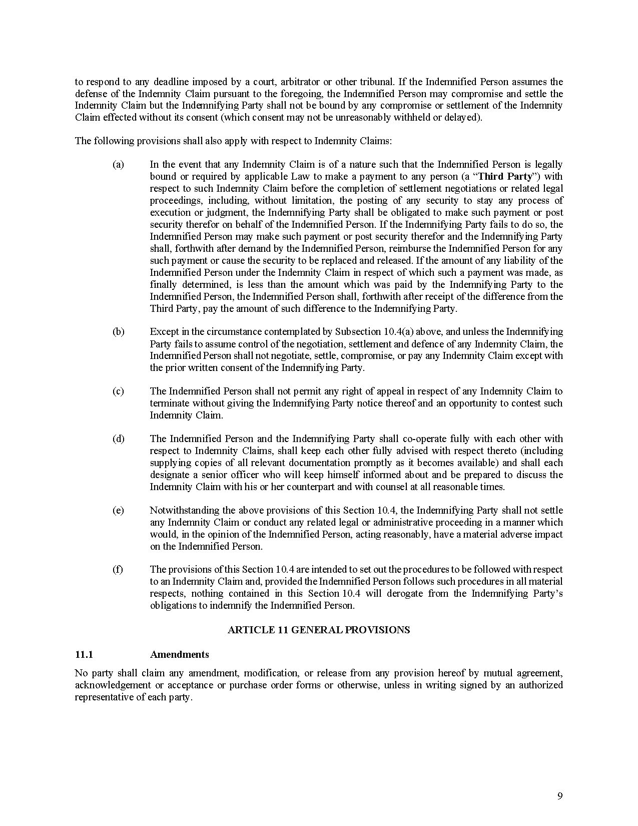 | 8.3. | “Clawback Period” means, with respect to any Accounting Restatement, the three completed fiscal years of the Company immediately preceding the Restatement Date (as defined below), and if the Company changes its fiscal year, any transition period of less than nine months within or immediately following those three completed fiscal years. |