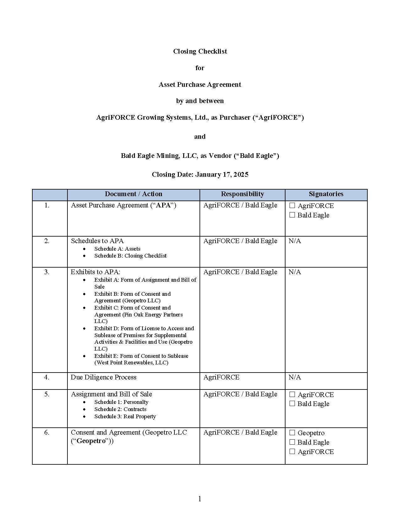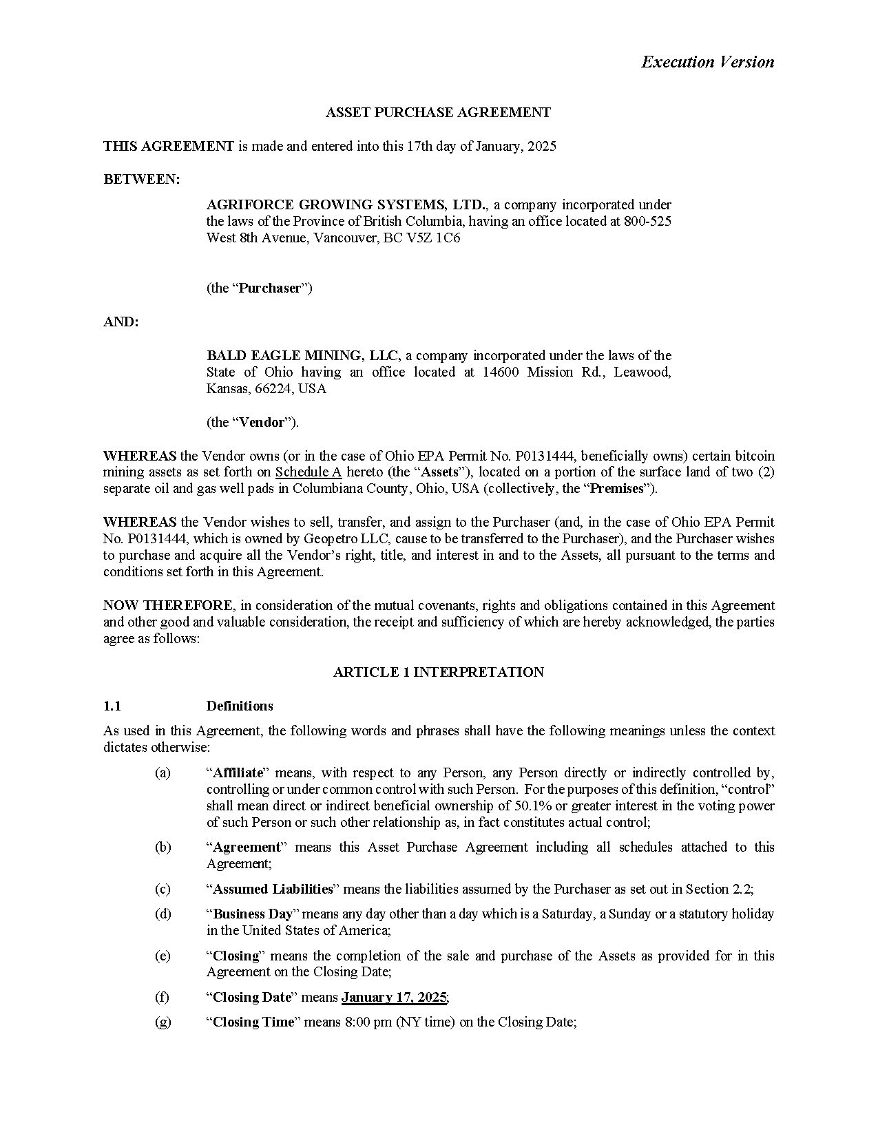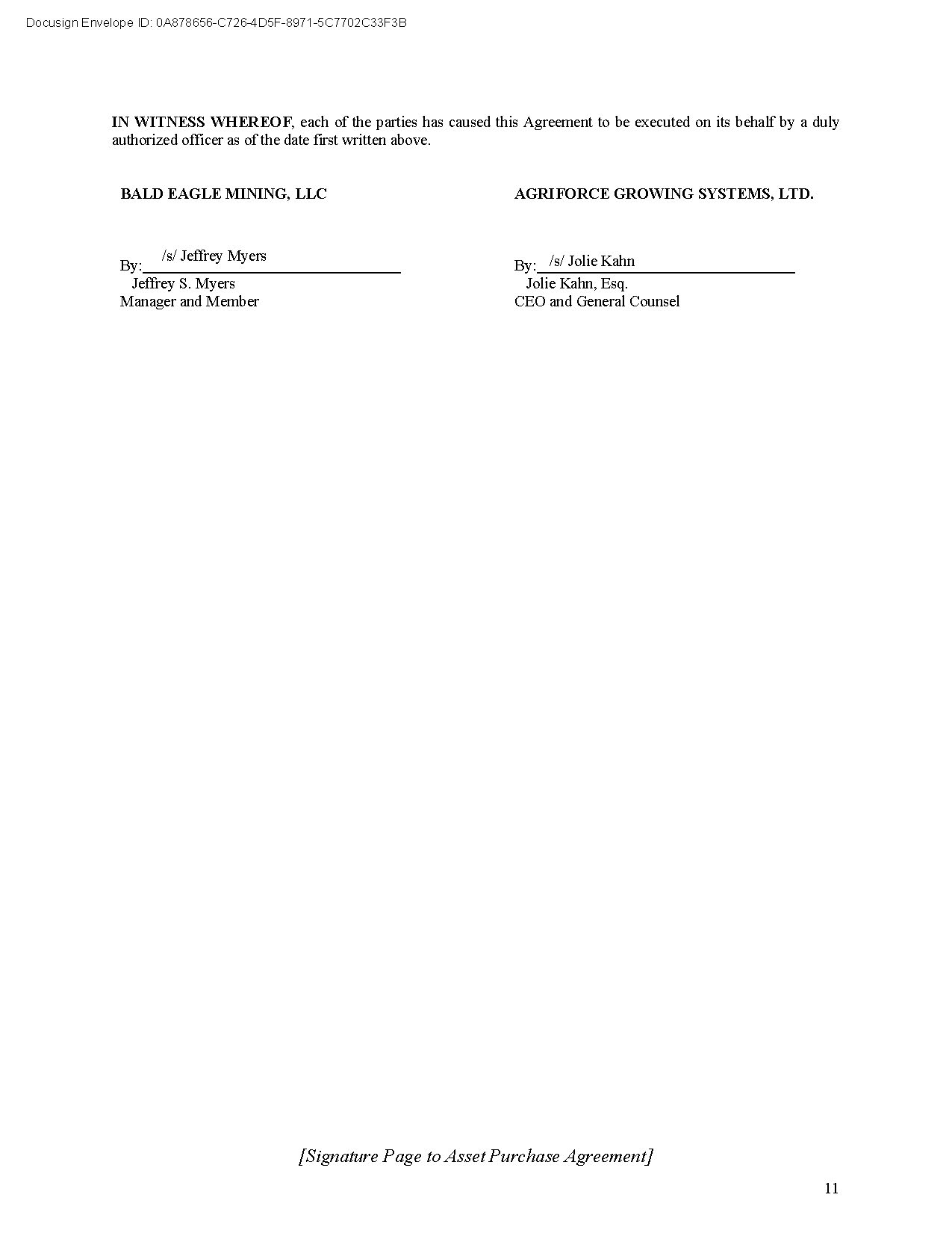 | 1.1. | In accordance with Nasdaq Rule 5608, Section 10D and Rule 10D-1 of the Securities Exchange Act of 1934, as amended (the “Exchange Act”) (“Rule 10D-1”), the Board of Directors (the “Board”) of AgriForce Growing Systems, Ltd. (the “Company”) has adopted this Policy (the “Policy”) to provide for the recovery of erroneously awarded Incentive-based Compensation from Executive Officers. All capitalized terms used and not otherwise defined herein shall have the meanings set forth below. |