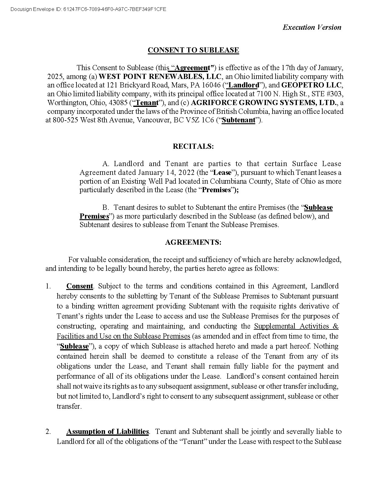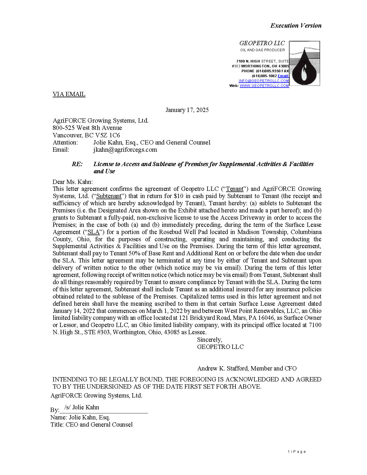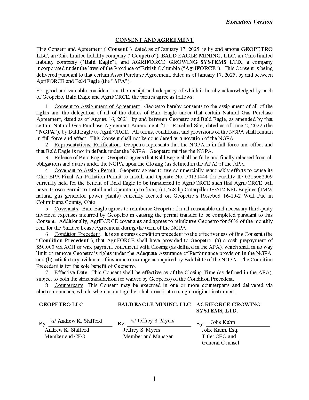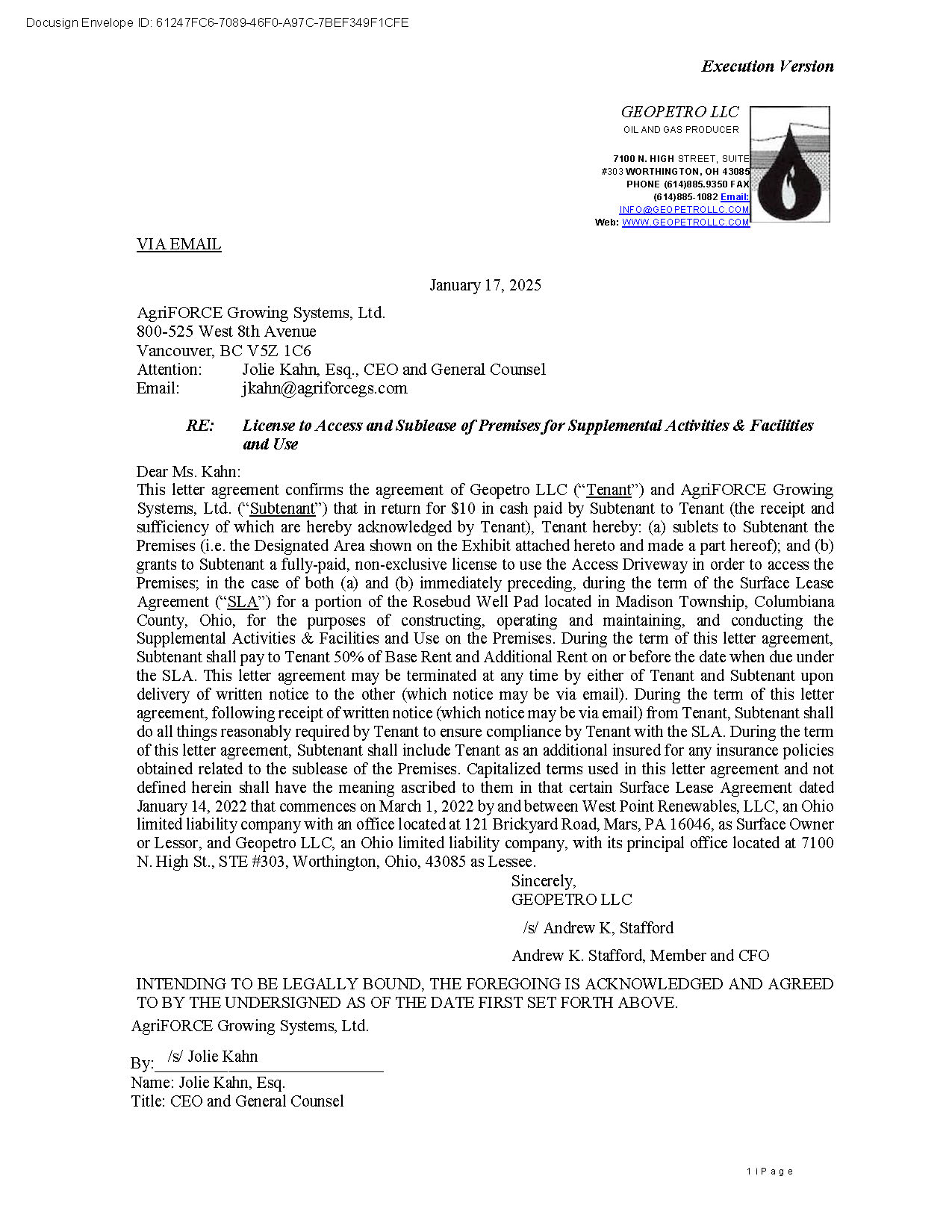 | 1.1. | In accordance with Nasdaq Rule 5608, Section 10D and Rule 10D-1 of the Securities Exchange Act of 1934, as amended (the “Exchange Act”) (“Rule 10D-1”), the Board of Directors (the “Board”) of AgriForce Growing Systems, Ltd. (the “Company”) has adopted this Policy (the “Policy”) to provide for the recovery of erroneously awarded Incentive-based Compensation from Executive Officers. All capitalized terms used and not otherwise defined herein shall have the meanings set forth below. |