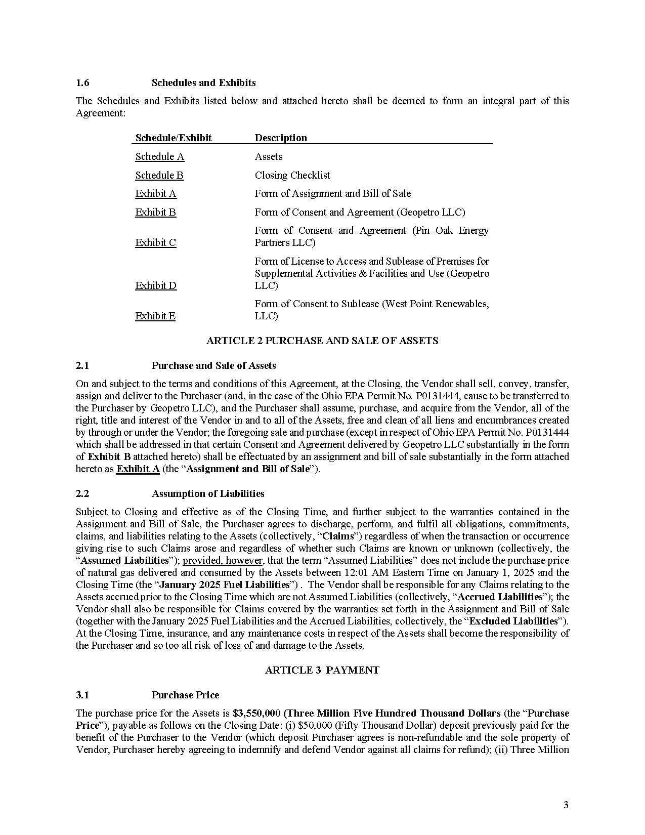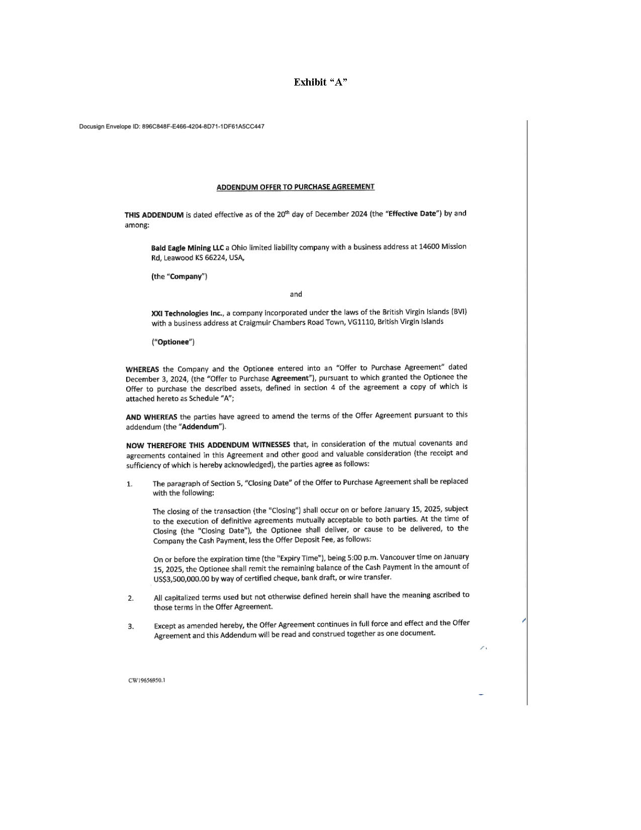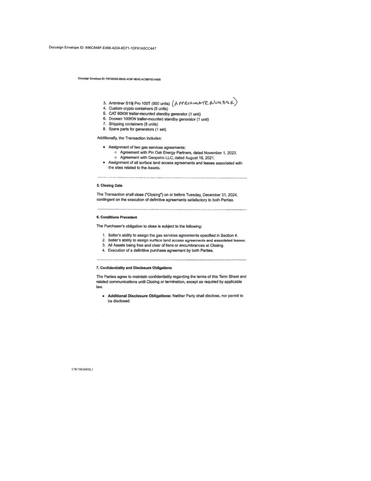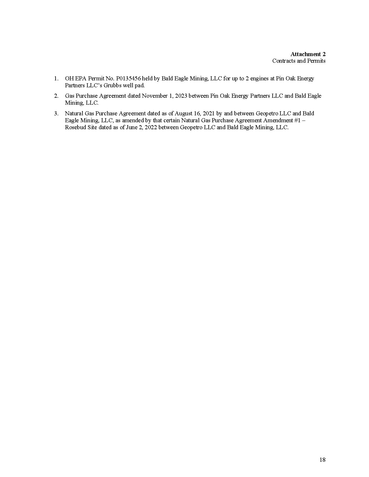 Most recently, the Company has entered into the sustainable Bitcoin mining industry and has completed two acquisitions since late November 2024 pursuant to which the Company now owns and operates three Bitcoin mining facilities, one in Alberta, Canada and two in Ohio, for a total of 1120 BITMAIN Antminer S19j units.