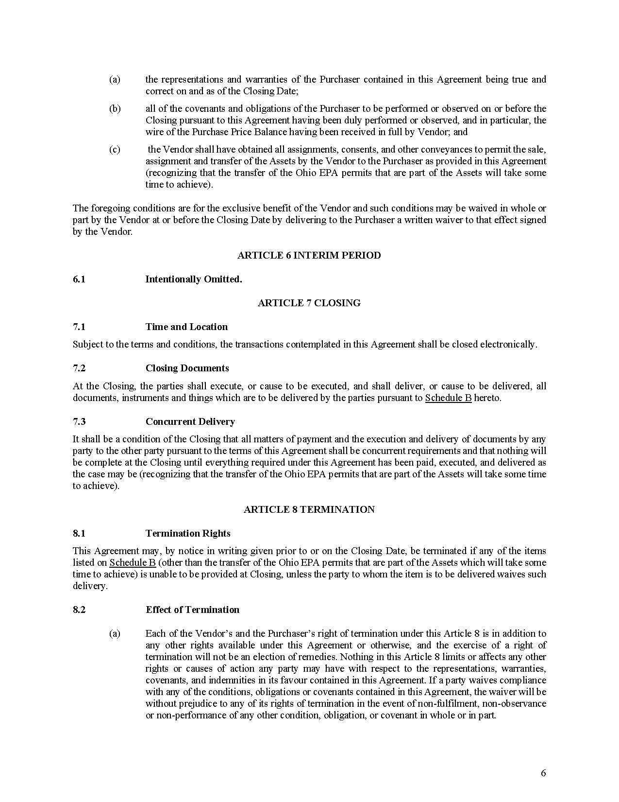 | 8.9. | “Restatement Date” means the earlier to occur of (i) the date the Board, a committee of the Board or the officers of the Company authorized to take such action if Board action is not required, concludes, or reasonably should have concluded, that the Company is required to prepare an Accounting Restatement, or (ii) the date a court, regulator or other legally authorized body directs the Company to prepare an Accounting Restatement. |
