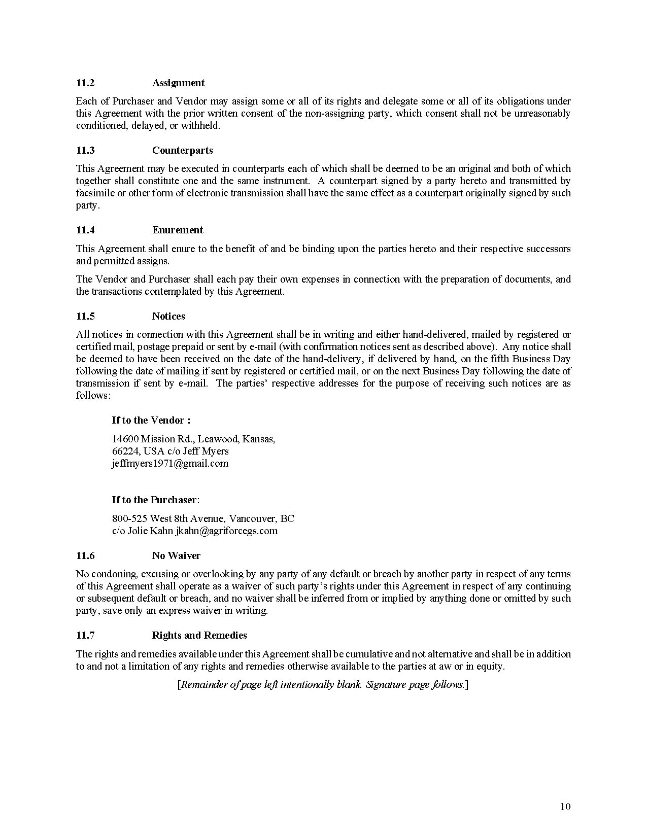The Company purchased Intellectual Property (“IP”) from Manna Nutritional Group, LLC (“Manna”), a privately held firm based in Boise, Idaho on September 10, 2021. The IP encompasses a granted patent to naturally process and convert grain, pulses and root vegetables, resulting in low-starch, low-sugar, high-protein, fiber-rich baking flour as well as produces a natural sweetener juice. The core process is covered under Patent Nr. 11,540,538 in the U.S. and key international markets. The all-natural process is designed to unlock nutritional properties, flavors, and other qualities in a range of modern, ancient and heritage grains, pulses and root vegetables to create specialized all-natural baking and all-purpose flours, sweeteners, juices, naturally sweet cereals and other valuation products, providing numerous opportunities for dietary nutritional, performance and culinary applications.