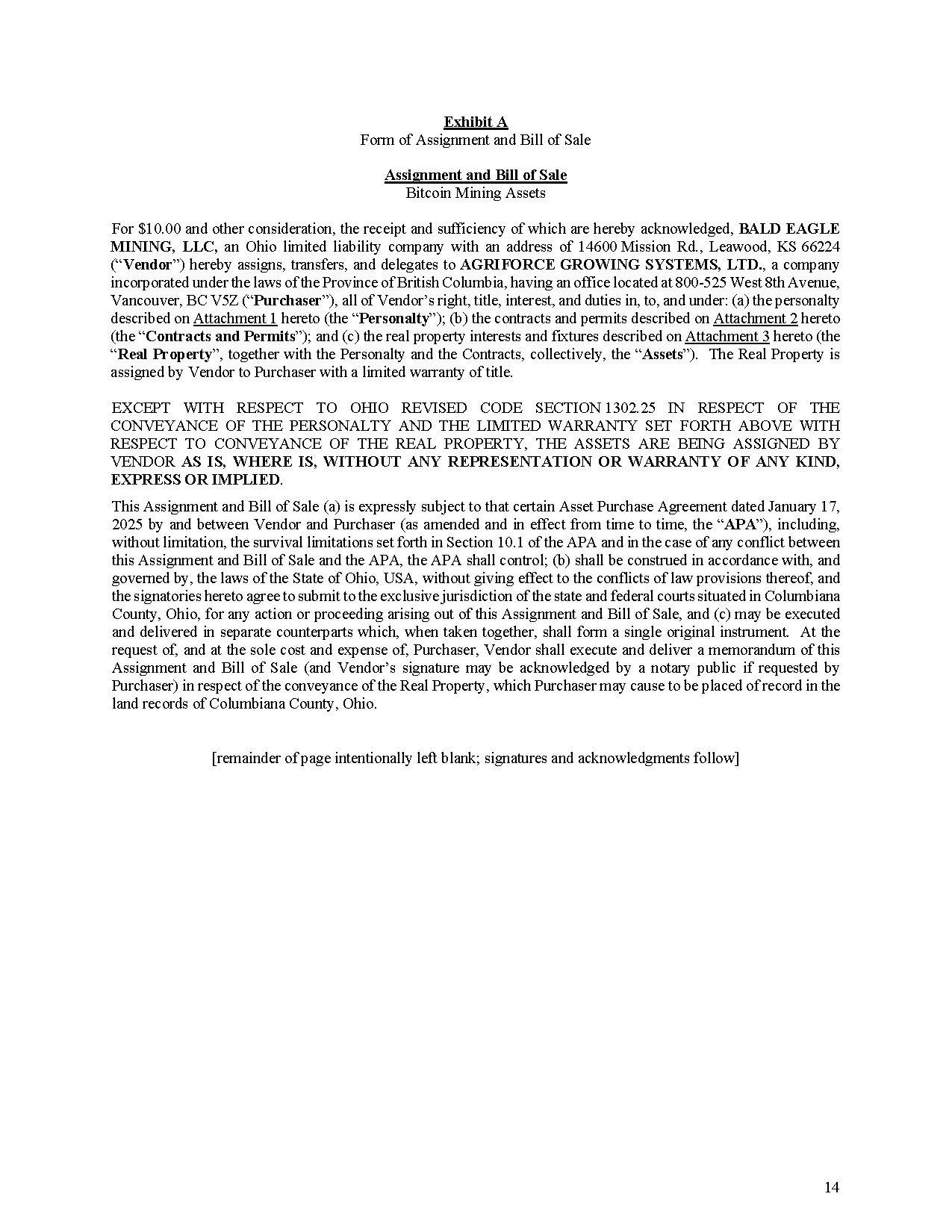AgriFORCE Growing Systems Ltd. LIST OF SUBSIDIARIES :