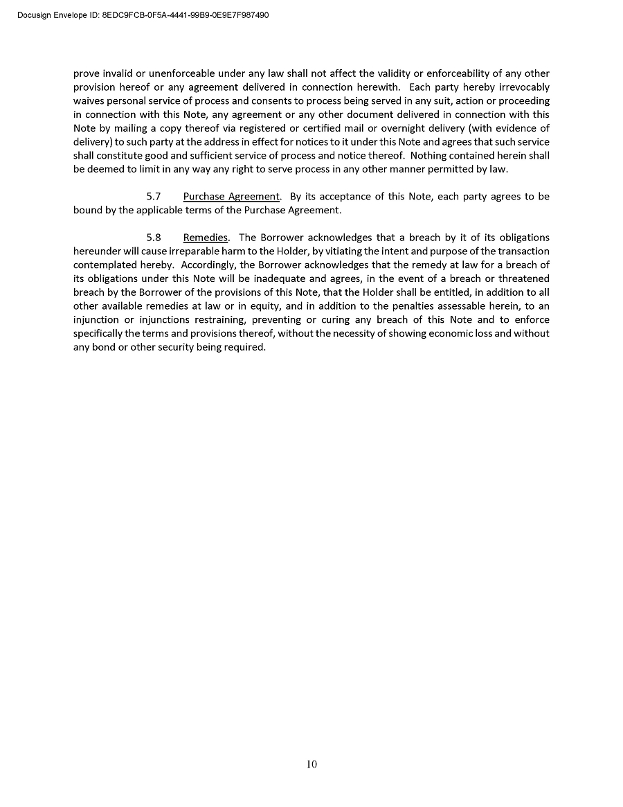 The foregoing descriptions of the Note and the Securities Purchase Agreement and of all of the parties’ rights and obligations under the Note and the Securities Purchase Agreement are qualified in its entirety by reference to the Note and the Securities Purchase Agreement, copies of which are filed as Exhibits 10.1 and 10.2 respectively to this Current Report on Form 8-K, and of which are incorporated herein by reference.
