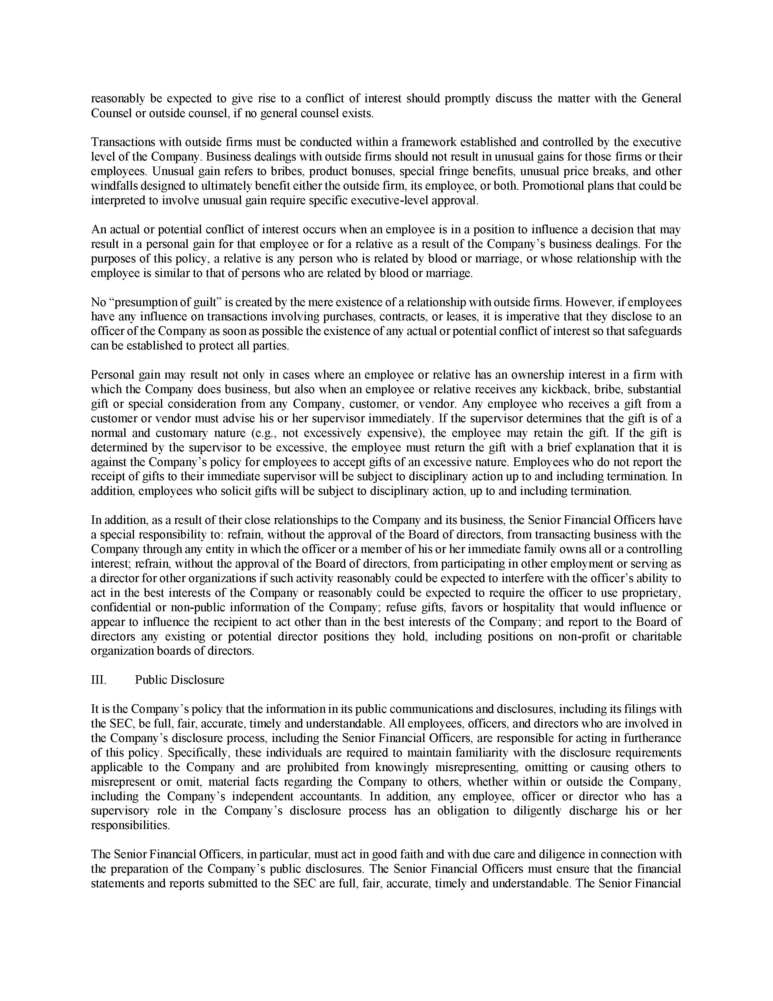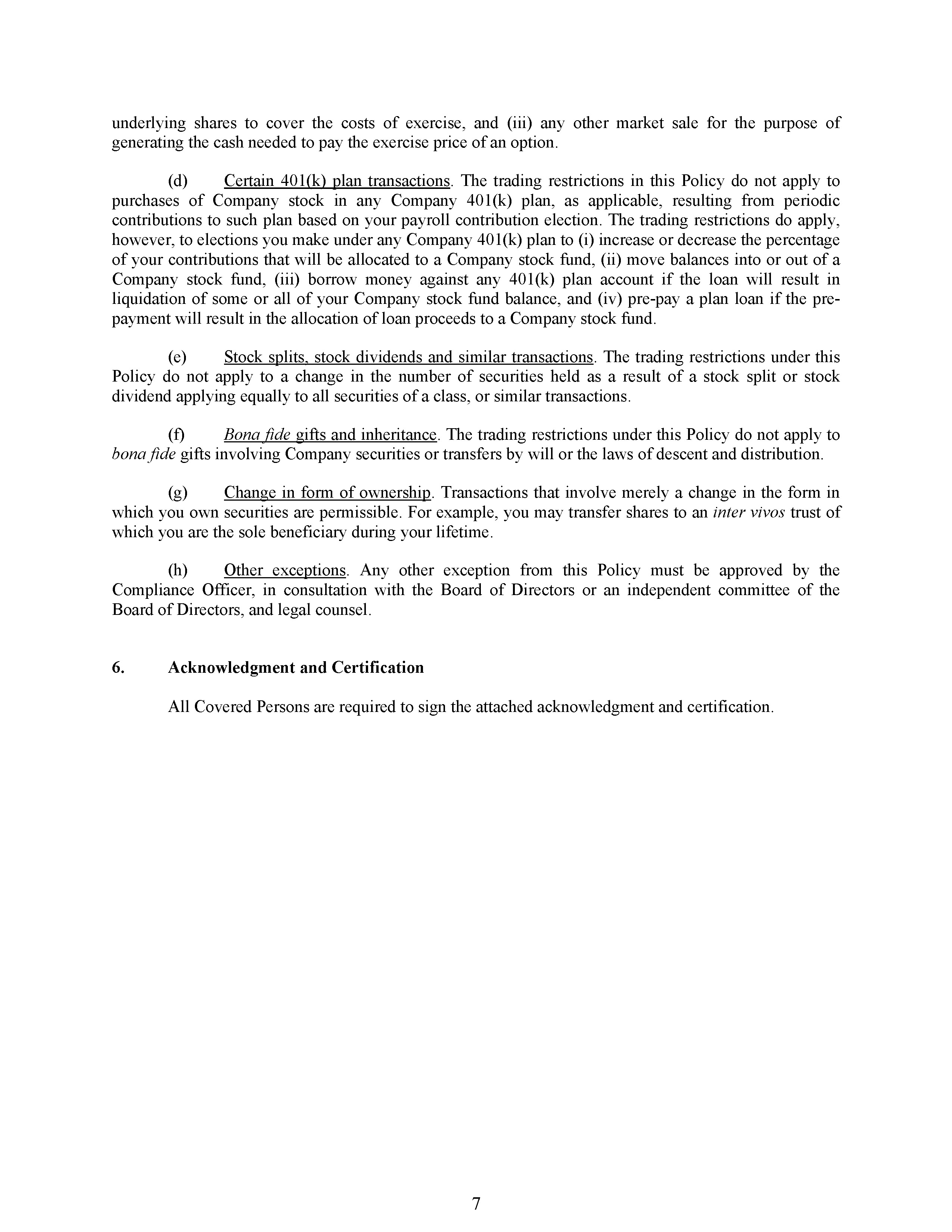 I understand that any delay or failure by the Company to enforce any requirement contained in the Policy will not constitute a waiver of the Company’s right to do so in the future.
