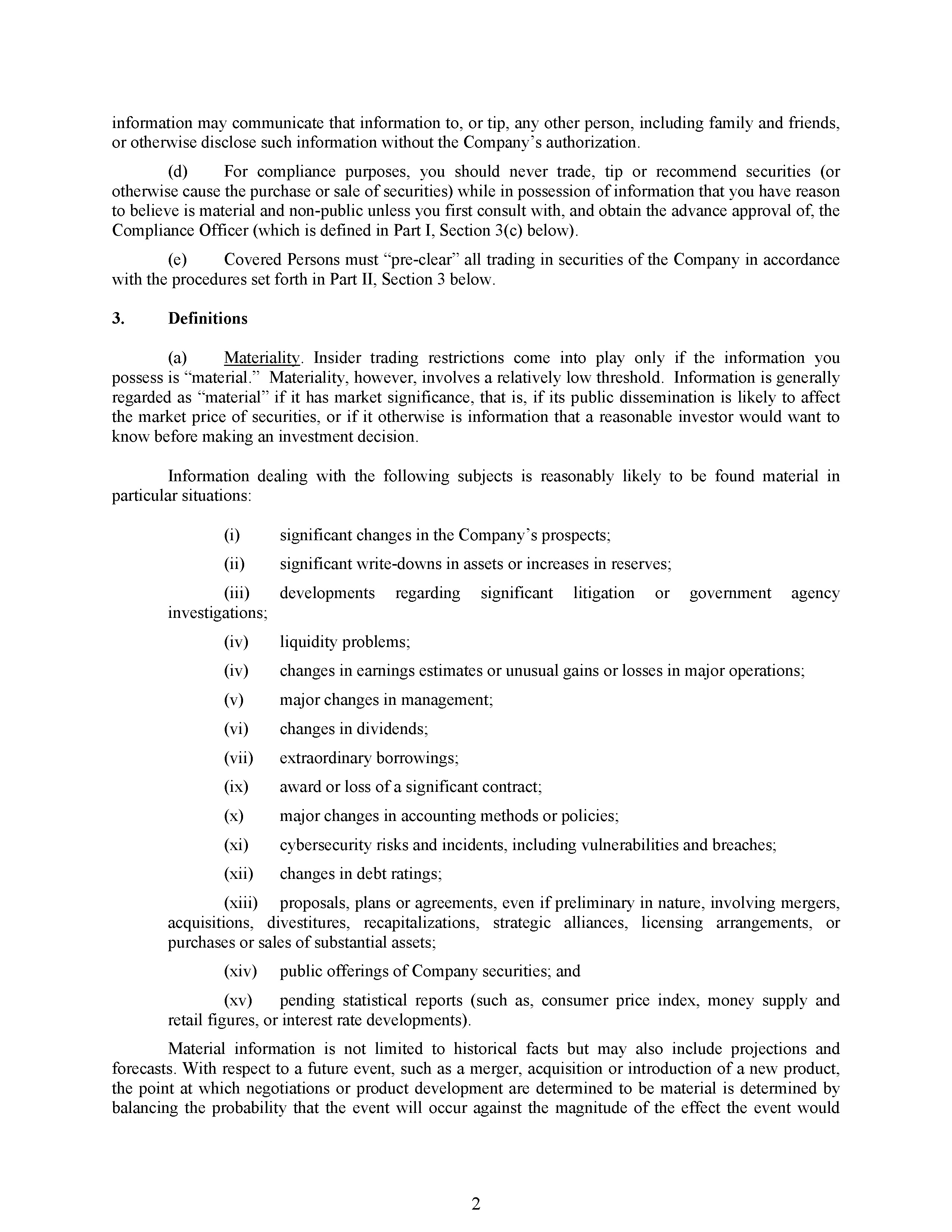 | c. | offsetting the recouped amount from any compensation otherwise owed by the Company to the Covered Executive; | |