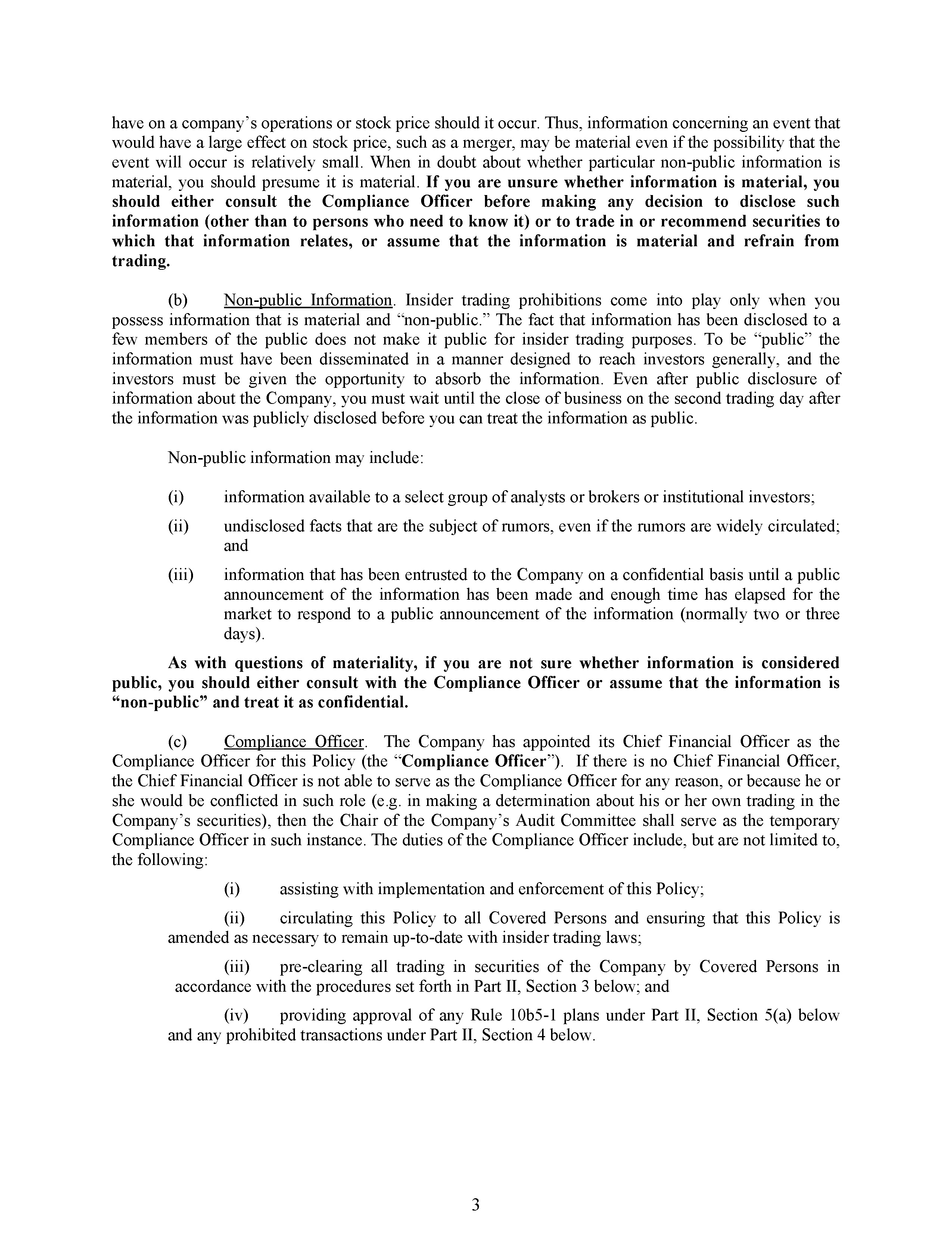 In the event the Company is required to prepare an accounting restatement of its financial statements due to the Company’s material noncompliance with any financial reporting requirement under the securities laws, including any required accounting restatement to correct an error in previously issued financial statements that is material to the previously issued financial statements or that would result in a material misstatement if the error were corrected in the current period or left uncorrected in the current period, the Board will require reimbursement or forfeiture of any excess Incentive Compensation received by any Covered Executive during the three completed fiscal years immediately preceding the date on which the Company is required to prepare an accounting restatement.