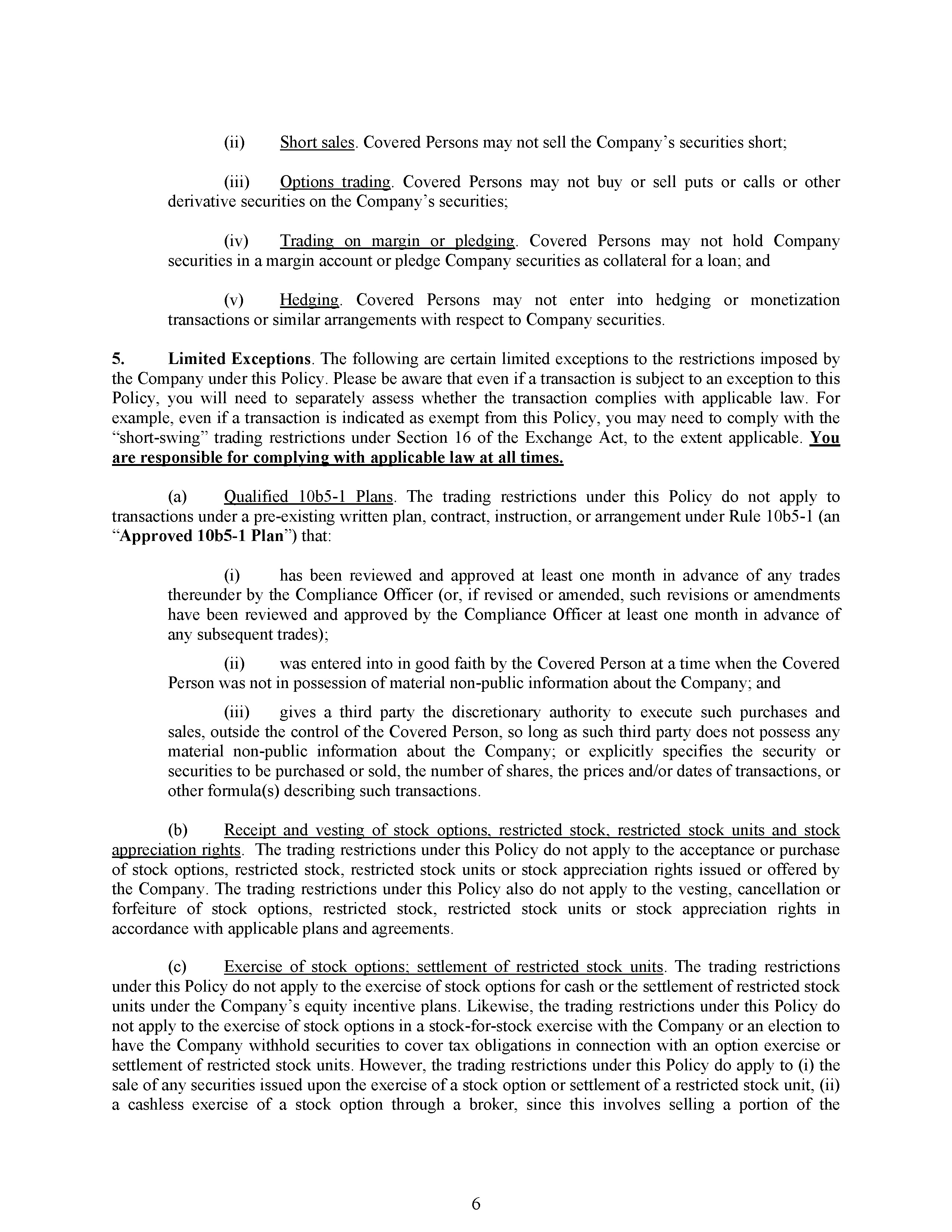 The Covered Executive shall sign an acknowledgment form in the form attached hereto as Exhibit A in which they acknowledge that they have read and understand the terms of the Policy and are bound by the Policy.