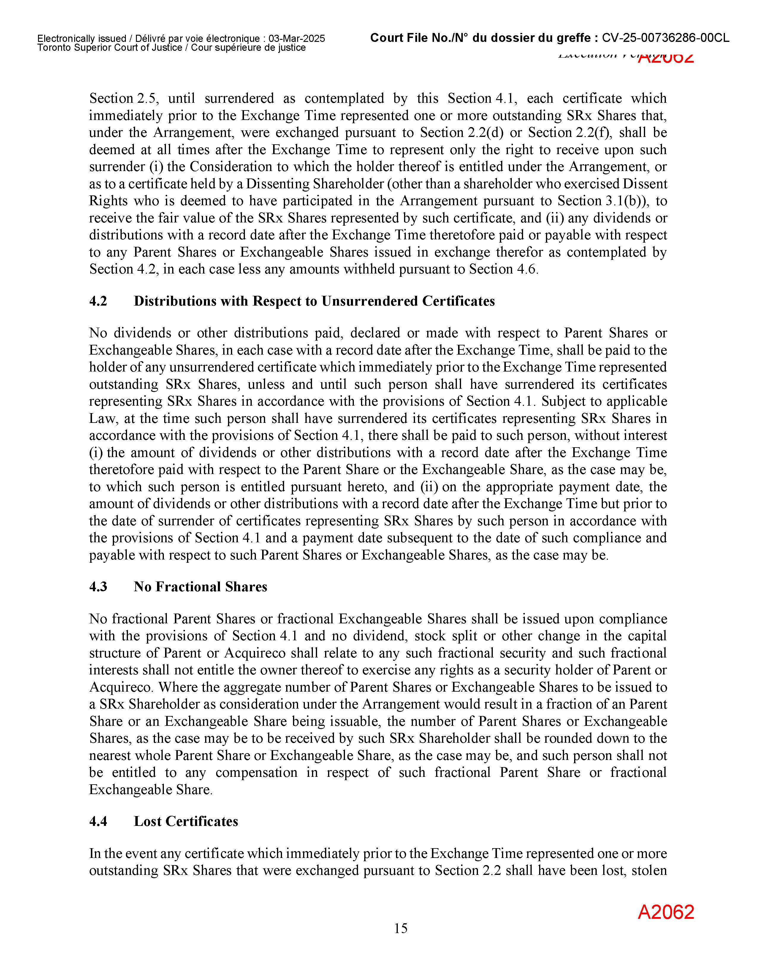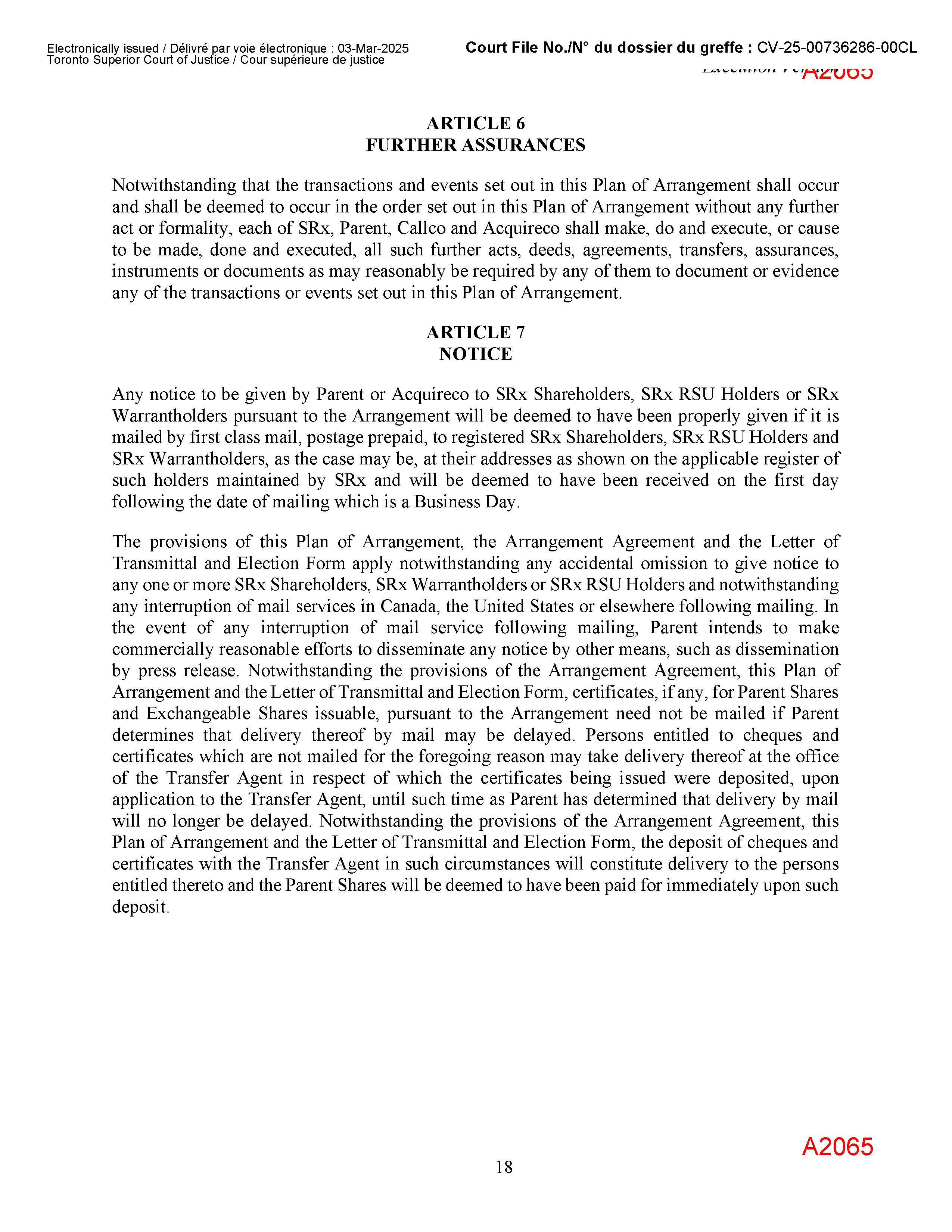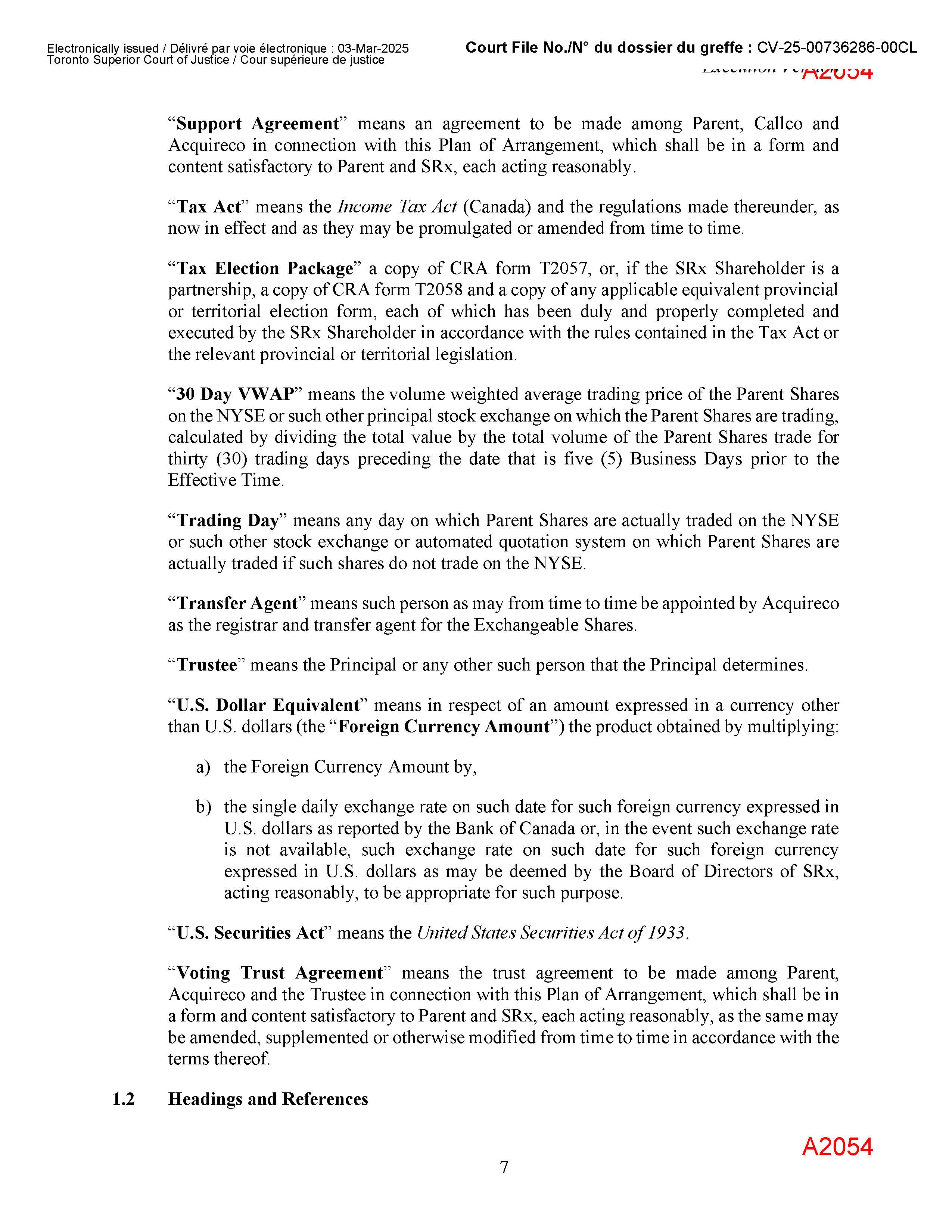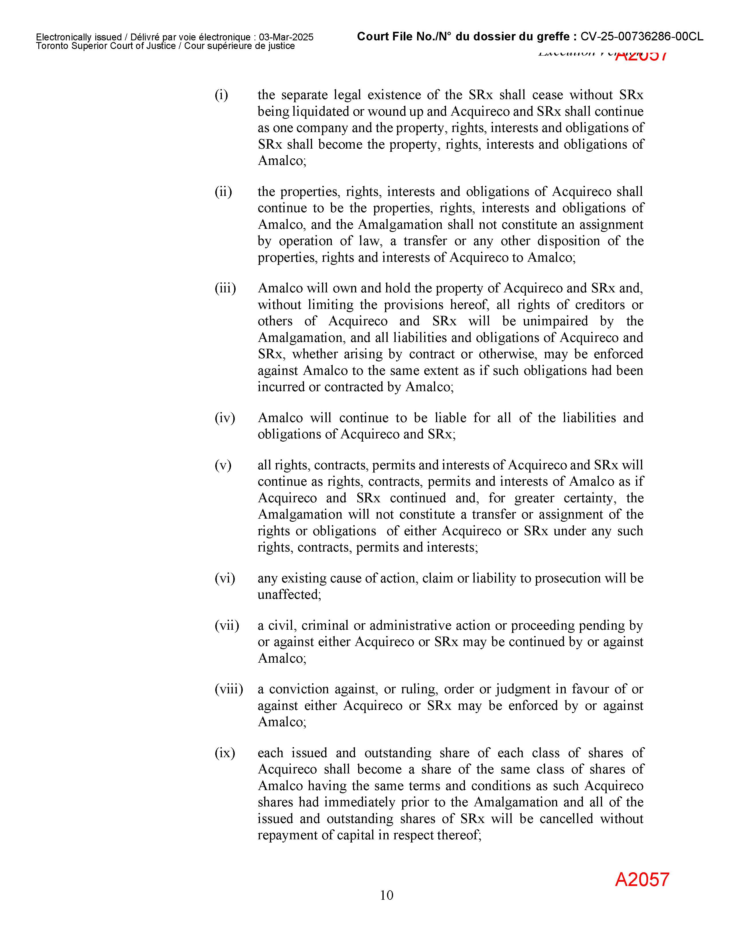 Pursuant to the Arrangement Agreement, on the Closing Date, AcquireCo, a wholly-owned subsidiary of Predecessor, merged with and into SRx Health, with SRx Health remaining as the surviving entity. Predecessor acquired the business of SRx Health pursuant to the Merger and will continue the existing business operations of SRx Health as a wholly-owned subsidiary.