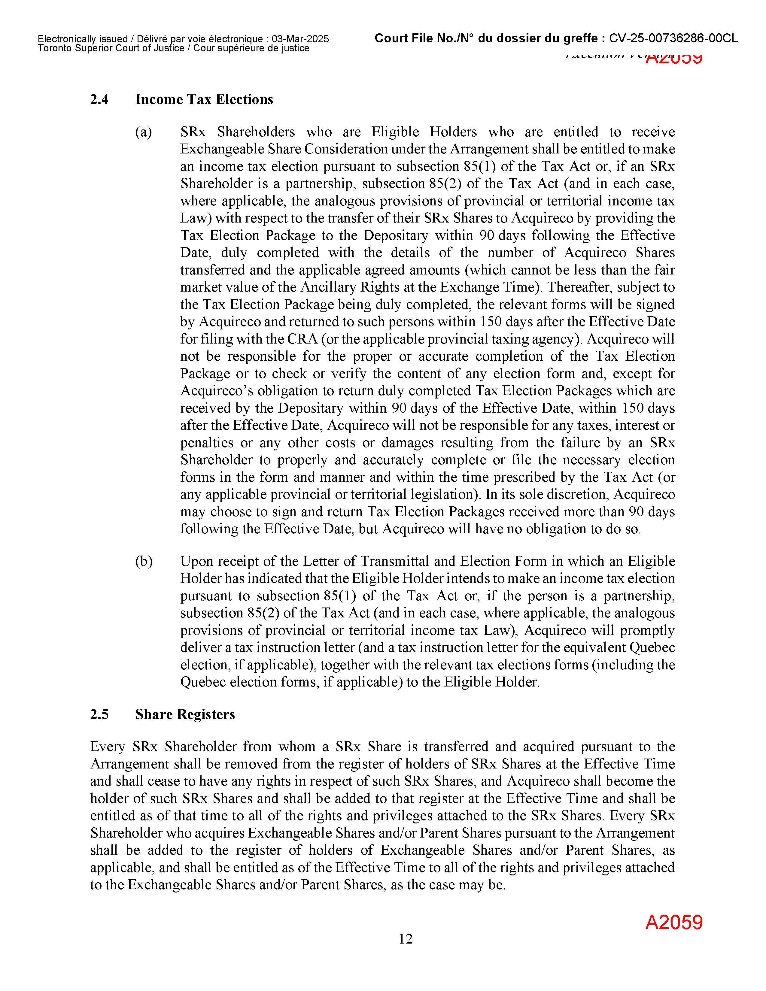 The Merger Transaction. As described in greater detail above, on April 24, 2025, AcquireCo, a wholly-owned subsidiary of Predecessor, amalgamated with and into SRx under the statutes of the Province of Ontario, Canada, with SRx as the surviving corporation of the Merger. As a result of the Merger, the Company acquired the business of SRx, which now continues its existing business operations as the Company’s wholly-owned subsidiary.
