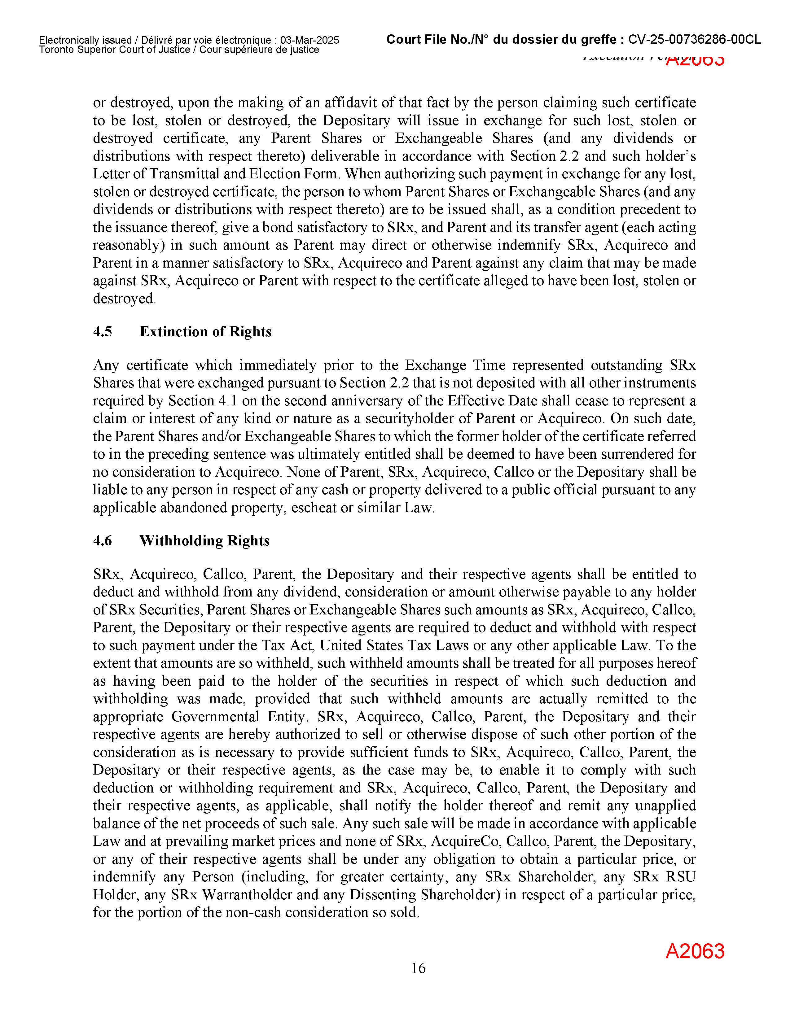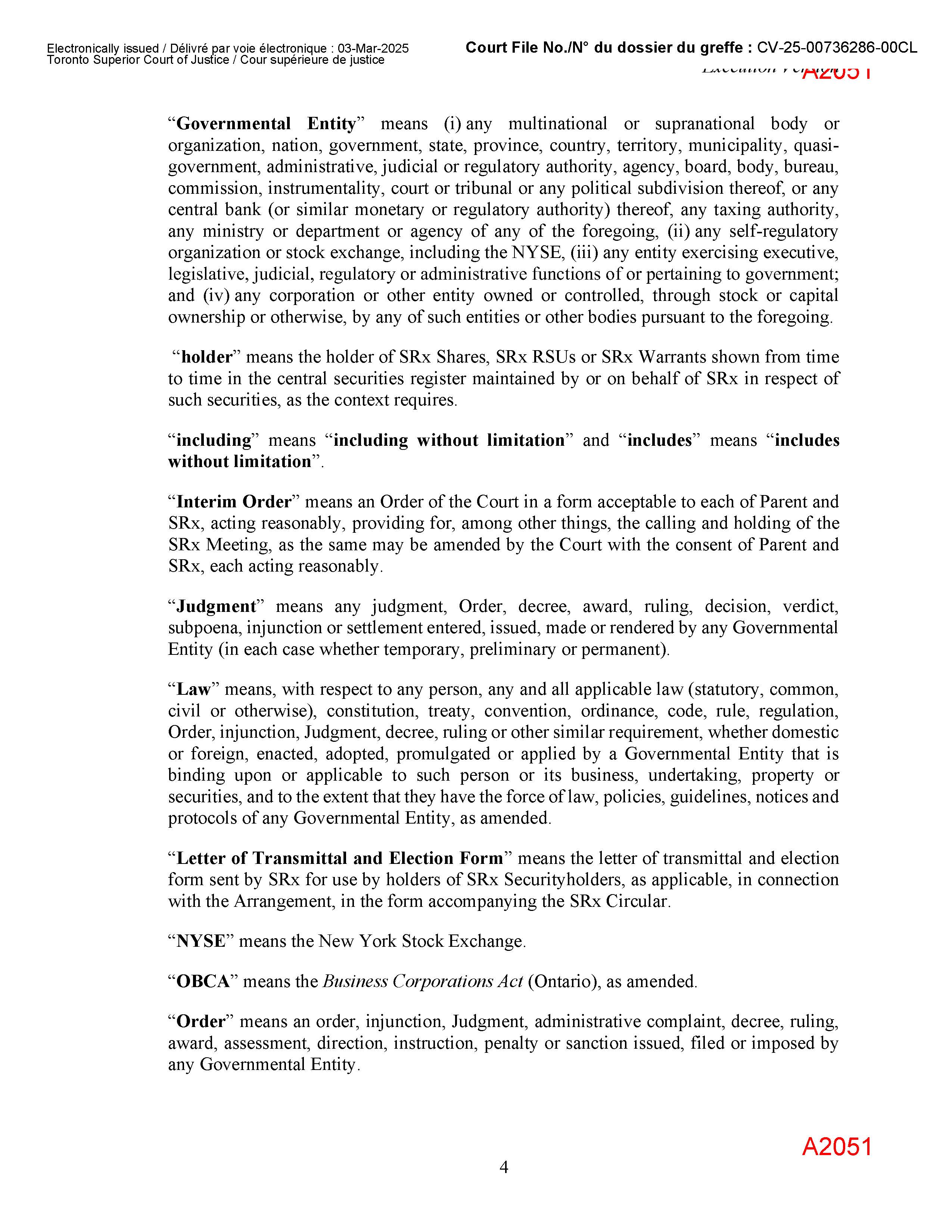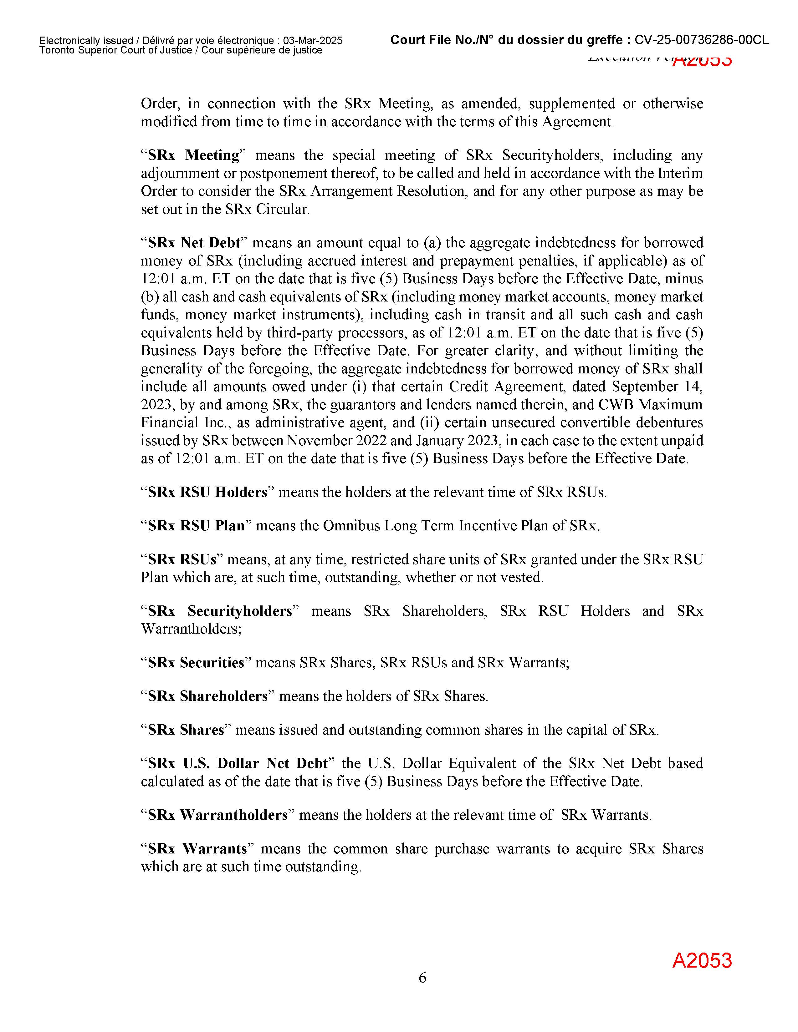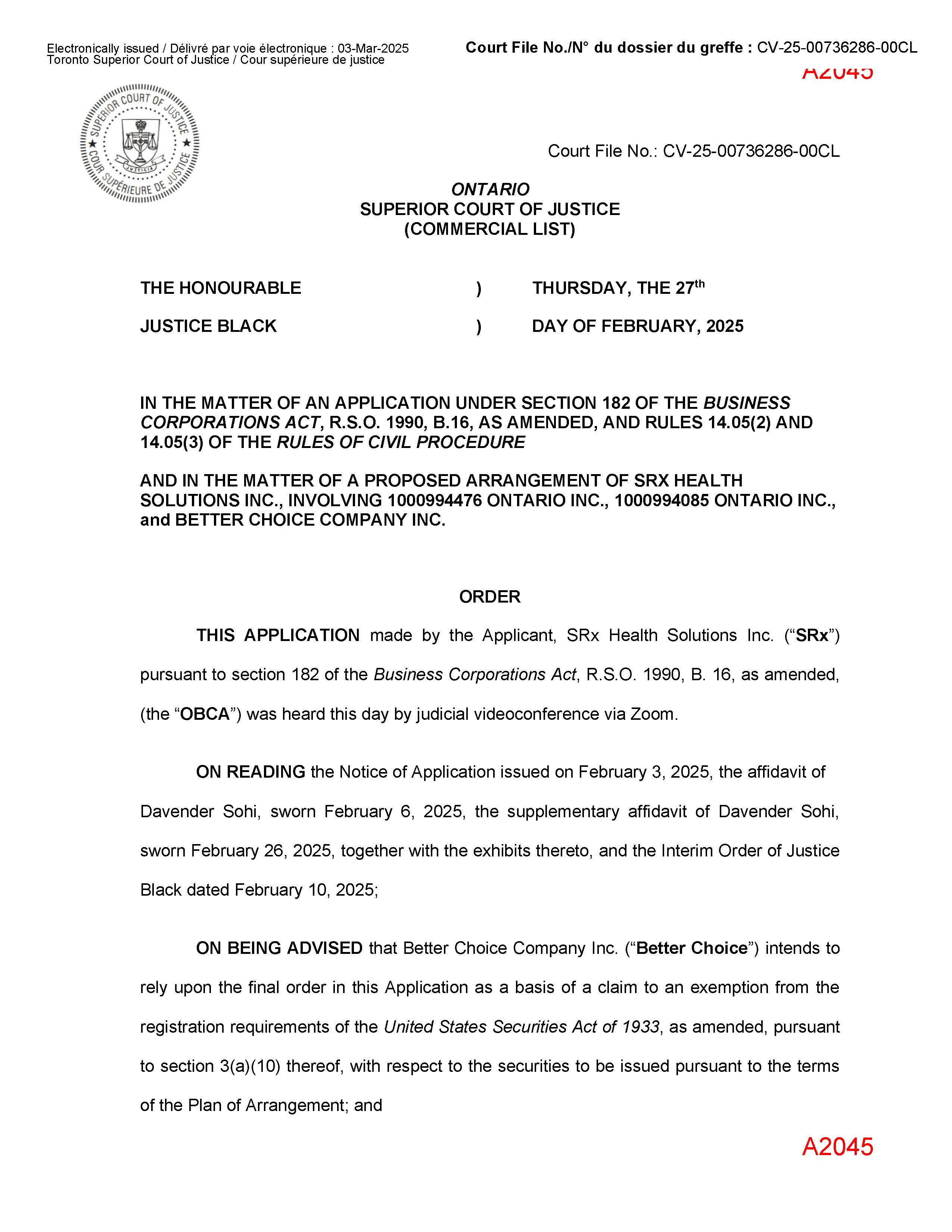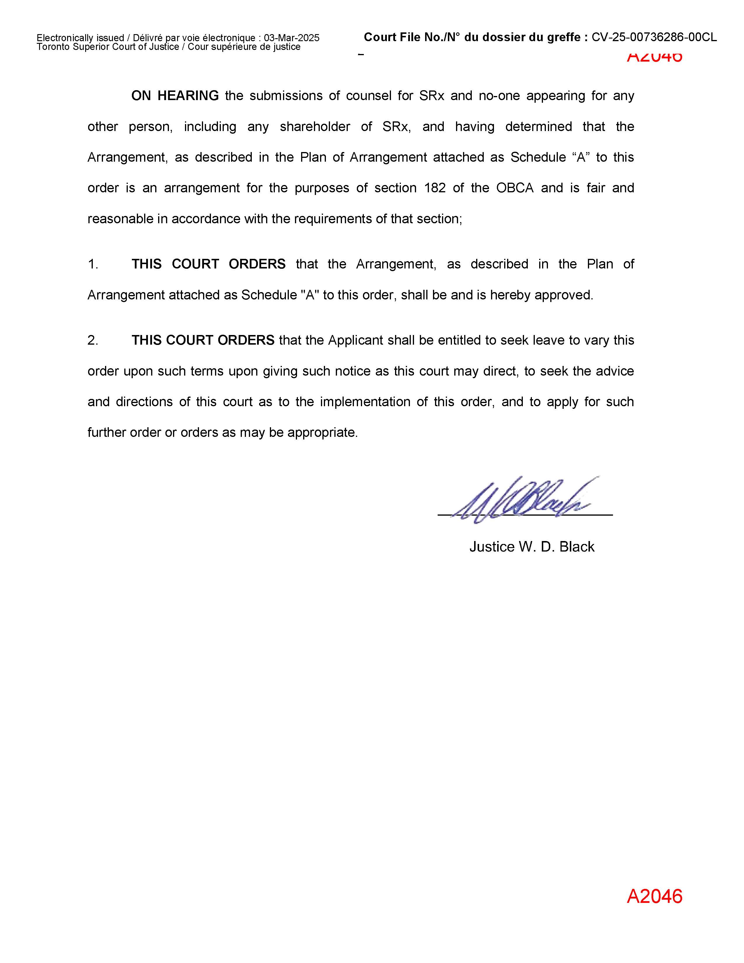 | · | SRx Health Solutions (Canada), Inc., a corporation organized under the laws of Ontario, Canada |